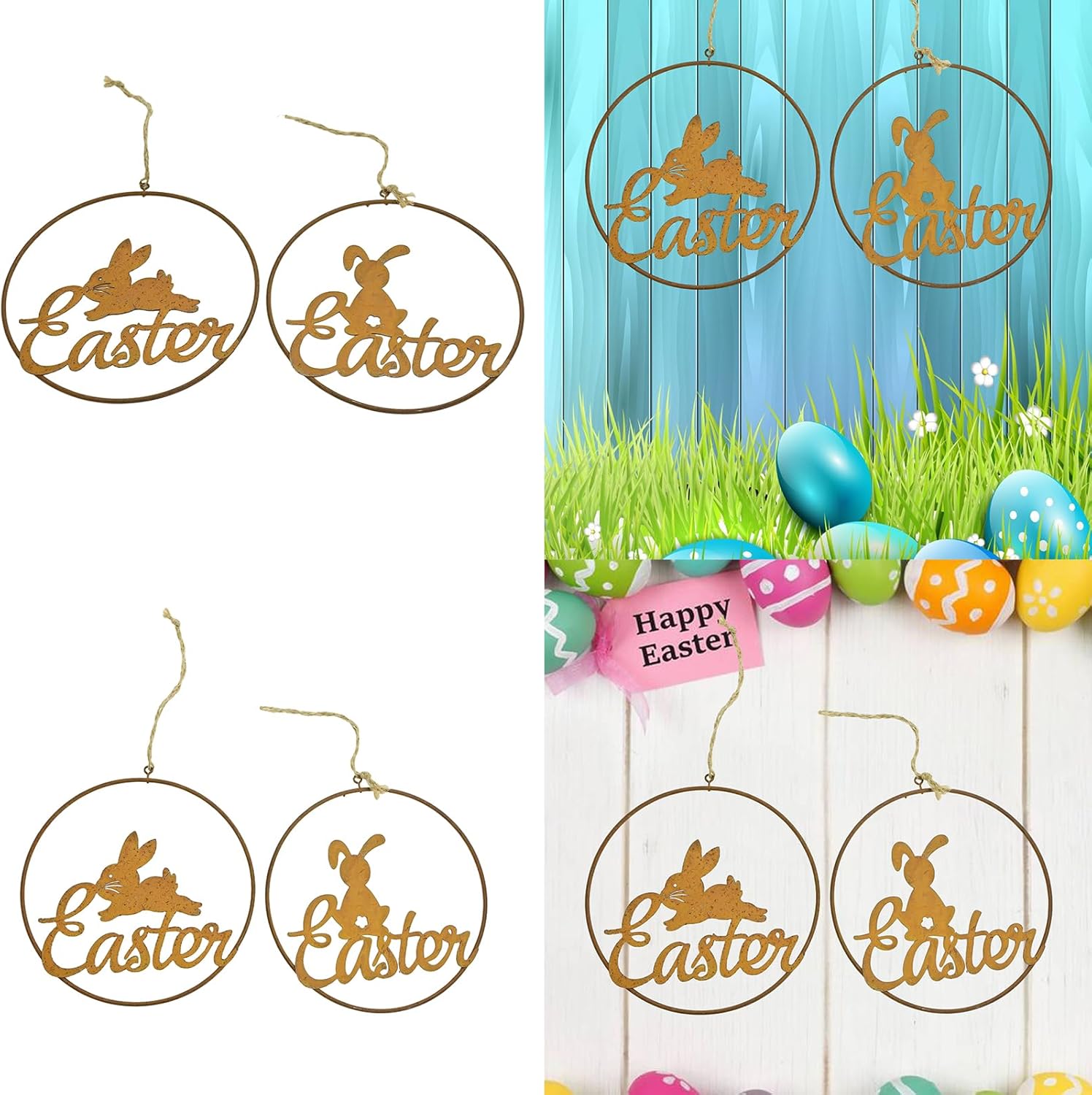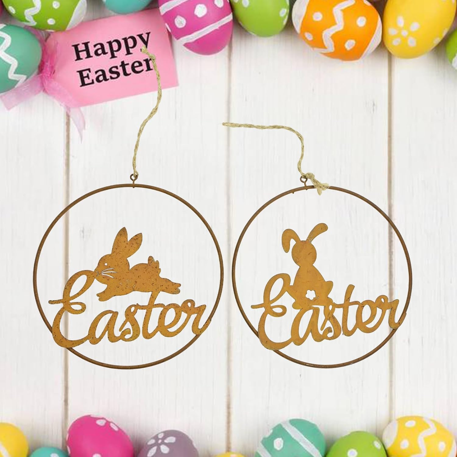 Ampia applicazione per decorare pareti, finestre, porte d'ingresso, tavolo, caminetti, caminetti, ecc. Ideale per camera da letto, cucina, soggiorno, fattoria e bagno, per caffetterie e panetterie, creando una forte atmosfera di vacanza Dimensioni adeguate, cartello pasquale dimensioni adeguate per la porta d'ingresso, finestra, parete, porta vitalità alla tua festa in casa Regalo meraviglioso, un fantastico regalo per parenti, vicini, amici, insegnanti e così via, per dare la tua benedizione, e può essere utilizzato come regalo di inaugurazione della casa. Adatto per Pasqua, vacanze primaverili e altre occasioni speciali La decorazione da parete pasquale è realizzata in metallo sicuro, non si corrode o si rompe facilmente, riutilizzabile e mantiene a lungo, con una buona consistenza e liscia, rende l'aspetto più squisito La confezione include 2 cartelli per porta con coniglietti pasquali