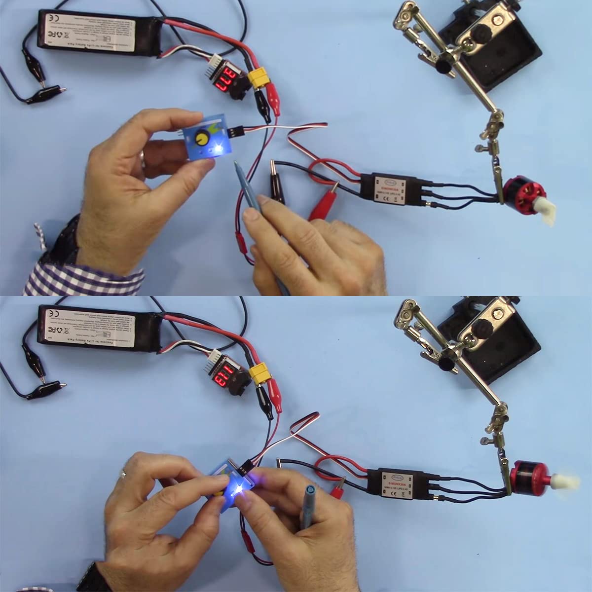 【Scopo】: Il dispositivo può essere utilizzato come generatore di segnale per il regolatore di velocità elettrico (ESC). Con esso puoi testare il tuo sistema motore senza utilizzare un trasmettitore e un ricevitore. 【Tre modalità】: sono disponibili 3 modalità per controllare i servi o l'ESC, la capacità di rilevare e configurare facilmente i gap virtuali, il jitter e la mediana del server. 【Caratteristiche】: può essere collegato a due servi o ESC; Controllo MCU, buona stabilità, alta precisione. Girare la manopola, la direzione può essere rilevata. 【Esempio】: Se si collega il regolatore elettronico (spazzolato o senza spazzole), è possibile eliminare il dispositivo di controllo remoto per il controllo manuale della velocità. 【Molto conveniente】: è molto comodo testare le prestazioni del regolatore o del motore, non è necessario collegare noiosamente il telecomando e il ricevitore. Questo è l'equivalente di una funzione "ricevitore manuale" che simula il controllo del trasmettitore tramite un pulsante.