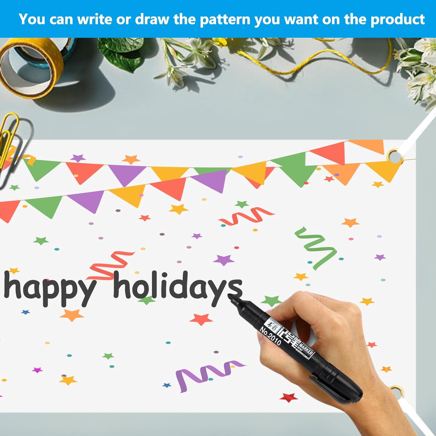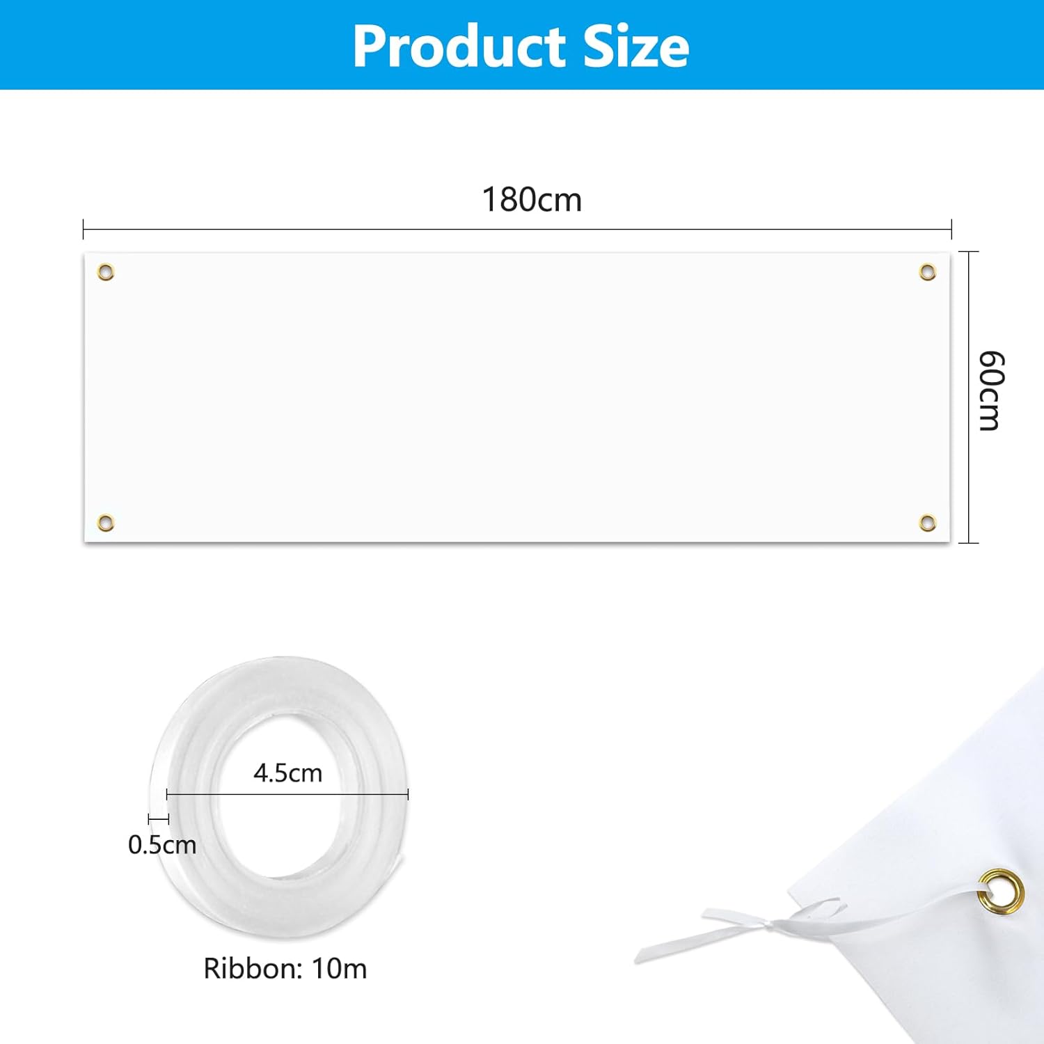 【Banner bianco verniciabile】2 set di grandi banner vuoti. Ogni set include uno striscione bianco da 180x60 cm e una corda per appendere da 10 m. 【Materiale】 Lo striscione bianco è realizzato in poliestere di alta qualità, resistente, non facile da rompere e facile da pulire. Facile da installare: l'installazione di questo banner bianco vuoto è comoda e semplice. Basta collegare le corde agli occhielli metallici. È facile da installare e rimuovere. Appendili semplicemente ovunque tu voglia decorare. 【Esplora la tua creatività con banner personalizzati】 Colora, dipingi e decora i nostri banner bianchi vuoti come preferisci per esprimere le tue idee e creare le tue opere d'arte. Scopri il tuo lato creativo e sviluppa le tue capacità di progettazione. 【Ampia gamma di applicazioni】 Adatto per uso interno ed esterno. Possono essere appesi a porte, balconi, finestre, pareti, alberi, ecc. Gli striscioni vuoti sono una decorazione perfetta per feste a tema e possono anche essere usati come oggetti di scena per scatole fotografiche di compleanno per uomini e donne.