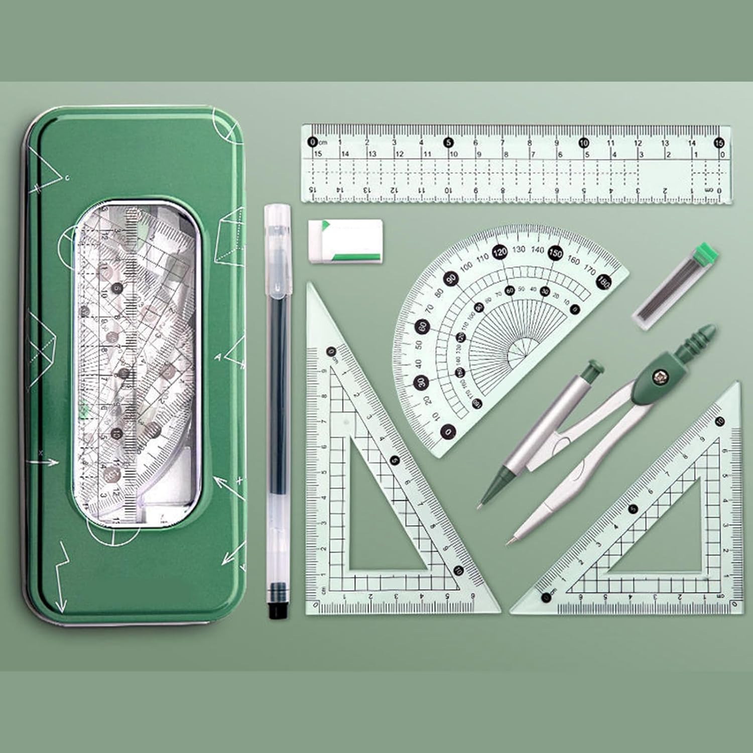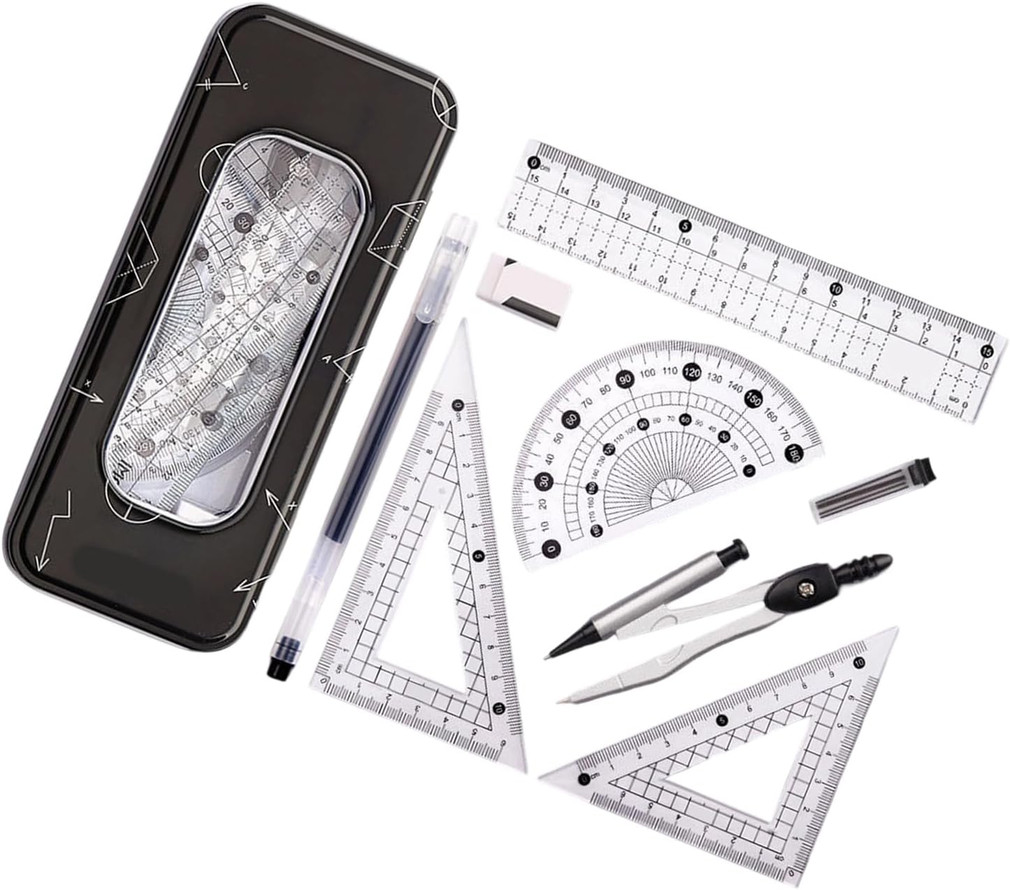 corpo principale in plastica ABS. Con dimensioni portatili 18x7,5 cm, può essere facilmente riposto in un astuccio, rendendolo facile da trasportare per studenti senza alcun peso. Non danneggia facilmente Strumento accurato: le bussole in materiali in lega assicurano che ogni cerchio disegnato preciso e privo errori. Risolve problema della deformazione dei comuni compassi in plastica, adatto a studenti e progettisti professionisti che necessitano un preciso Combinazione multifunzionale: include più righelli e strumenti un set che soddisfa varie esigenze. Risolve problema che un unico strumento non può gestire compiti complessi, adatti per l'uso in varie occasioni come scuole, uffici e compiti a casa set contenitori portatili viene fornito con un contenitore dedicato, che semplifica l'organizzazione tutti strumenti evita la perdita. Particolarmente adatto per uomini d'affari che viaggiano spesso o hanno bisogno portare con sé articoli cancelleria, garantendo che l'efficienza del lavoro non venga compromessa Esperienze presa confortevoli: l'impugnatura ergonomica l'affaticamento anche dopo un uso prolungato. Fornire un'esperienza utente più confortevole e migliorare l'efficienza del lavoro per utenti che hanno bisogno dedicare molto lavoro