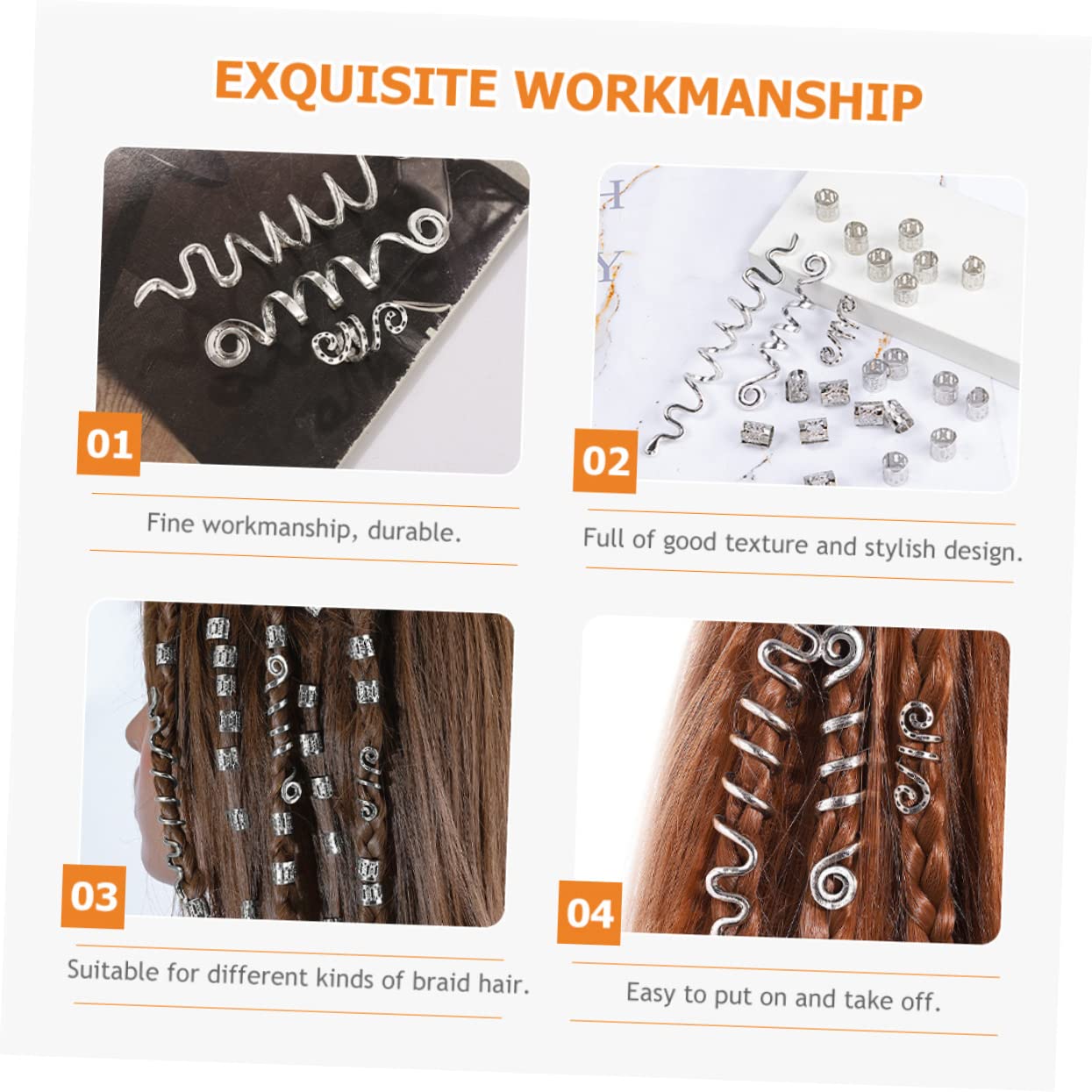 Dreadlock: questi accessori per capelli sono facili da indossare e da togliere e sono adatti sia ai principianti che ai professionisti quando si intrecciano i capelli. Accessori per capelli intrecciati: quando li indossi sui capelli, sembri affascinante e puoi facilmente attirare l'attenzione, accessori per capelli. Tubo per polsini per capelli: trecce di personalità abbinate, adatte per feste, matrimoni, sfilate di moda, balli, ecc., polsini con dreadlock. Anelli per capelli: pieni di buona consistenza e design elegante, adatti a diversi tipi di capelli intrecciati e accessori per capelli. Polsini per trecce: la superficie è liscia e la curvatura del bordo è comoda per evitare graffi, perline intrecciate con dreadlock.