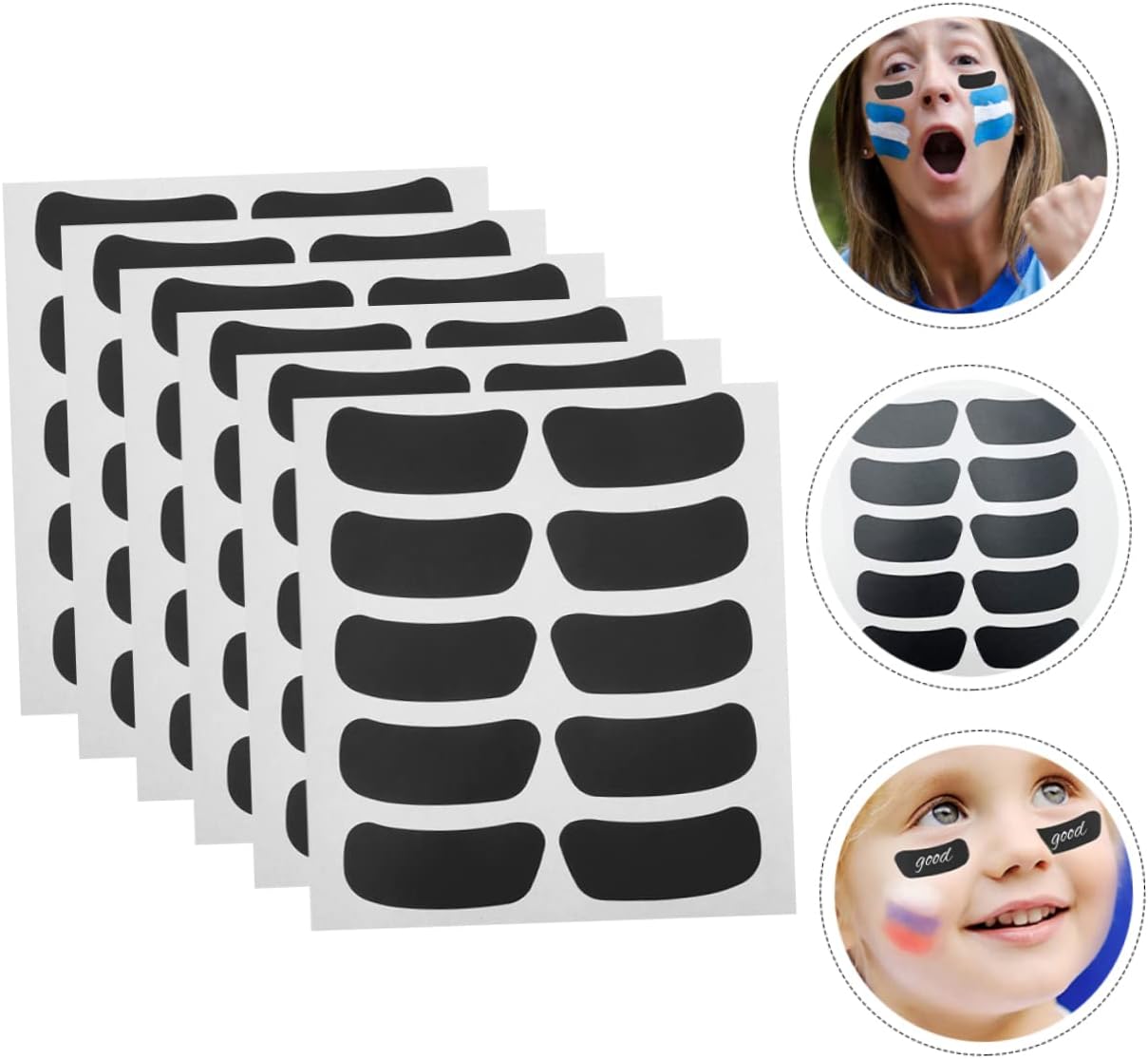 Adesivi per il viso rimovibili - adatti per gli appassionati di partite di calcio e altre partite internazionali, adesivi per il viso autoadesivi Adesivi per il viso indossabili - con pregevole fattura, l'adesivo con la bandiera del calcio svolge il ruolo di adesivo, è molto utile, adesivo da calcio Adesivi adesivi per gli occhi - adesivi alla moda, resistenti all'usura e incoraggianti non cadranno facilmente, puoi usarli facilmente, adesivi per partite di calcio Adesivi neri adesivi - incoraggia e combatti per la tua squadra o giocatore preferito con questo adesivo iconico unico, adesivi fai-da-te Adesivi decorativi per il viso - queste fasce da baseball nere si adattano sotto gli occhi e possono essere attaccate ceramica, legno, acciaio, alluminio, porcellana, plastica o altre superfici lisce e non porose, adesivi delle partite del mondo di calcio