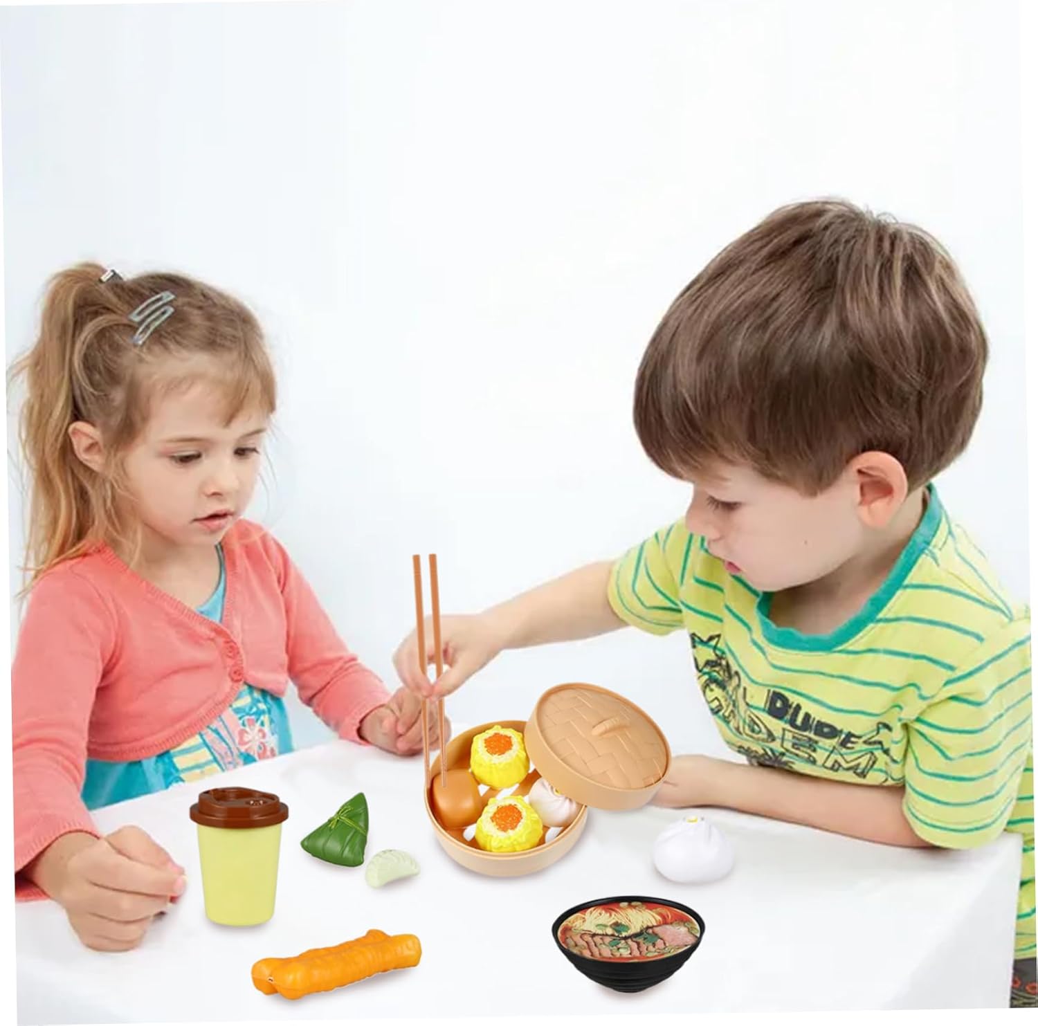 Autentica esperienza Dim Sum: i giocattoli dei nostri bambini contengono due set di dim sum cinesi in plastica, offrendo ai piccoli chef un'autentica esperienza di colazione. Questi giocattoli realistici stimolano l'immaginazione e promuovono l'apprezzamento culturale attraverso divertenti giochi di ruolo. Materiali affidabili e sicuri: questi giocattoli alimentari sono realizzati in plastica atossica, priva di BPA e sono sicuri da maneggiare per i bambini piccoli. I genitori possono stare tranquilli sapendo che il gioco è divertente e sicuro e allo stesso tempo incoraggia il gioco fantasioso. Design realistico per un gioco emozionante: ogni pezzo è realizzato in plastica che imita realisticamente l'aspetto di deliziosi oggetti dim sum. I colori vivaci e i dettagli intricati migliorano l'esperienza di gioco dei bambini e incoraggiano l'esplorazione più profonda della cucina e degli argomenti di cucina. Ideale per i giovani chef: che si tratti di compleanni, vacanze o di una divertente sorpresa, questi realistici giocattoli cinesi per la colazione sono perfetti per i piccoli chef in erba. Ispira la creatività e il gioco interattivo con questo adorabile set che invita alla scoperta culinaria! Perfetto per il gioco di ruolo: questi giocattoli dim sum sono ideali per il gioco di ruolo a colazione e consentono ai bambini di servire, condividere e creare le proprie avventure culinarie. I bambini possono sviluppare abilità sociali e creatività imitando la cucina e servendo cibo ad amici e familiari.