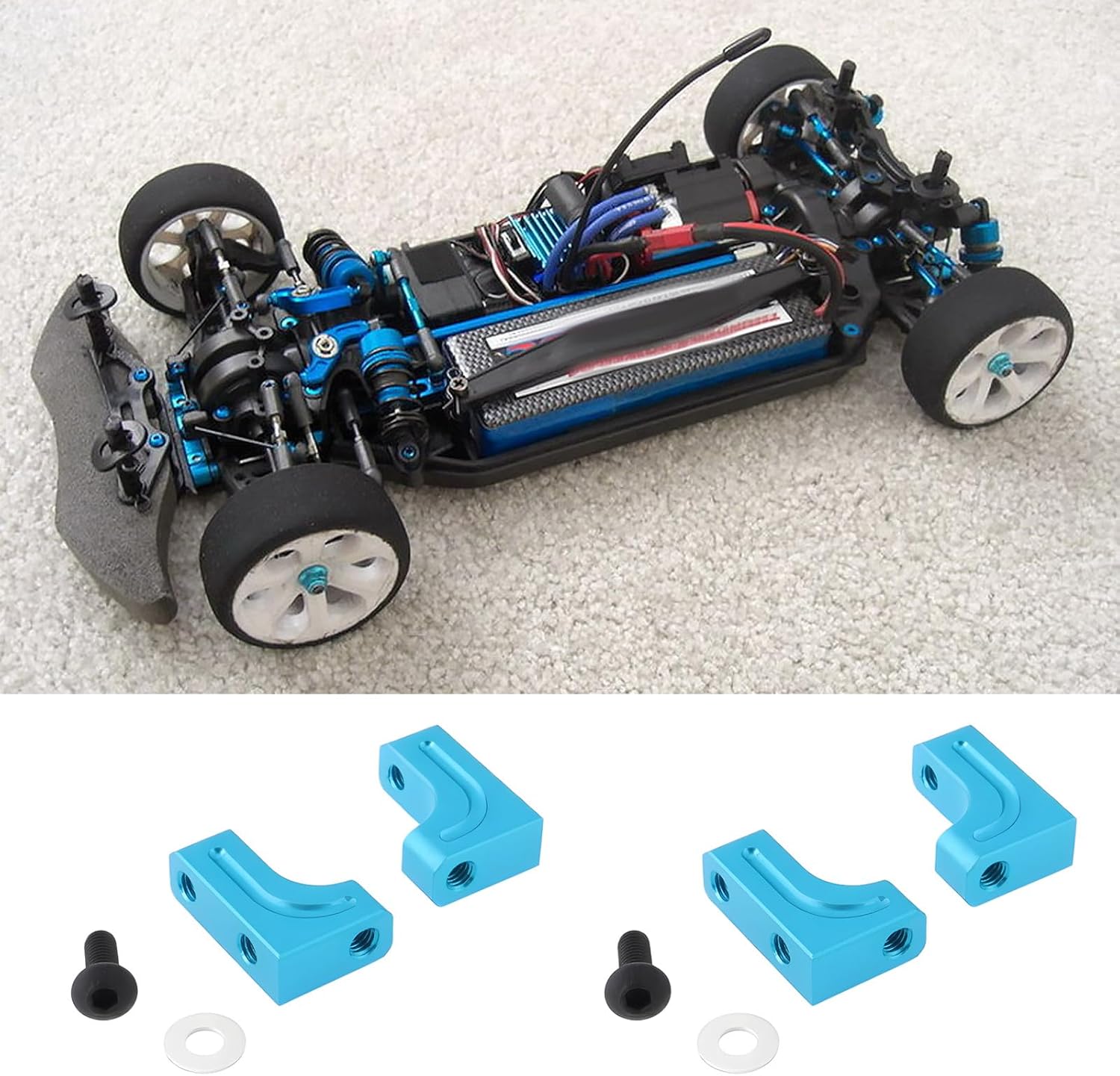 Compatibilità : Questo prodotto è compatibile con Ta-miya TT02, XV01 e TB03. Caratteristiche del prodotto : Questo componente contribuisce a migliorare le prestazioni e le impostazioni dell'auto RC. La struttura in alluminio offre un supporto più robusto per il servo. La riduzione dell'area di contatto con il telaio si traduce anche in migliori prestazioni di rotolamento. Facile da installare : Sostituzione diretta senza regolazione, perfetta compatibilità e alta affidabilità. Materiale del prodotto : Questo prodotto è appositamente progettato e realizzato in alluminio, che ha una lunga durata e non si danneggia facilmente. Elenco prodotti : Il prodotto include un totale di 2 supporti servo destro, 2 supporti servo sinistro, 8 distanziali, 12 viti, che possono soddisfare completamente le tue esigenze di utilizzo quotidiano e di sostituzione.
