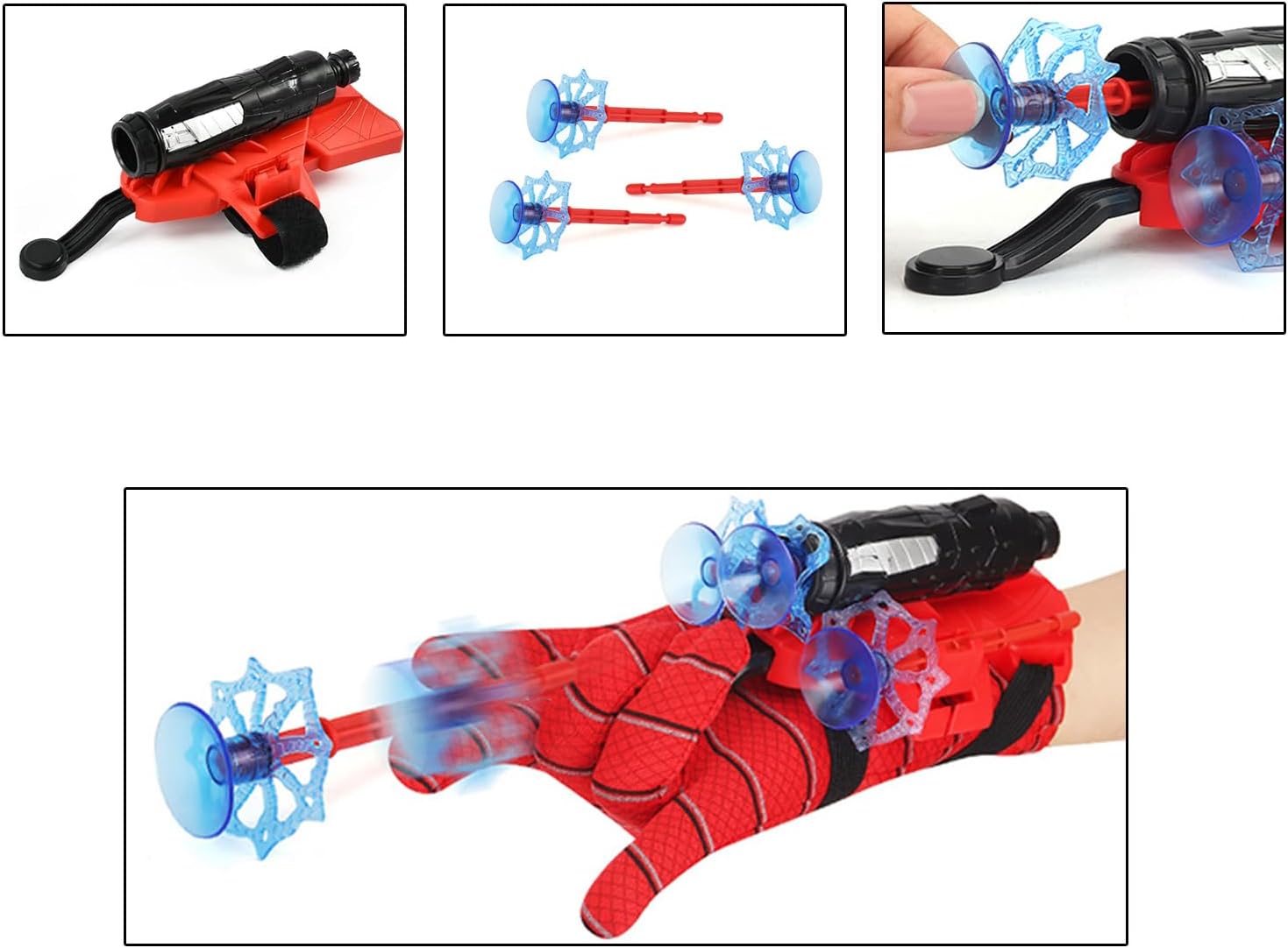2 Set Guanti per Lanciatore di Ragno, Guanti da Eroe Ragno per Bambini, Set di Giocattoli da Polso, Lanciatore di Eroi, Divertenti Oggetti di Scena per Costumi Giocattolo Educativo per Bambini