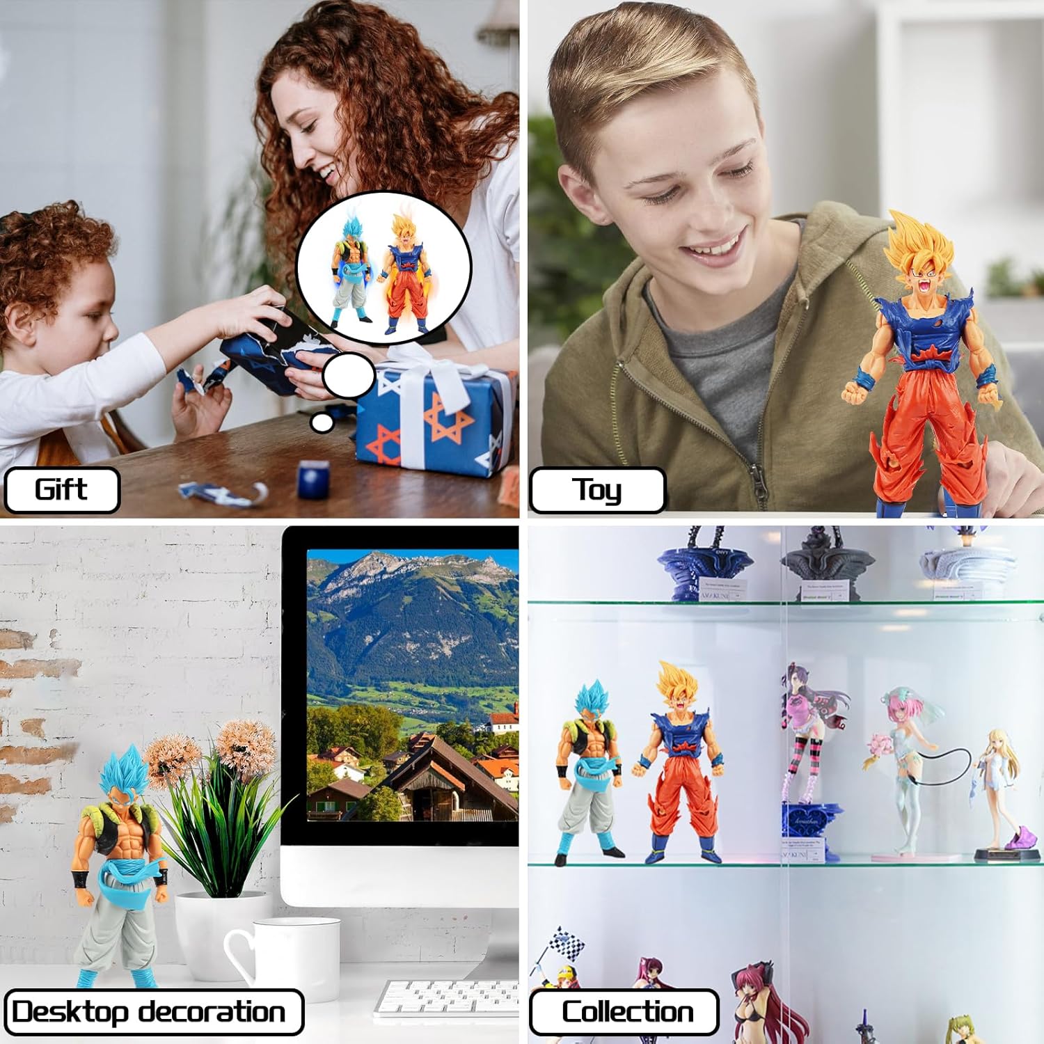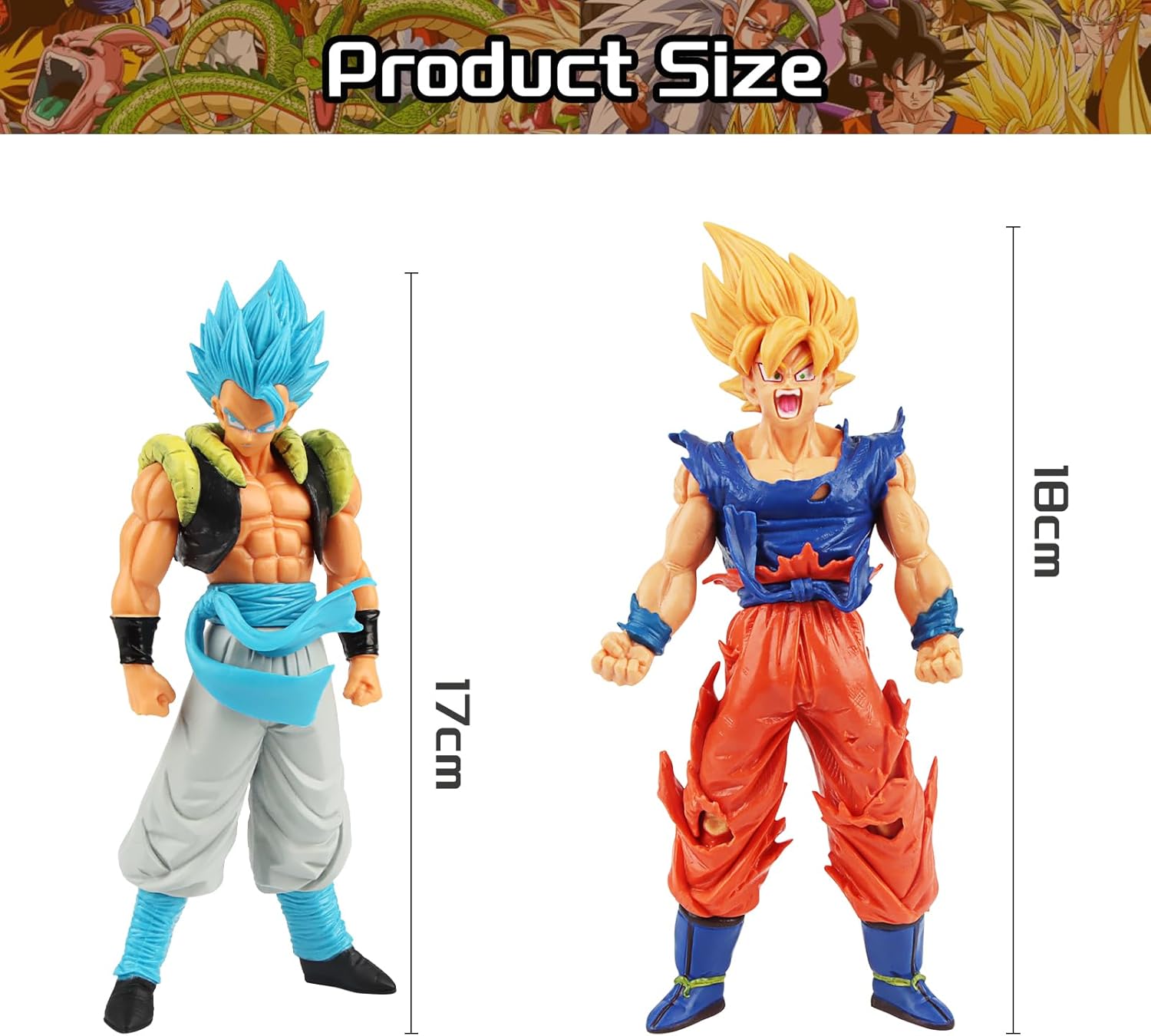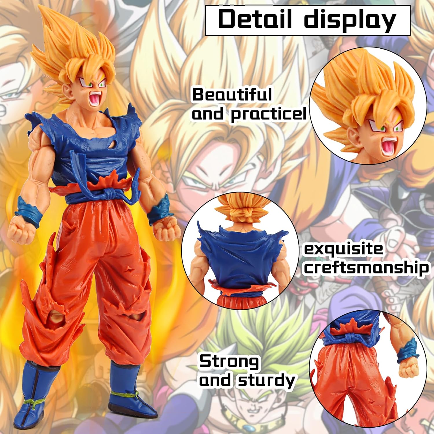 Design classico: questa statuetta Goku ha un design classico e presenta personaggi anime super popolari, che lo rende perfetto come regalo a sorpresa per bambini e fan. Materiale sicuro: queste statuette sono realizzate in PVC ecologico, sicuro, atossico e durevole, per garantire la salute e la protezione dell'ambiente del prodotto, nonché colori vivaci che lo mantengono come nuovo per un lungo periodo di tempo. Immagine realistica: i personaggi Go-ku sono così autentici e realistici, unici e perfettamente dettagliati, perfetti per ogni fan degli anime e una collezione indispensabile per ogni gusto di cattura anime. Giocare e presentare: questi personaggi Go-ku possono competere all'infinito contro altri giocattoli anime della tua collezione, con i quali puoi ricreare le famose pose e gli attacchi dei tuoi eroi anime, possono giocare, esporre o collezionare. Multiuso: questi personaggi Son Go-ku possono essere posizionati in una varietà di scene come librerie, scrivanie o vetrine, come decorazione o come giocattolo, aggiungendo un tocco di colore.