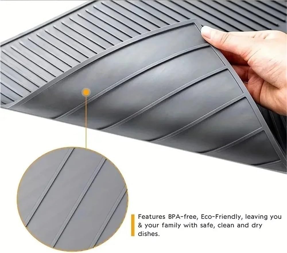 Zona di asciugatura con controllo delle fuoriuscite: le scanalature profonde convogliano l'acqua direttamente nei lavandini mentre i bordi rialzati prevengono le fuoriuscite sui ripiani. La superficie resistente al calore gestisce pentole calde, teglie da forno o contenitori for la preparazione dei pasti fritti ad aria senza deformarsi. Multifunzione salvaspazio: sostituisci gli ingombranti scolapiatti con questo sottile tappetino che funge anche da protezione for il bancone durante la stesura dell'impasto o l'affilatura dei coltelli. Si piega in modo compatto for piccole cucine, camper o for riporre sotto il lavello. Design igienico ad asciugatura rapida: la texture microventilata accelera il flusso d'aria for asciugare i piatti il ​​30% più velocemente rispetto ai cestelli tradizionali. La superficie non porosa resiste alla ritenzione di umidità in ambienti umidi e si pulisce con una sola passata. Comfort anti-fatica: lo spessore ammortizzato riduce lo sforzo del polso durante le sessioni di lavaggio prolungate. Il supporto antiscivolo rimane saldamente in posizione anche quando si caricano pesanti padelle in ghisa o teglie in vetro. Aggiornamento elegante della cucina: i toni neutri si fondono con l'arredamento moderno in stile rustico o minimalista. Utilizzabile come sottopentola decorativo for taglieri o come tappetino for ciotole for animali domestici tra un pasto e l'altro. Lavabile in lavatrice for una manutenzione senza sforzo.