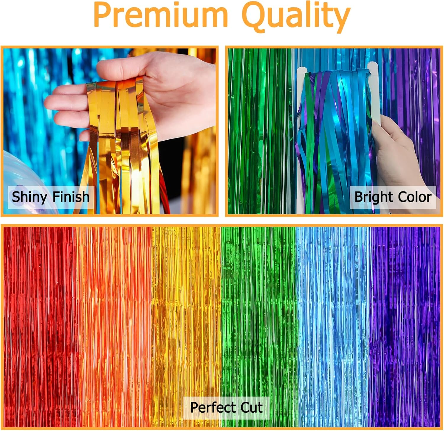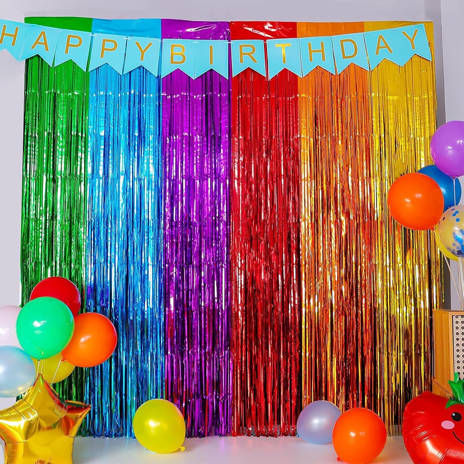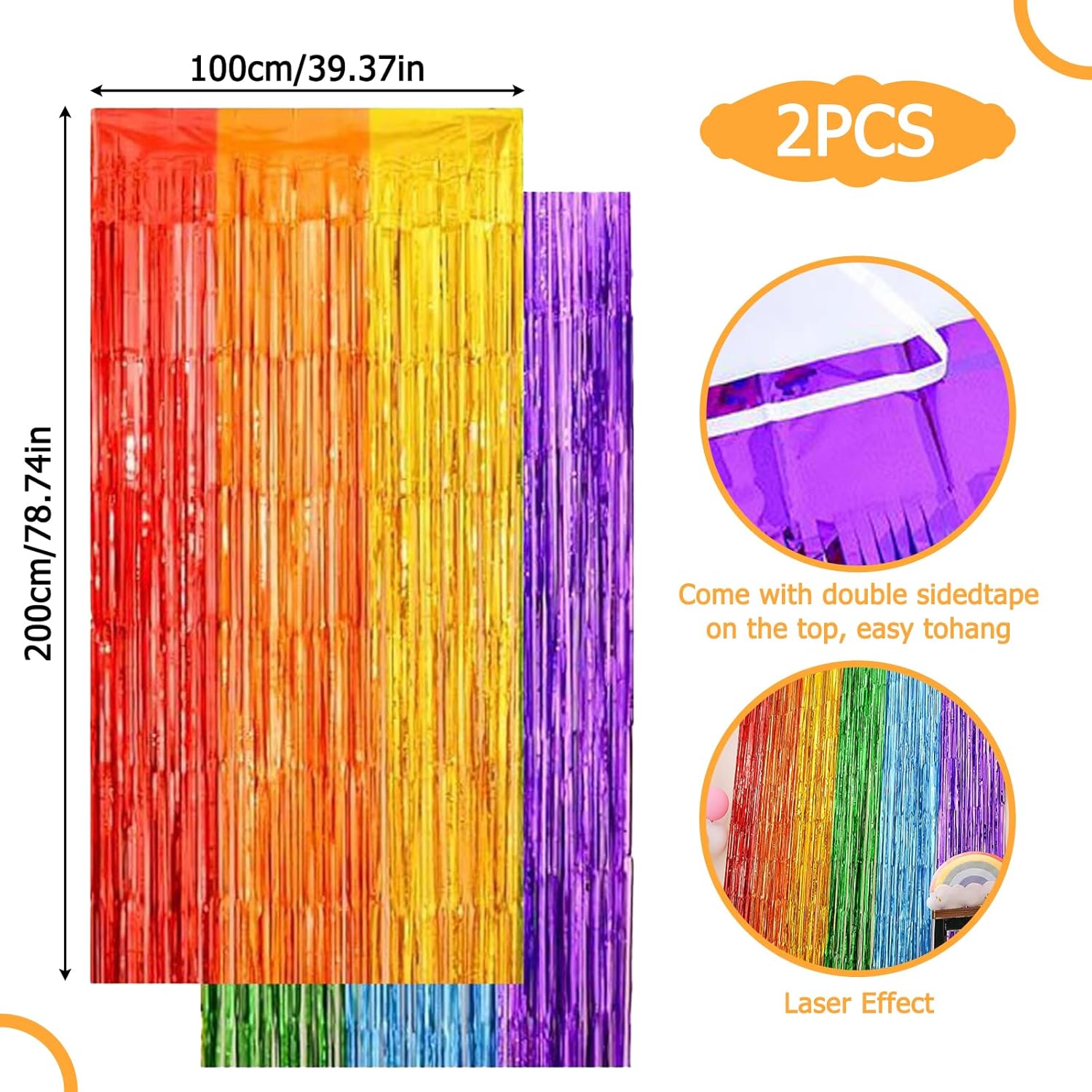 Dimensioni: ogni tenda misura 1 m x 2,5 m, perfetta per creare splendidi fondali o decorazioni per feste Quantità: il set include 2 tende color arcobaleno per la massima copertura e un effetto drammatico Design versatile: le frange in lamina metallica creano un display scintillante e accattivante adatto per varie celebrazioni Ideale per: perfetto per compleanni, fidanzamenti, eventi scolastici, sfondi fotografici e altre occasioni festive Facile da installare: il design leggero consente un'installazione rapida e semplice da appendere a pareti, porte o spazi per feste