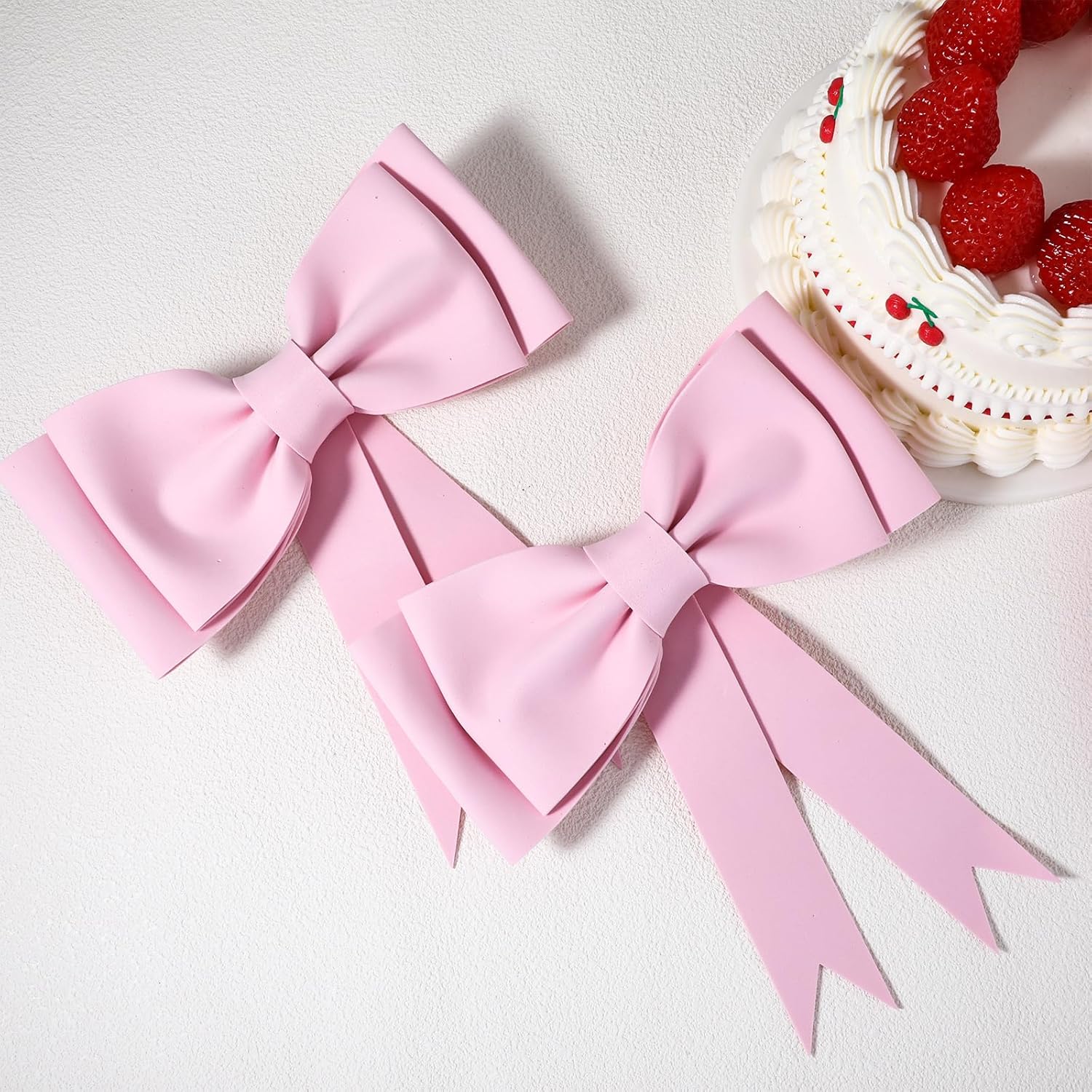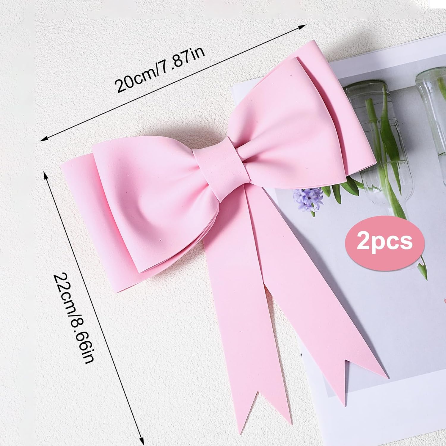 Topper per torta oversize con fiocco: riceverai 2 toppers per torta oversize che misurano circa 22 x 20 cm. Questi grandi fiocchi creano un'atmosfera da sogno, perfetta per decorare torte bohémien a tema principessa rosa. Aggiungi eleganza a qualsiasi torta di prua. Topper per torta in schiuma EVA rosa: i nostri toppers per torta rosa sono realizzati in schiuma EVA di alta qualità. Questi toppers per torta fatti a mano non sbiadiscono né si scheggiano. Nessun assemblaggio richiesto, basta posizionarli dove vuoi. Topper per torta con fiocco romantico durevole e riutilizzabile: i toppers per torta con fiocco rosa aggiungono un tocco romantico e onirico alla tua torta, rendendola più bella e delicata. Perfetto per compleanni di ragazze, baby shower, matrimoni, San Valentino, ecc. Fantastici toppers per torta perfetti per donne e ragazze: i toppers per torta con fiocco rosa oversize sono ideali per personalizzare torte di compleanno per tua figlia, madre, nonna, fidanzata, moglie o sorella. Questi toppers per torta con fiocco aggiungono un tocco personale ed elegante a qualsiasi torta. Decorazioni per torte versatili: questi fiocchi rosa di grandi dimensioni sono perfetti per decorare torte e decorazioni per feste. Attaccateli a pareti e finestre con nastro biadesivo per creare una romantica festa a tema rose. Perfetto per qualsiasi celebrazione
