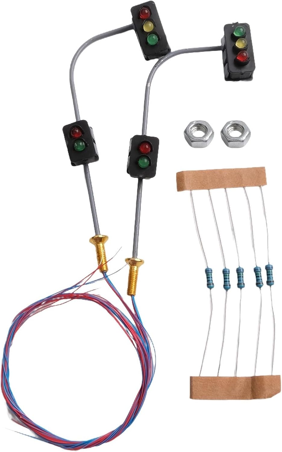 Segnali stradali pedonali a LED: i semafori sono dotati di fili e LED, che consentono loro di essere illuminati. Funzionamento a bassa tensione: queste luci funzionano a una tensione di 3 V CC, ma si deve prestare attenzione a non superare questo limite a meno che non sia cablata una resistenza con ciascuna luce. Consumo di corrente efficiente: ogni luce consuma una corrente di 20 mA, fornendo un funzionamento efficiente dal punto di vista energetico. Adatto per layout in scala N: progettate specificamente per layout in scala N, queste luci si adattano perfettamente ad ambienti in miniatura.