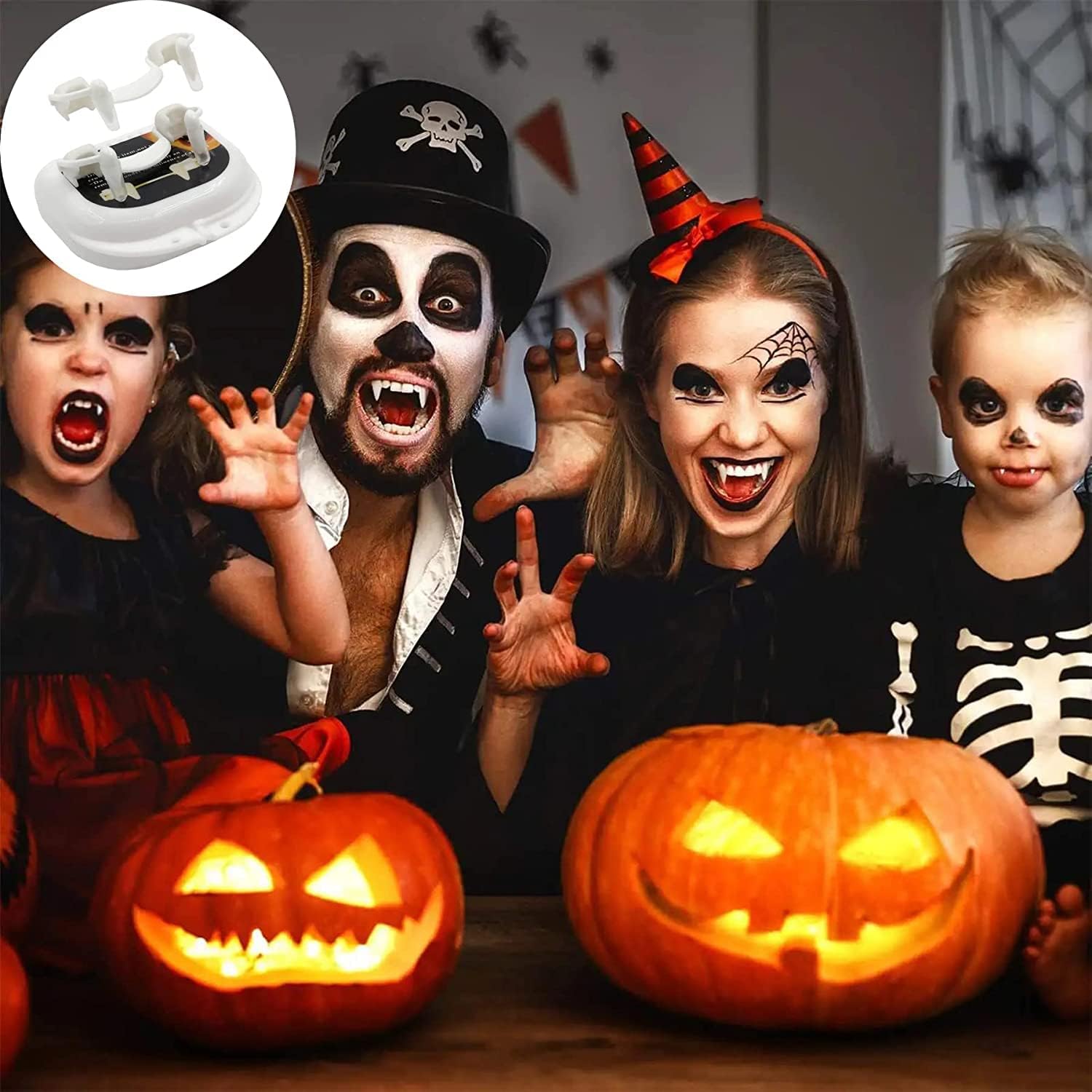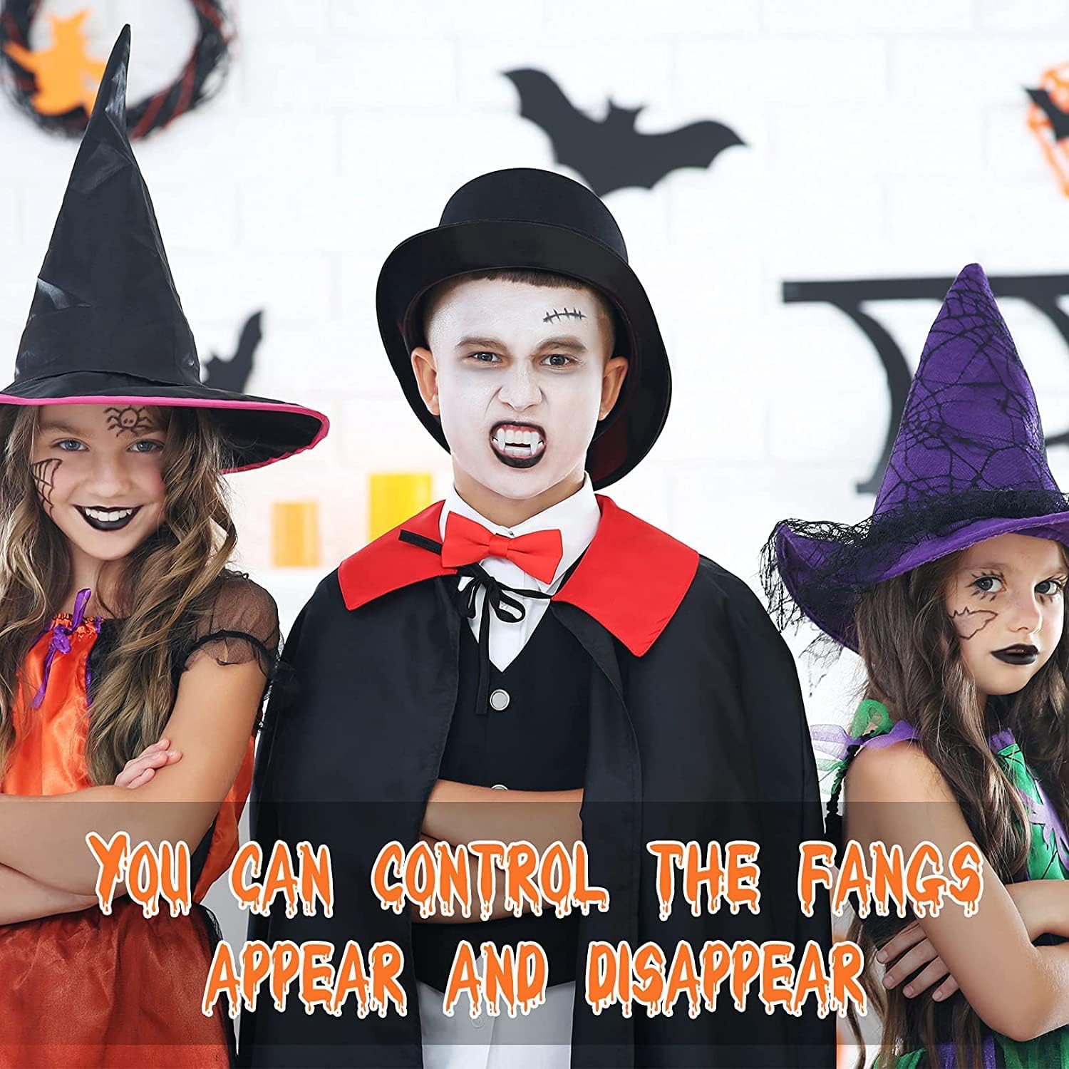 Accessori realistici per Halloween: questa protesi riutilizzabile è adatta per canini o incisivi o denti inferiori, super realistica e delicata, senza alcun danno, particolarmente perfetta per feste di Halloween. Design retrattile: rispetto alle normali protesi di Halloween, i nostri denti finti a zanne da vampiro adottano un design retrattile; è possibile installare i denti sui denti canini, anteriori o inferiori, quindi utilizzare la lingua per toccare l'interruttore al centro per ritrarre i denti in modo flessibile. Materiale delle zanne da vampiro: realizzate in plastica e silicone di alta qualità, sicure, durevoli, possono essere riutilizzate lavando con acqua. Ti permette di mostrare le tue zanne da vampiro ai tuoi amici in qualsiasi momento e ovunque. Non causa danni ed è facile da usare con la forma della bocca della maggior parte delle persone. Regalo unico: vengono forniti con una bella scatola, la scatola misura circa 7,8 x 8 x 2,9 cm, facile da trasportare e riporre e rendere le protesi da vampiro riutilizzabili per molte volte. Questo puntello per protesi è la scelta perfetta per le tue feste di Halloween e scherzi quotidiani. È anche un nuovo regalo per gli amici, portando a te e ai tuoi amici un divertimento senza fine. Ampi usi: questi accessori per costumi con denti finti sono molto adatti per feste di Halloween, feste a tema vampiri, lupi mannari e zombie, giochi di ruolo, giochi di finzione, feste in costume, carnevale, feste in maschera, feste a tema horror e molto altro ancora. Facile da indossare e usare, perfetto per feste di Halloween in casa.