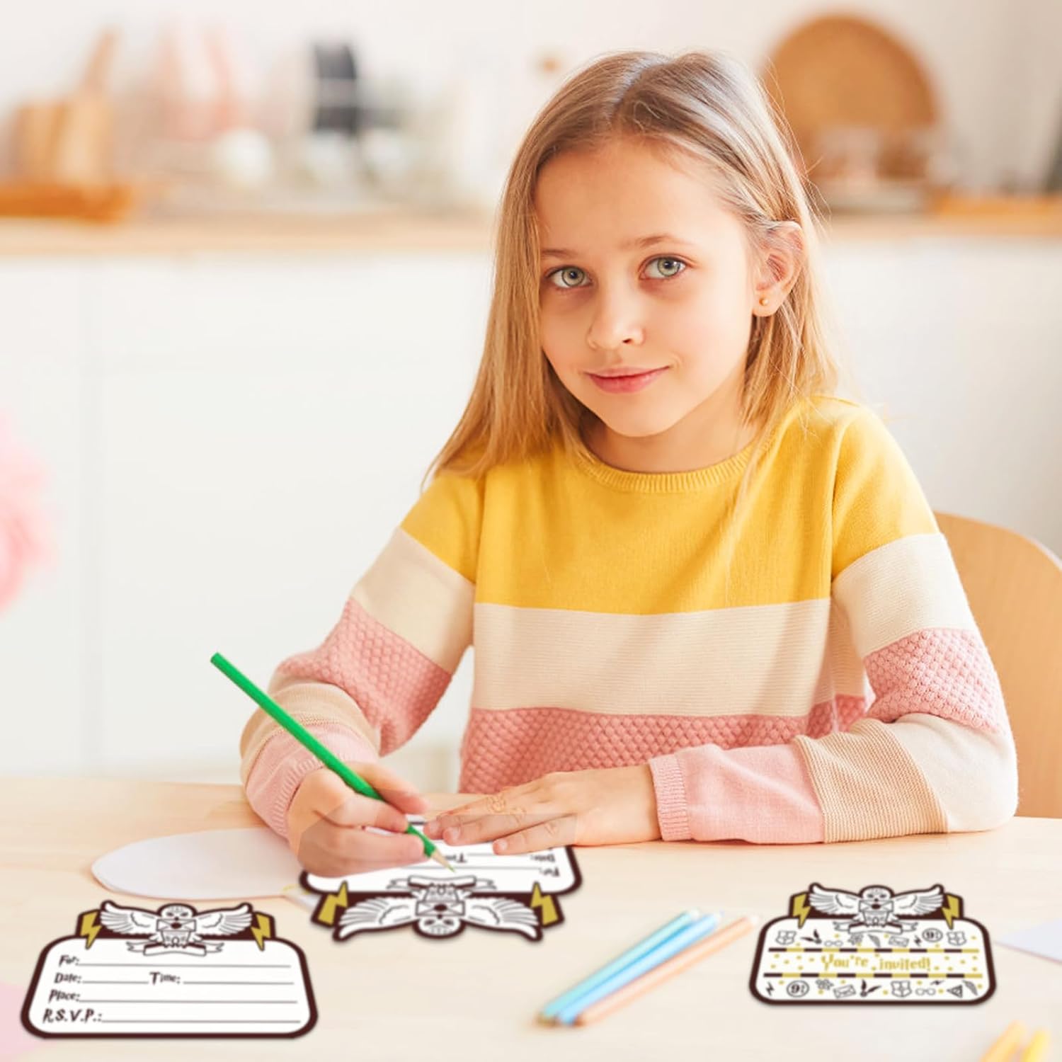 【Biglietto d'invito per maghi】Questo biglietto d'invito per maghi è perfetto per chi ama il mondo della magia. Il design incorpora motivi classici come i gufi e colori intensi per dare vita al tema. 【Set di inviti per feste di compleanno】Il set comprende 20 inviti per maghi, 20 buste e 35 etichette adesive. Il set è una soluzione perfetta per chi vuole creare inviti emozionanti e personalizzati. 【Il miglior formato】Con un disegno a fumetti sul fronte del biglietto d'invito e il messaggio d'invito sul retro, c'è molto spazio per tutte le informazioni importanti. C'è anche spazio per un messaggio personale e per i dettagli della festa. Adatto a tutte le penne comuni, come penne a sfera, penne neutre, matite e così via. 【Carta di alta qualità】Questi biglietti d'invito sono realizzati in carta spessa e resistente per garantire che non si strappino o si pieghino facilmente. Sono inoltre stampati su entrambi i lati con immagini e testi chiari. 【Inviti per feste a tema】Questi biglietti d'invito magici sono perfetti per eventi a tema come feste di compleanno, Halloween e altre occasioni speciali. Invitate i vostri ospiti con questi inviti unici e rendete speciale il vostro evento.