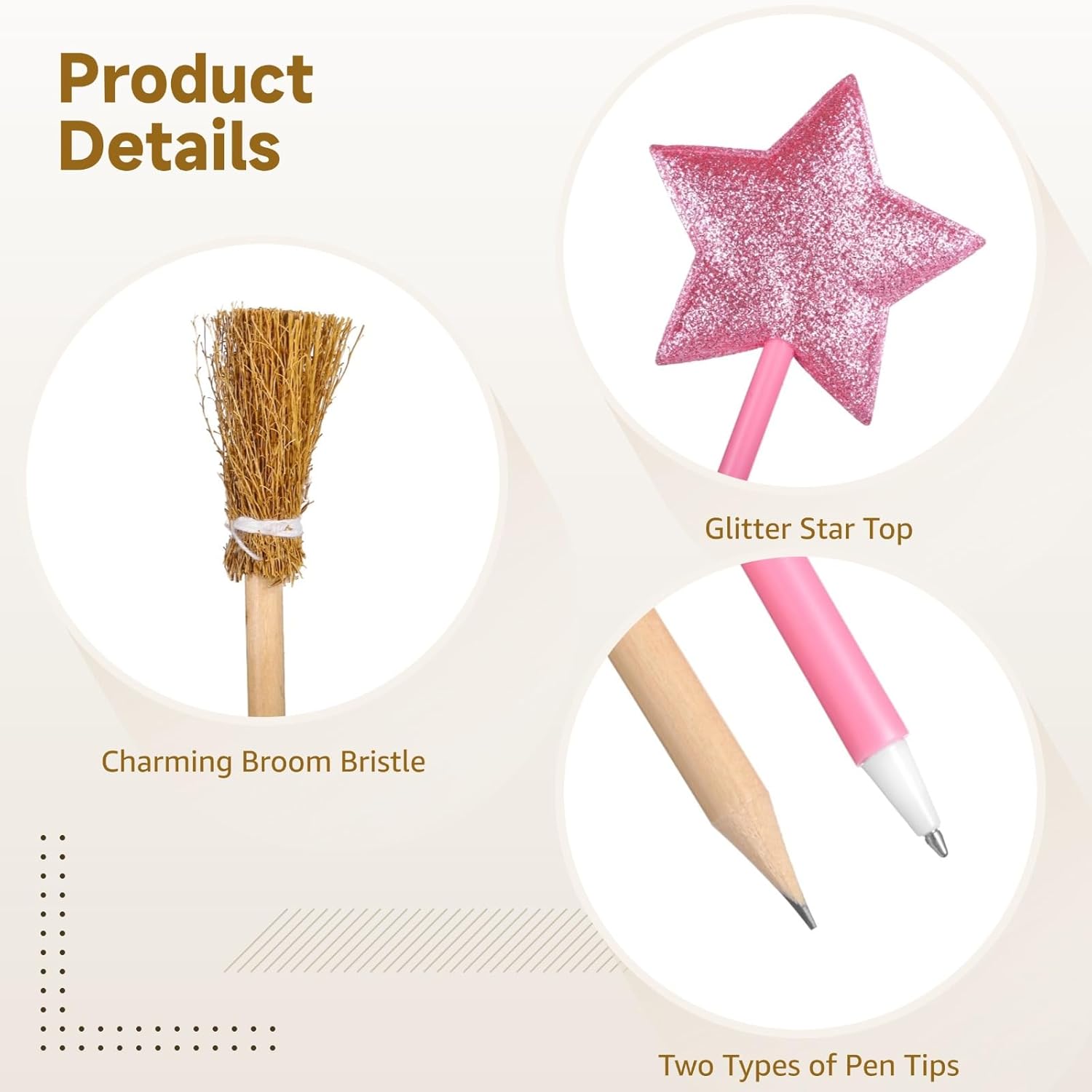 Set da 20 pezzi: include 10 penne a sfera con stelle glitterate e 10 matite scopa; colori vivaci e coinvolgenti attirano sia i bambini che gli adulti; per una festa piena di divertimento Design stravagante: penne a forma di stella luccicanti con glitter; le matite con scopa hanno manici in legno e setole delicate; aggiungono divertimento a ogni occasione Liscio e affidabile: realizzato in plastica e legno di alta qualità; previene la rottura; il flusso di inchiostro liscio garantisce una scrittura senza sforzo; ideale per disegnare e scrivere Comodo e leggero: leggero ed ergonomico per una facile maneggevolezza; adatto a tutte le età; ideale per lunghe sessioni di scrittura o giochi Uso versatile per feste: per compleanni, feste a tema, Halloween e molto altro ancora; questi bomboniere giocose creano un'atmosfera magica e intrattengono gli ospiti