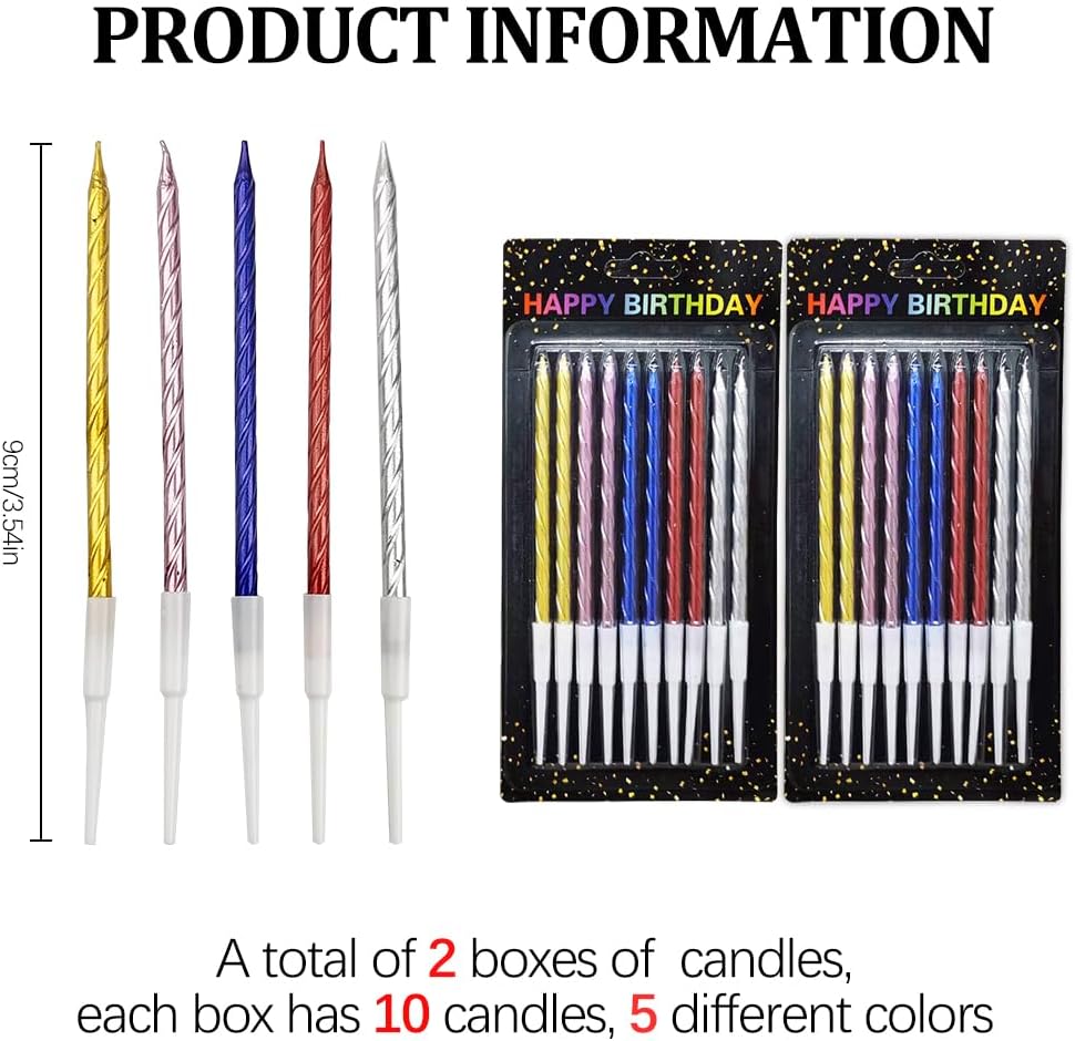 Candele di compleanno sottili e lunghe per torta: riceverete 20 candele di compleanno in 2 scatole, ogni scatola contiene 10 candele. L'altezza delle candele di compleanno è di 9 cm. Con esso, puoi cantare diversi round di "Buon compleanno". Candele di compleanno multicolori: le candele di compleanno multicolore sono adatte sia per ragazzi che per ragazze. I colori delle candele sono molto belli e luminosi e hanno creato uno scenario meraviglioso. I colori pastello li rendono davvero raffinati e versatili. 【Tenuta bene con il supporto】 Sulla base si trova un coperchio in plastica che impedisce alla cera di gocciolare sulla torta. Le candele sottili sono una meravigliosa decorazione per torte. Candele lunghe inodore e atossiche: le candele di compleanno sono realizzate in materiale cerato di alta qualità, inodore e atossico, sicure per l'uso. Le candele sottili per torte possono decorare perfettamente la tua torta. Bellissime candele per ogni occasione: le classiche candele per torte sono perfette per compleanni, festa della mamma, matrimoni, docce nuziali, docce per bambini, ecc. Se vuoi rendere la tua festa più colorata e creativa, sono altamente raccomandati.