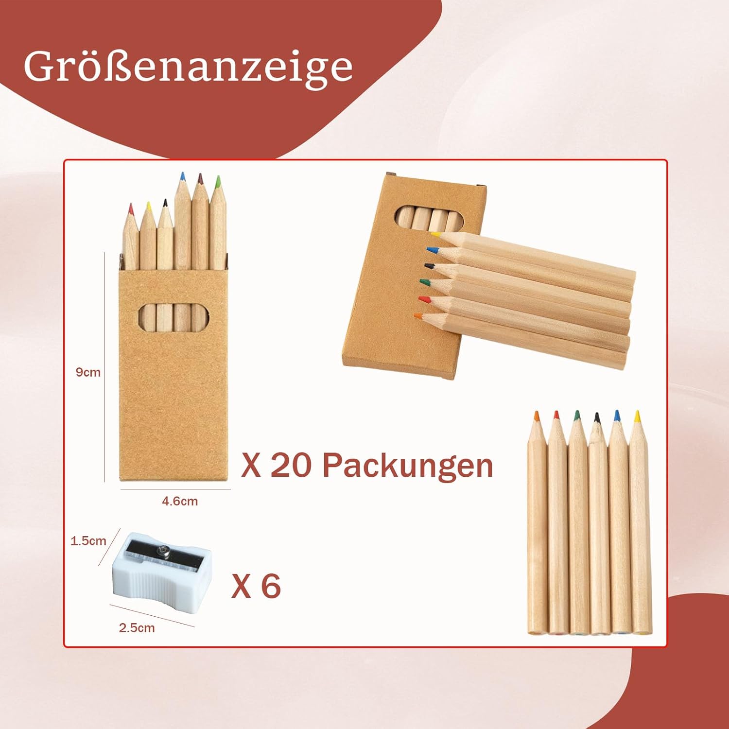 20 confezioni da 6 colori: questo mini set di pastelli per bambini contiene 20 piccole confezioni di pastelli, ciascuna con 6 colori vivaci. Perfetto come bomboniera per bambini per rendere ancora più colorati compleanni, feste o eventi scolastici! Sicuri per le mani dei più piccoli: i nostri pastelli e matite colorate per la scuola di alta qualità sono stati sviluppati appositamente per i bambini: facili da impugnare. Adatto ai bambini per dipingere senza preoccupazioni! Sicure e portatili: queste matite colorate per bambini realizzate con materiali di alta qualità sono robuste e durevoli. Non si rompe facilmente, scrivi senza intoppi, è facile da colorare. Inoltre, viene fornito in una scatola che lo rende facile da prendere. Facile da usare: le piccole matite colorate hanno un classico design esagonale che si adatta comodamente alla mano ed è facile da controllare. Le nostre penne sono affilate in modo da poterle utilizzare immediatamente. Ampia applicazione: i piccoli set di matite colorate portatili sono adatti ai bambini per scrivere, disegnare e fare schizzi, ideali anche per la scuola, l'ufficio, i regali per le feste, i viaggi o come regalo pratico.