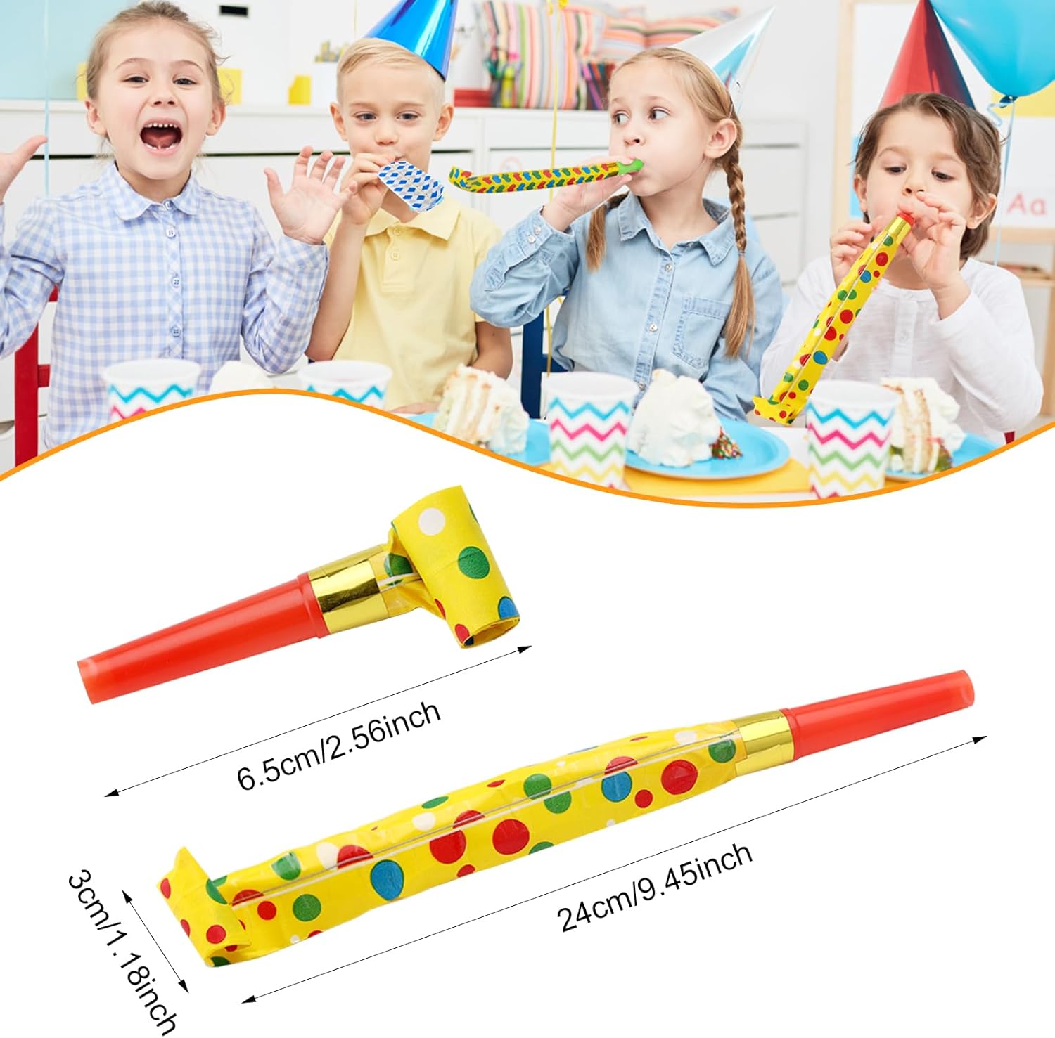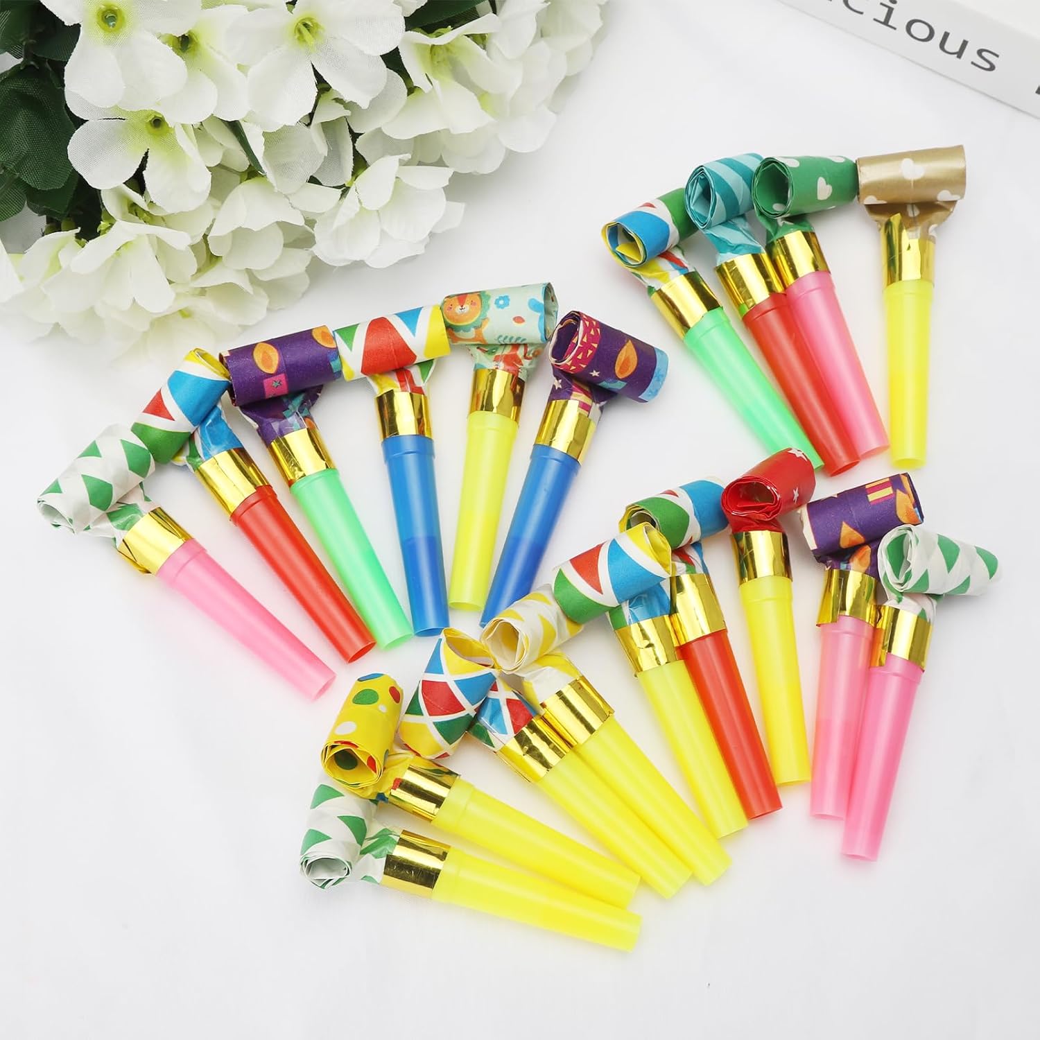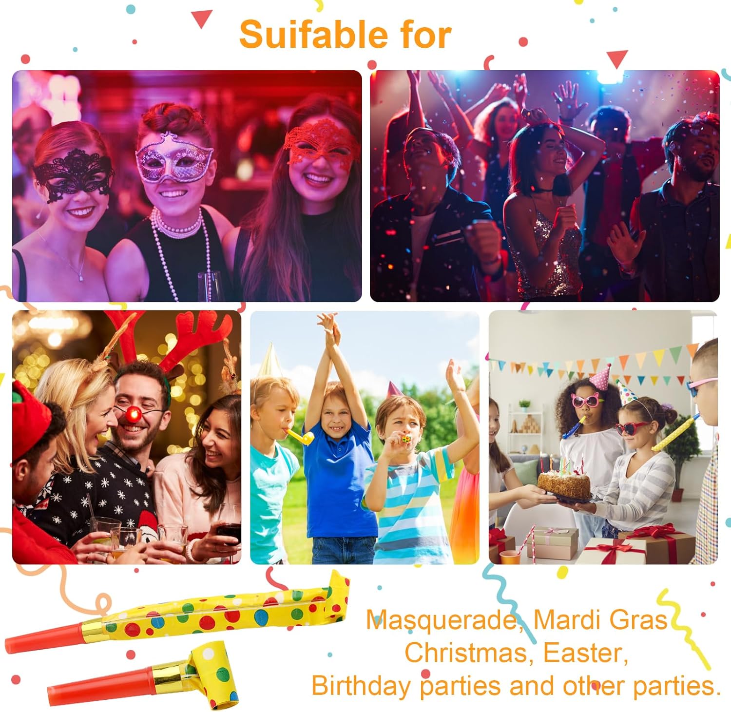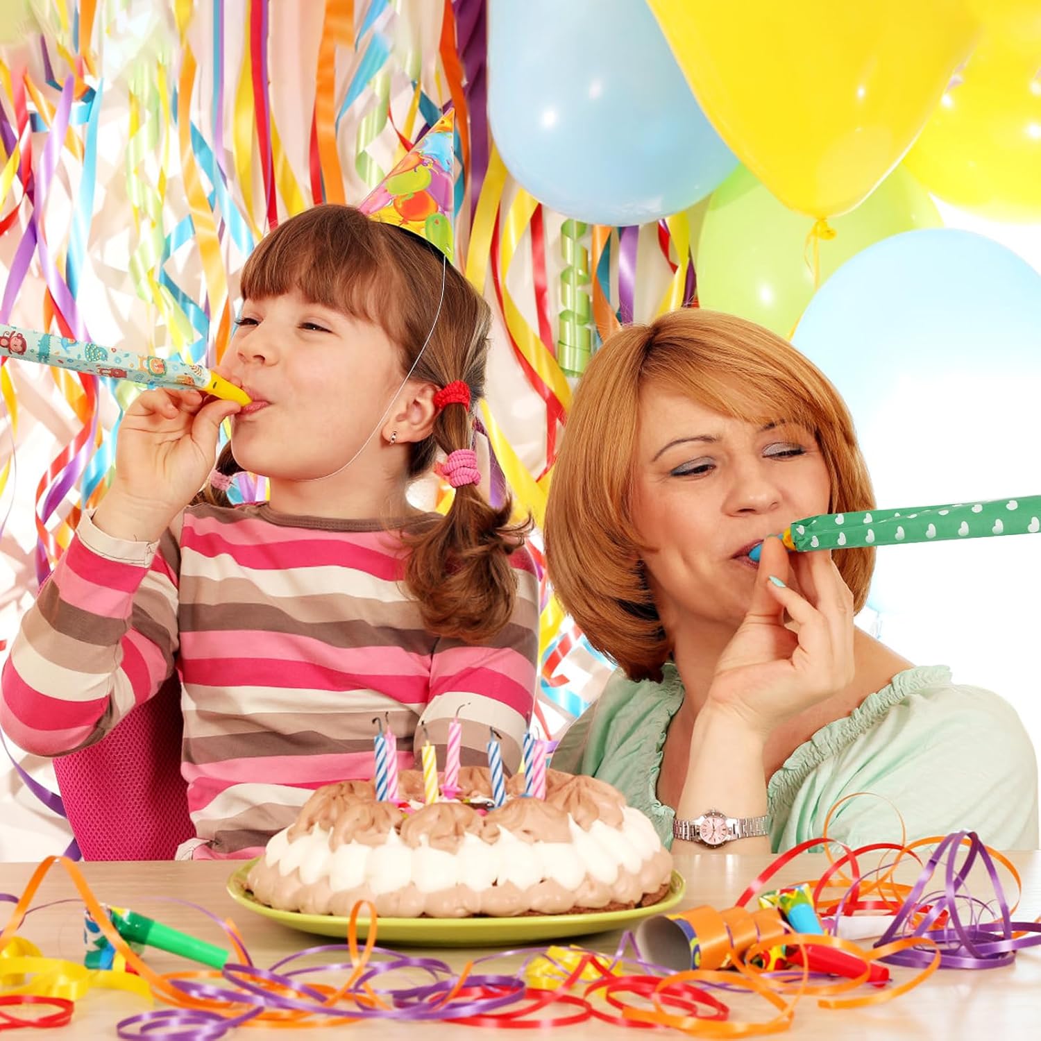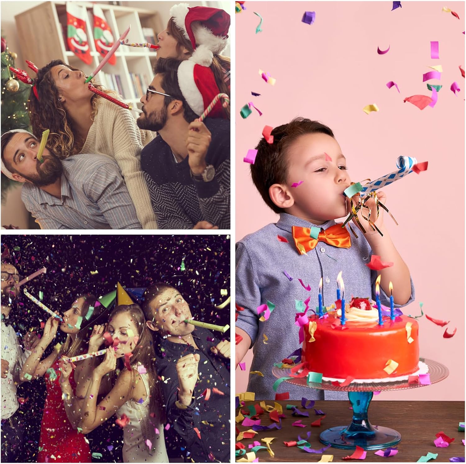 Materiali ecologici: le feste sono realizzate in plastica ecologica con apertura liscia, soffia forte per ascoltare il suono, il tubo telescopico è realizzato in carta e filo, il materiale è atossico e innocuo, colore casuale, durevole e riutilizzabile e sicuro da usare. Caratteristiche: quando fischiate con il trombo, la parte arrotolata si espande immediatamente e rimbalza automaticamente. È interessante e facile da giocare. Colori brillanti, illuminano il tempo festivo ed emozionante della festa. La coda allungata liberamente e l'aspetto colorato possono facilmente attirare l'attenzione dei bambini. 【Dimensioni】 Cappelli da festa, fischietto retrattile, lunghezza retrattile 17 cm, taglia media, molto adatti per i bambini. Compresi 20 pezzi Party Blowers Noisemakers assicura che ci siano sempre abbastanza ventole alla festa. 【Party Whistle Blower】 - Divertente accessorio per feste e articoli per feste per bambini e adulti, facile da usare, porta risate e gioia. Questi oggetti di scena esultanti fanno entrare la festa in anticipo nella fase di ripresa, divertente e attraente. Puoi decorare una festa attiva e condividerla con gli amici. Ampia gamma di applicazioni: adatto per tutti i tipi di feste e occasioni, come matrimoni, compleanni, baby shower, addii al nubilato, lauree, Natale, Halloween e molto altro ancora, per aggiungere colore e divertimento alla festa.