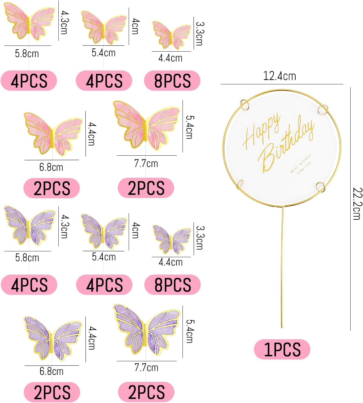 【Contenuto del prodotto】Ricevi 20 inserti per biglietti d'auguri a forma di farfalla, tra cui 2 confezioni con toppers per torta a forma di farfalla a tema oro e 1 toppers per torta in acrilico in ferro battuto. La decorazione a farfalla placcata in oro misura 15 x 20 cm e i colori sono rosa e viola; Il topper per torta in ferro acrilico misura 22 x 12,4 cm e i colori sono oro, adatto per feste di compleanno e decorazioni per torte. 【Materiale del prodotto】 Questo prodotto è realizzato in carta e acrilico per garantirne durata e praticità. I materiali cartacei sono leggeri e facili da usare, mentre i materiali acrilici aggiungono bellezza e qualità alle decorazioni per renderle più attraenti durante le feste. 【Design creativo】 Il design di questo inserto per biglietti d'auguri è unico e contiene graziosi motivi di animali e disegni dorati per dare divertimento e colore alla tua festa di compleanno. La decorazione rotonda in acrilico in ferro battuto è squisita e dona alla torta una sensazione di nobiltà e eleganza. Facile da usare: questi inserti per biglietti d'auguri sono facili da usare. Aggiungi semplicemente il posizionamento della torta o della decorazione della festa. Il design leggero lo rende facile da trasportare e posizionare per risparmiare tempo di preparazione e concentrarsi sul godersi la festa. 【Ampio】 Questo prodotto non è adatto solo per feste di compleanno, ma anche per varie celebrazioni come la luna piena del bambino, feste di matrimonio e feste festive. Il design e la vasta scelta di colori lo rendono una decorazione ideale per ogni occasione.