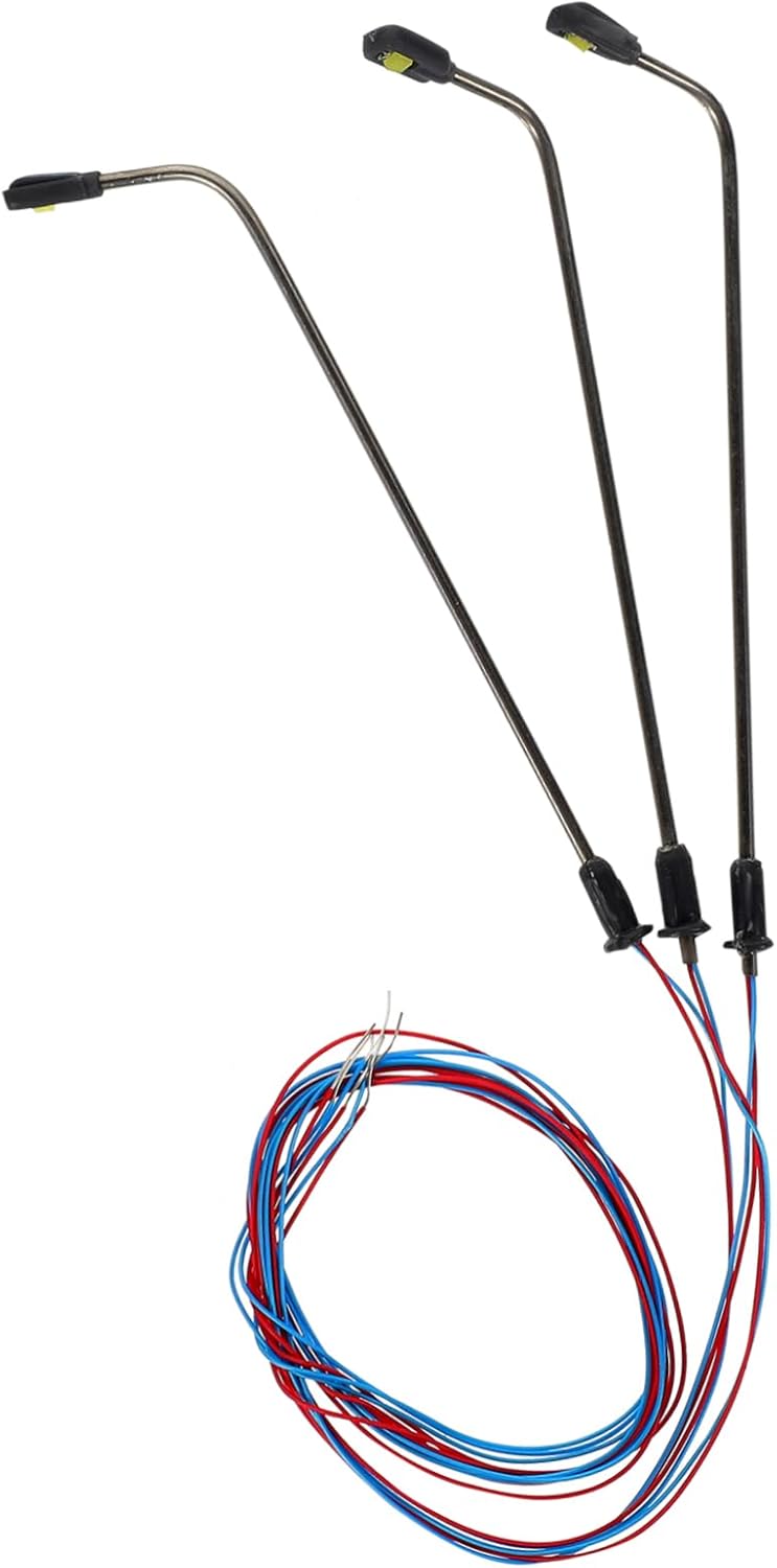 Luce stradale a LED con resistori: questo modello di lampione stradale in scala N ferroviaria presenta un design a testa singola con illuminazione a LED bianca. È realizzato con LED e viene fornito completo di fili e LED, che consentono di accenderlo facilmente. Ampia compatibilità di tensione: adatto per tensioni di alimentazione che vanno da 3 V a 12 V, questo lampione richiede un resistore se utilizzato con 12 V o 16 V per evitare potenziali danni al LED. Costruzione: realizzato in ABS e materiali metallici, questo lampione è costruito per durare. In piedi ad un'altezza di 8 cm, è perfetto per la disposizione degli edifici e aggiunge un tocco realistico al tuo modellino ferroviario o altri progetti di diorama. Applicazione: ideale per vari scopi come costruire accessori per modelli di tavoli di sabbia, decorazione da giardino, materiali per modellini di scena, intrattenimento, muschio, Xue Wei, materiali per bottiglie ecologiche paesaggistiche, parco, treno, modello fai da te e molto altro ancora.