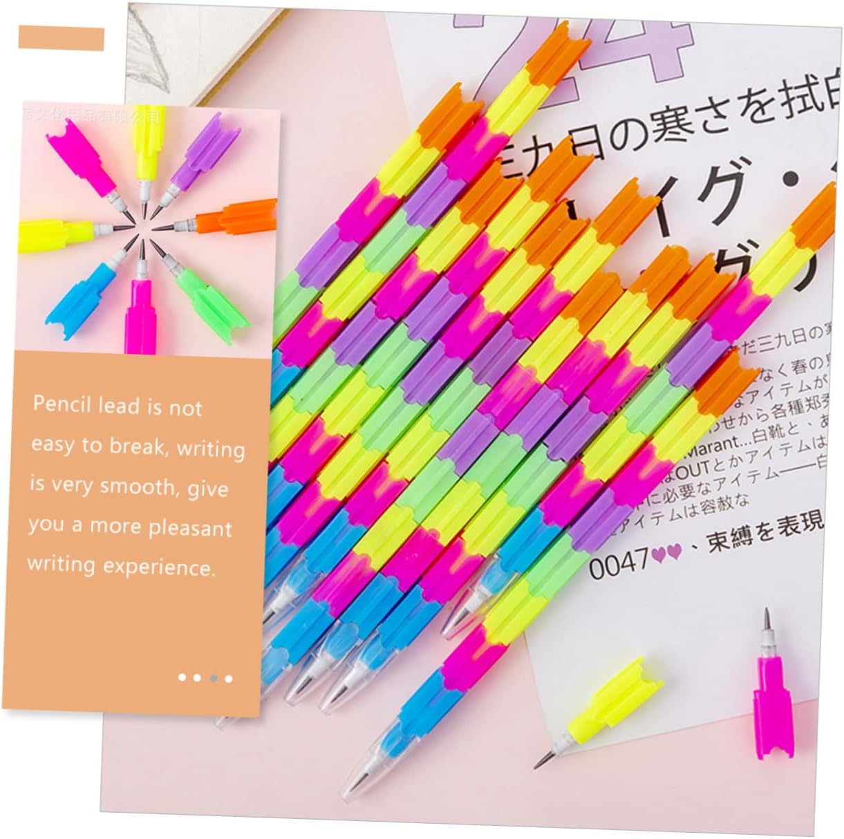 Le matite creative attireranno l'attenzione, offrono una sensazione di scrittura liscia e un'esperienza di scrittura confortevole. Le matite impilabili possono fornire una scrittura super liscia e un'esperienza di scrittura rilassante. Porta grande divertimento e l'entusiasmo dell'apprendimento. I pennini affilati possono scrivere direttamente senza intoppi, eliminando il processo di utilizzo di un temperamatite e risparmiando più tempo per studiare e lavorare. La lavorazione eccellente e i dettagli raffinati ne garantiscono popolarità e durata.