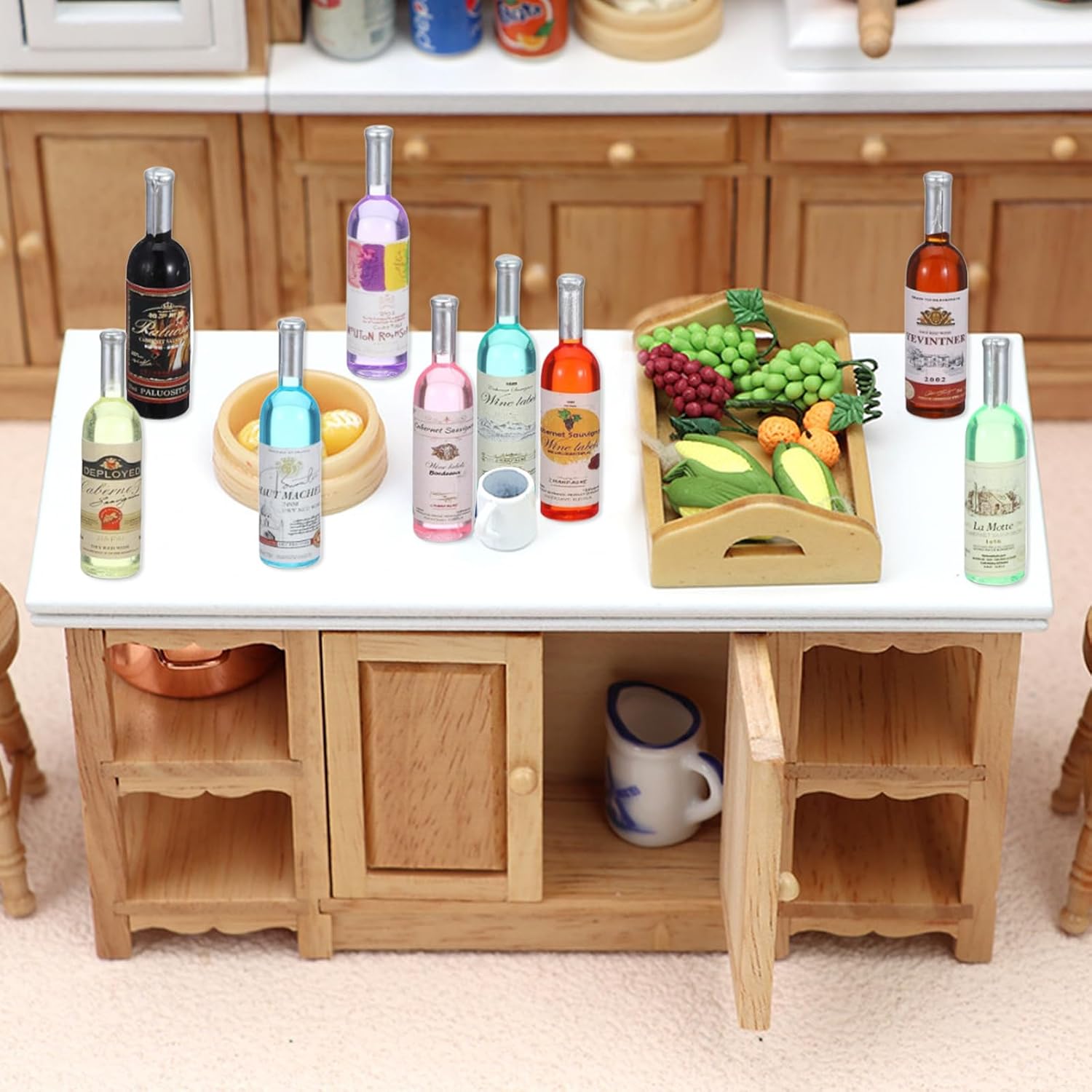 Contenuto della confezione: riceverai 20 pezzi di design realistico con un modello di bottiglie di vino di ottima fattura. È sufficiente per soddisfare le vostre esigenze di abbinamento con artigianato in miniatura per decorare una casa delle bambole, dandoti facilmente un piacevole piacere visivo. Design delicato: queste mini bottiglie di vino adottano un design accurato e colori vivaci, è una mini decorazione per casa delle bambole molto realistica, abbinarle ad altre belle decorazioni da cucina è una scelta raffinata, può portare un'atmosfera divertente alla tua casa delle bambole. Dettagli sulle taglie: la dimensione di ogni mini bottiglia di vino per casa delle bambole è di circa 4,8 x 1,1 x 1,1 cm, modello di bottiglia di vino rosso in scala 1:12, adatta per la casa delle bambole, fornendo un bel effetto decorativo, in modo da rimarne affascinato. Ampia gamma di usi: queste simpatiche mini bottiglie possono essere collocate in cucina della casa delle bambole o nel piccolo giardino all'aperto e possono anche essere esposte come vetrine per aggiungere fascino alla tua mini casa delle bambole. Particolarmente adatto per ambienti in miniatura come paesaggistica in vaso, casa delle bambole e decorazioni vegetali, che possono creare una scena di vita diversificata e rendere la tua casa delle bambole più completa. Regalo: gli accessori casa delle bambole in miniatura sembrano molto vivaci e carini. Sono regali creativi ideali per compagni di classe, amici e familiari a Natale, compleanni, Halloween e altri festival, in modo che possano divertirsi con il fai-da-te.