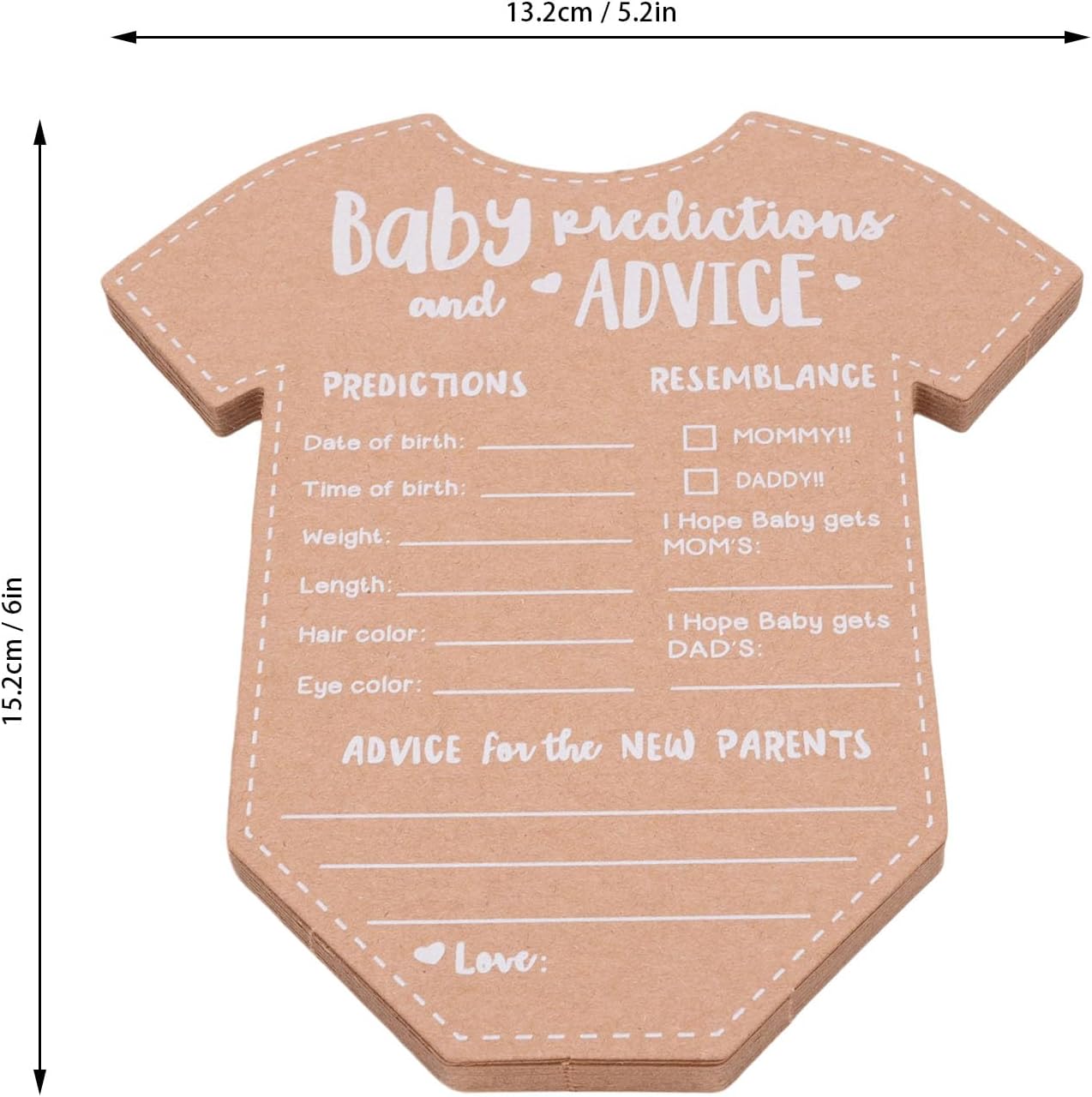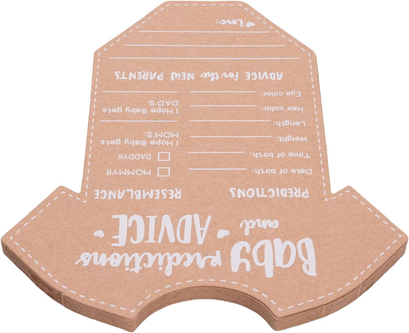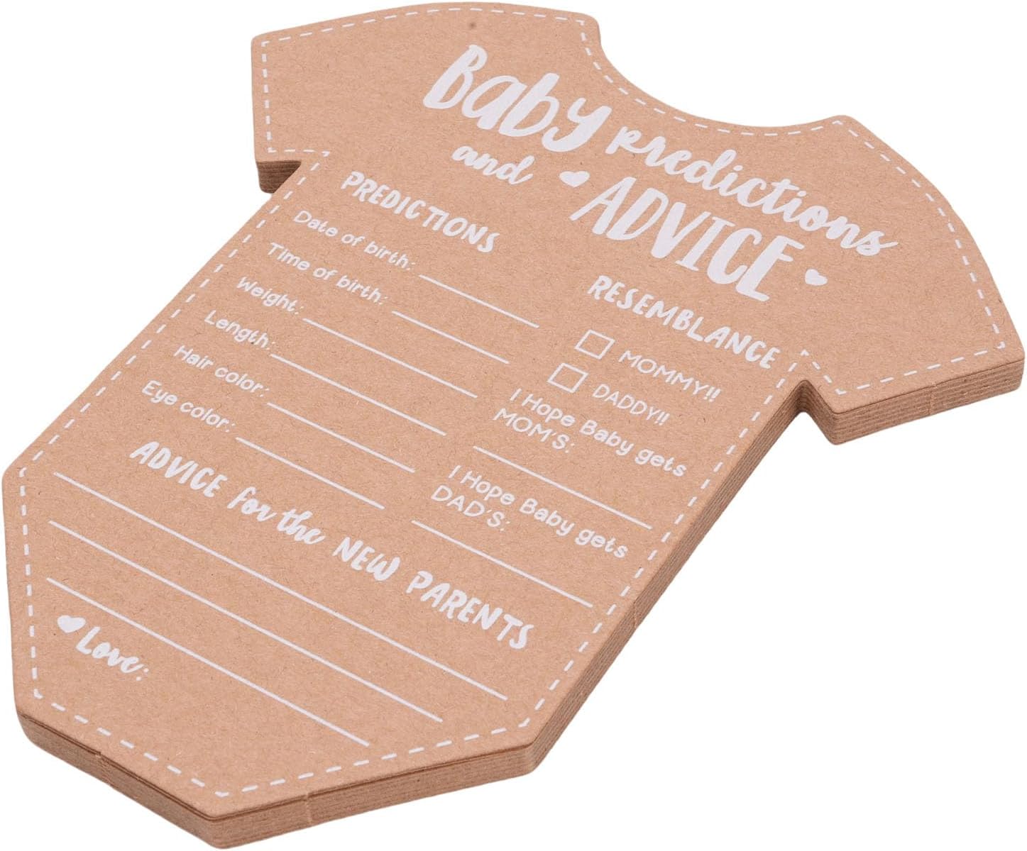 Carta kraft durevole e di alta qualità: le carte di consulenza e previsione del bambino sono realizzate con una carta kraft spessa e di alta qualità che impedisce l'inchiostro a sanguinare. Questo materiale durevole garantisce un'esperienza di scrittura regolare per gli ospiti e crea un ricordo duraturo che i nuovi genitori possono fare tesoro per molti anni come un bel ricordo del loro giorno speciale. Design adorabile e funzionale: un affascinante design a forma di tutina aggiunge un elemento divertente e visivamente accattivante alla tua celebrazione. Le carte offrono ampio spazio agli ospiti per scrivere le loro previsioni e i messaggi sinceri, rendendo queste decorazioni di carta Kraft sia un'aggiunta carina e pratica a qualsiasi festa di rivelazione di baby shower o genere che delizierà i tuoi ospiti. Attività coinvolgente e interattiva: queste carte di attività dei giochi per baby shower sono un ottimo modo per coinvolgere i tuoi ospiti e interagire tra loro. Il gioco di Fun Party per gli ospiti incoraggia tutti a condividere le loro intuizioni, consigli e auguri, rendendo l'evento più memorabile e creando una raccolta di messaggi sinceri per il divertimento dei genitori. Crea un ricordo memorabile: un set di carte ricordi memorabili è un modo meraviglioso per preservare i ricordi felici della tua celebrazione. Dopo la nascita del bambino, i nuovi genitori possono guardare indietro a queste nuove carte e previsioni di consulenza dei genitori, creando un viaggio sentimentale pieno di amore e risate condivise da amici e familiari man mano che la propria famiglia cresce. Versatile per le celebrazioni multiple: le forniture per feste di Gender Reveal sono una grande aggiunta a una varietà di eventi, dalle docce per bambini alle prime feste di compleanno. Le carte fungono sia da arredamento affascinante che da attività coinvolgente, migliorando l'atmosfera gioiosa fornendo al contempo un modo significativo agli ospiti di contribuire al futuro del bambino, rendendoli un accessorio per la festa molto versatile.