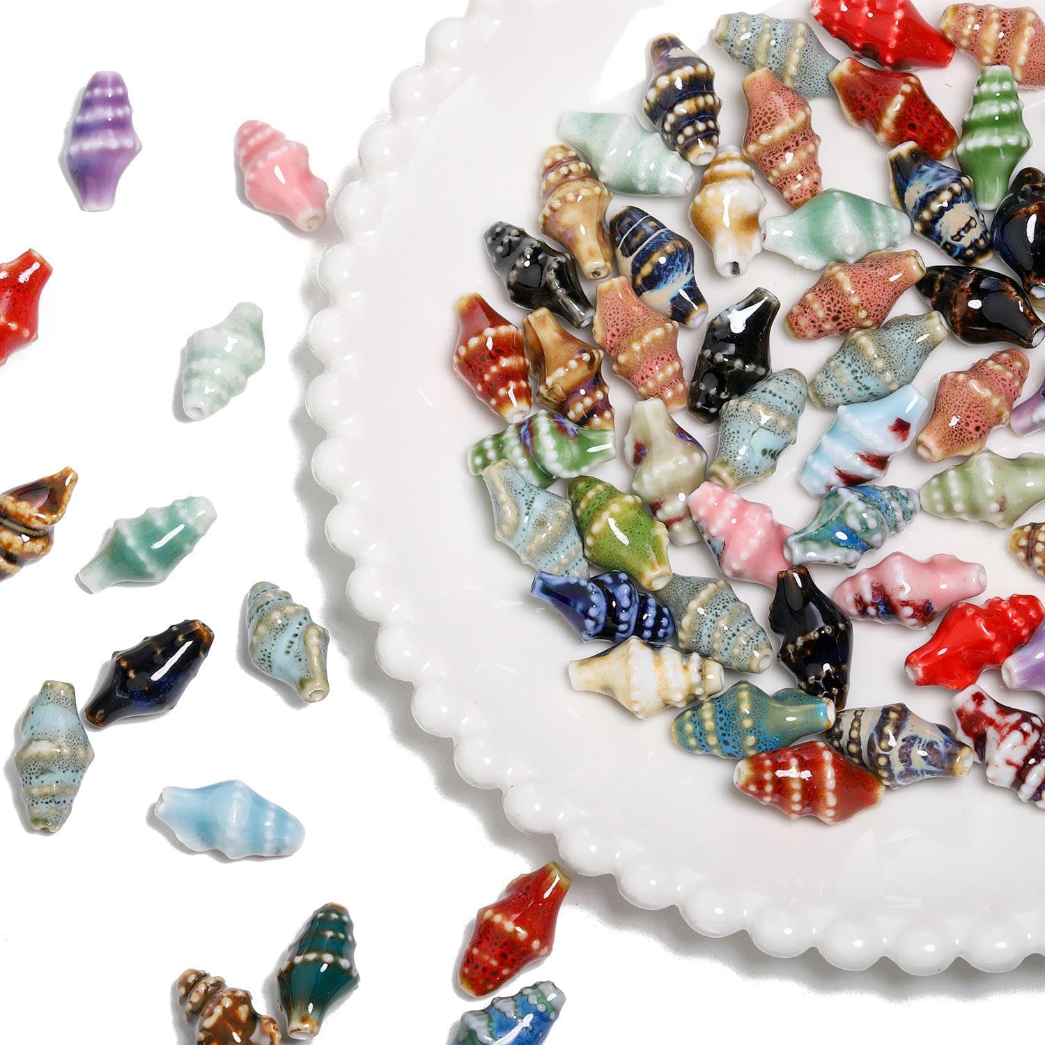 Perline di ceramica colorate a forma di conchiglia, dimensioni: 20x10 mm, diametro del foro: circa 2 mm, 20 pezzi/confezione Queste perle a forma di conchiglia sono realizzate in ceramica e smaltate a mano, hanno un aspetto liscio, non si rompono o sbiadiscono facilmente, sono comode da indossare e possono essere utilizzate a lungo Queste perline di ceramica sciolte con foro dritto sono perfette per l'uso con cordini di cuoio, corde di canapa, strisce di tessuto intrecciato e altri materiali di infilatura per arricchire le tue possibilità di design con perline Queste perle di ceramica colorate sono progettate a forma di conchiglie o gusci di lumaca, hanno un aspetto unico e sono perfette per le vacanze al mare Queste perle di ceramica a forma di conchiglia sono molto adatte per realizzare braccialetti, collane, orecchini, pendenti, portachiavi e vari lavori fai da te; puoi anche condividerli con gli amici a cui piacciono le perle fatte a mano