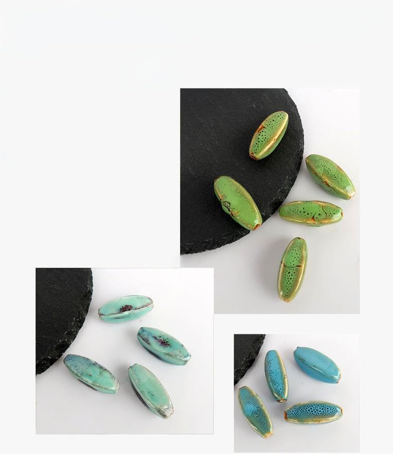 Perline ovali in ceramica smaltata, dimensioni perline: 37x14 mm, diametro foro: circa 3 mm, 20 pezzi/confezione Queste perle di ceramica sciolte sono dai colori vivaci e smaltate a mano, con texture superficiali chiare e uniche e un aspetto vintage Queste perle in porcellana smaltata sono realizzate in ceramica con una superficie liscia senza sbavature, una consistenza resistente, non facili da rompere e comode da indossare Queste perle ovali in porcellana sono dotate di comodi fori per l'infilatura e si abbinano magnificamente allo spago o al cordoncino intrecciato per creare bellissimi braccialetti o collane di perline Queste perle di porcellana smaltata sono versatili e perfette per realizzare braccialetti, collane, gioielli, pendenti e vari lavori artigianali fatti a mano