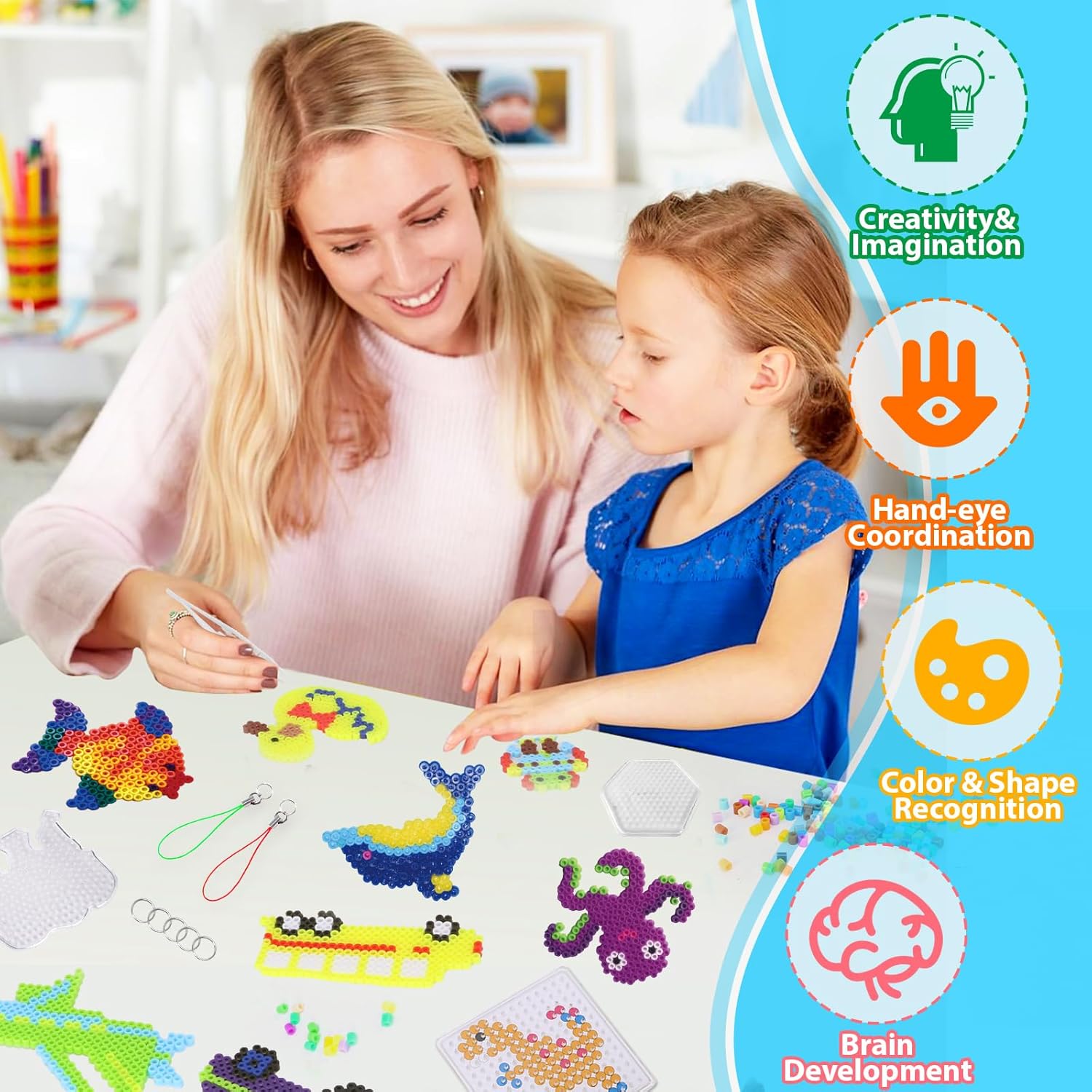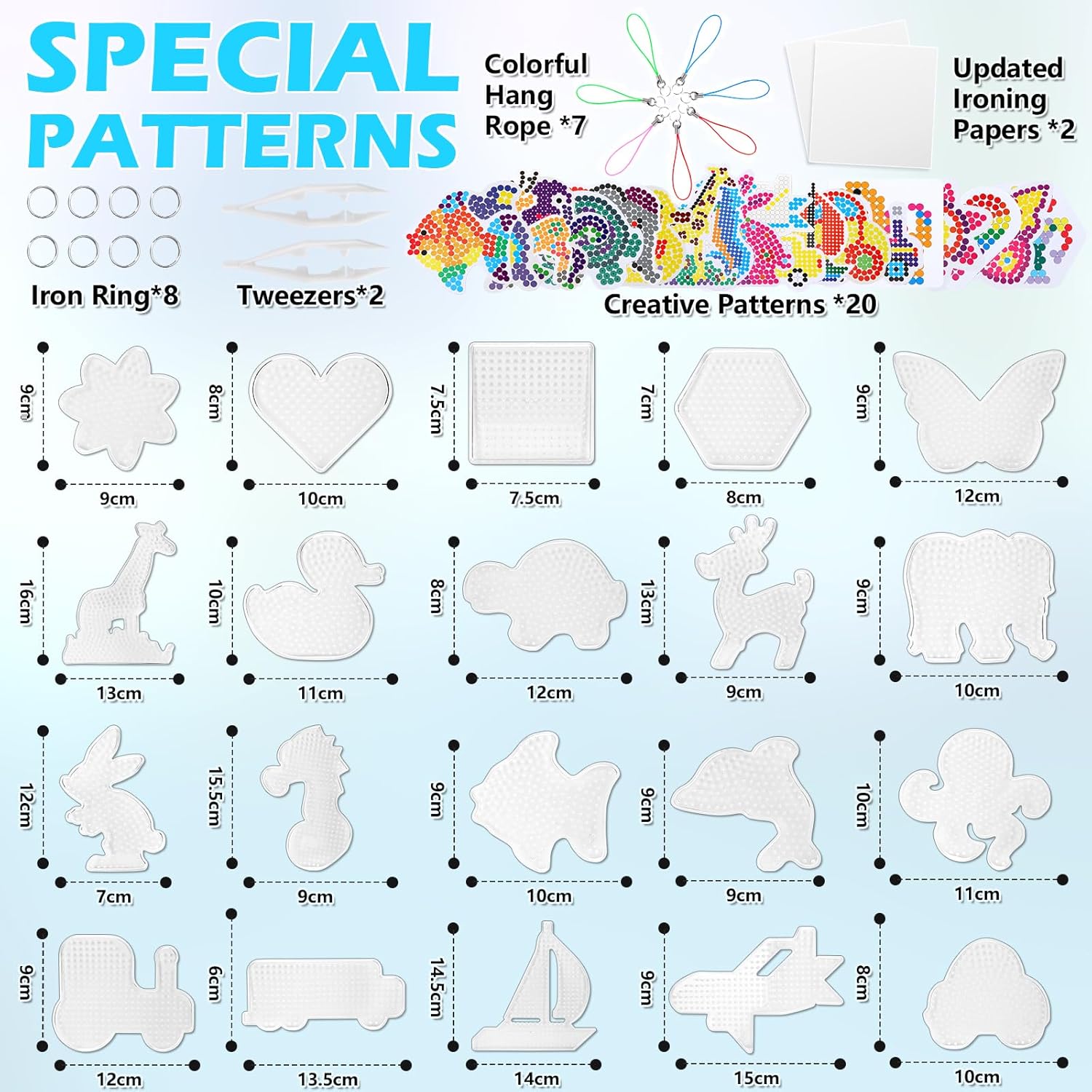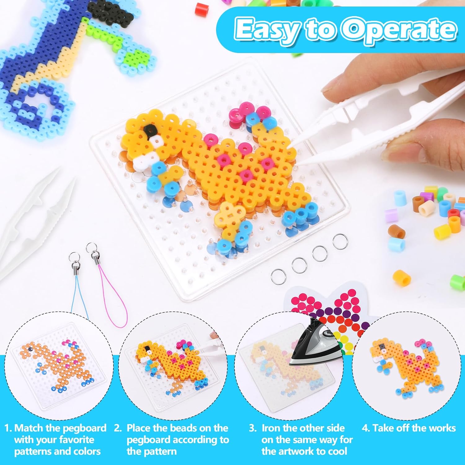 Materiali di alta qualità e sicuri Realizzati in plastica resistente e non tossica, i nostri supporti per perline fuse sono leggeri, robusti e sicuri per i bambini durante le sessioni di bricolage. Sono progettati per resistere a ore di divertimento creativo senza rompersi. Facile da usare per i bambini Le istruzioni semplici e passo-passo rendono questa attività accessibile ai bambini. Posiziona le perline sui supporti seguendo i modelli forniti, quindi fusele con un ferro da stiro per creare design colorati che aiutano a migliorare le abilità motorie e la creatività. Kit completo per il divertimento creativo Ogni set include 20 supporti sagomati e 20 modelli di design, offrendo una varietà di motivi divertenti come animali, auto e cuori. Perfetto per i bambini per esplorare diversi design e sviluppare le loro capacità artistiche. Regalo ideale per i bambini Che si tratti di un compleanno, una festa o un’attività divertente a casa, questo set di perline fuse è un regalo fantastico per bambini dai 3 anni in su. È un ottimo modo per trascorrere del tempo di qualità con i tuoi piccoli mentre incoraggi la loro creatività. Promuove lo sviluppo delle abilità Questo divertente kit fai-da-te aiuta i bambini a sviluppare una serie di abilità, tra cui la coordinazione mano-occhio, il riconoscimento dei colori, la risoluzione dei problemi e il pensiero creativo mentre creano bellissimi design personalizzati con le perline.