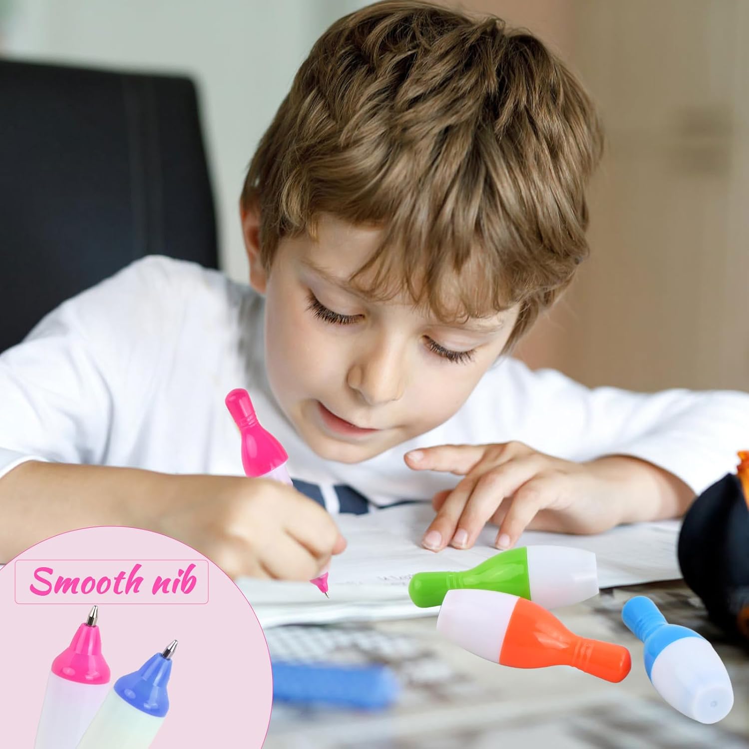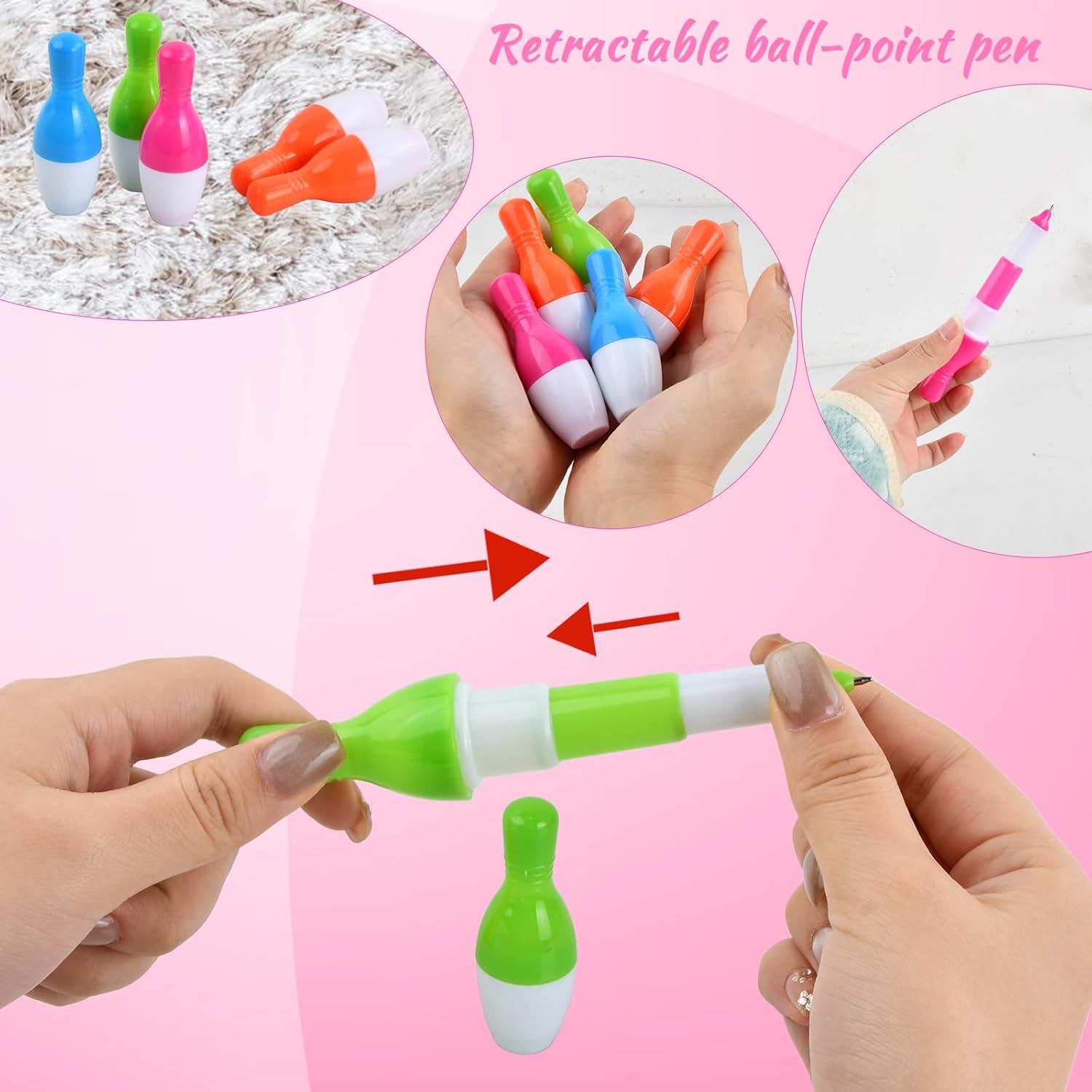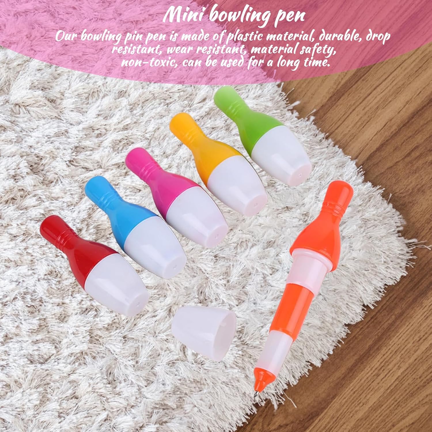 La confezione include: riceverai 20 penne a sfera retrattili a forma di birilli. La dimensione della penna a sfera retrattile è di 7-12 cm (2,75-4,72 pollici). Le mini penne a sfera sono disponibili in viola, blu, arancione, rosso, giallo e verde. L'inchiostro è blu. La punta è di 0,5 mm. Materiale di alta qualità: la simpatica penna a sfera è realizzata in un guscio di plastica di alta qualità, che è durevole e sicuro da usare a lungo. Questa mini penna a sfera è perfetta per l'uso quotidiano o come regalo o premio. Forma di palla da bowling: questa penna a sfera ha la forma di una palla da bowling e può essere utilizzata come ornamento o decorazione. La penna a sfera è retrattile ed è disponibile in una varietà di colori. Questa penna a sfera non è adatta solo a bambini e studenti, ma anche ad adulti. Ampiamente usato: puoi usare queste penne a sfera retrattili a forma di cartone animato in diverse occasioni, come casa, classe, ufficio, sala conferenze, biblioteca, ecc. Le penne a sfera possono essere regalate ai bambini. L'interessante design della palla da bowling può stimolare notevolmente il loro interesse per la scrittura. Facile da usare: questa penna a sfera è perfetta per l'uso quotidiano, puoi usarla per scrivere, disegnare e prendere appunti. L'inchiostro si asciuga rapidamente e non trasuda, offrendoti un'esperienza d'uso confortevole.