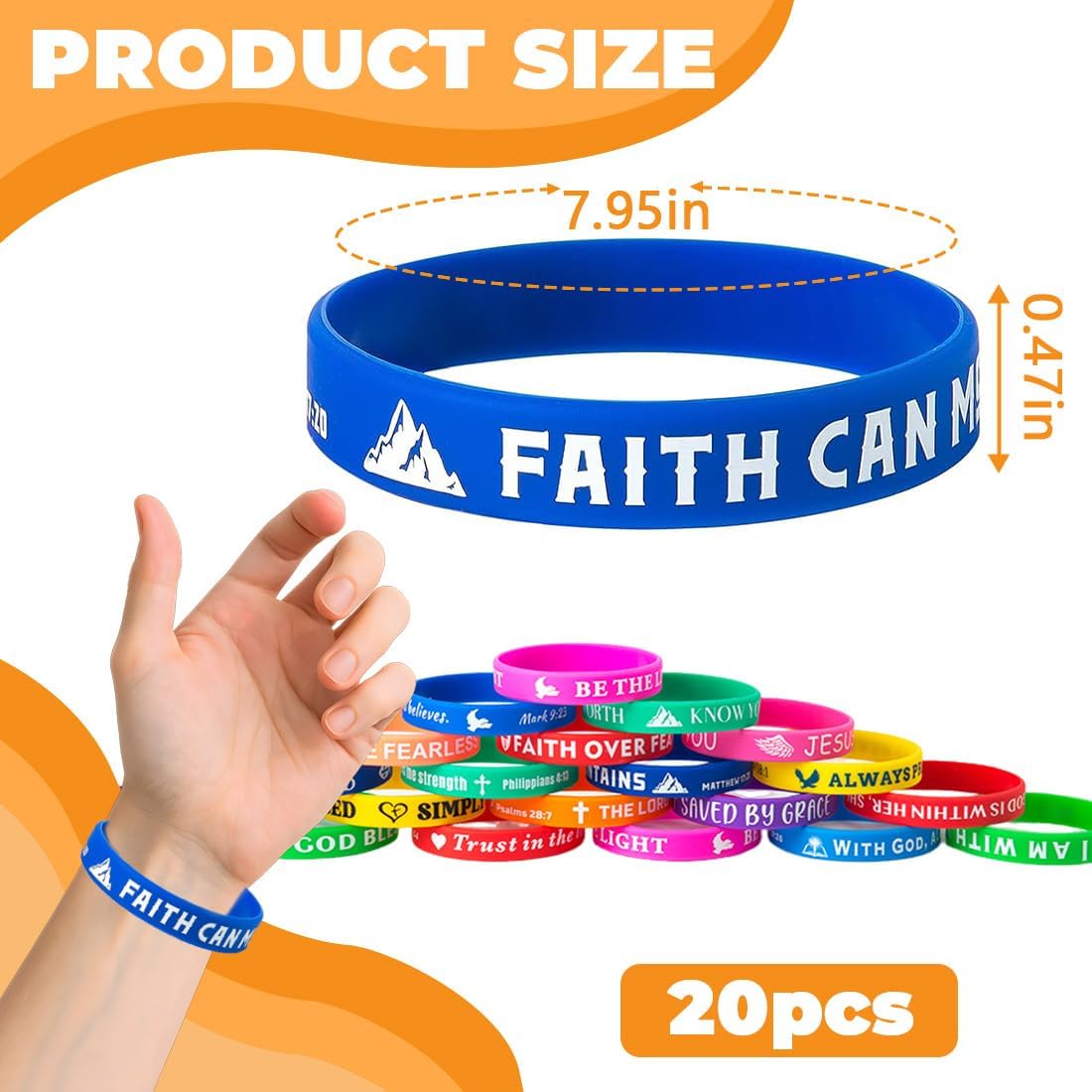 La confezione include: Riceverai 20 braccialetti religiosi in silicone in vari colori. Ogni braccialetto presenta queste citazioni ispiratrici, che trasmettono messaggi di amore, gentilezza e gratitudine. Materiale di alta qualità: I braccialetti in gomma sono realizzati in silicone di alta qualità. Ci ricordano di avere una fede salda in Dio! Dimensioni: 20 cm di lunghezza (20 cm di circonferenza x 1,2 cm di larghezza x 2,4 cm di spessore), 6,3 cm di diametro, 1 cm di larghezza. Questi braccialetti in silicone sono stampati con simboli religiosi e sono adatti a bambini dai 12 anni in su. Citazioni classiche: I braccialetti in silicone sono stampati con versetti classici della Bibbia. Regalo cristiano ideale: Questo braccialetto con versetti della Bibbia è perfetto per amici e familiari. È perfetto anche da indossare durante eventi religiosi per esprimere le proprie benedizioni e diffondere il Vangelo.