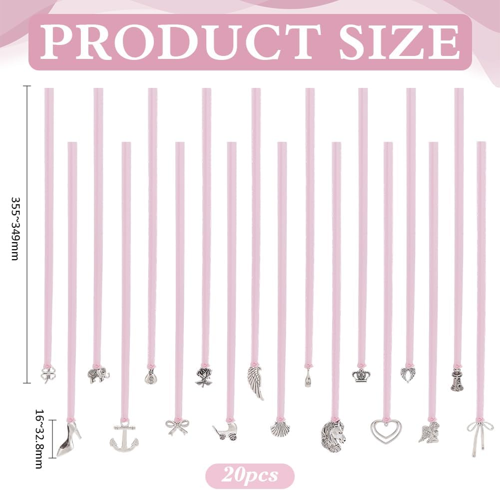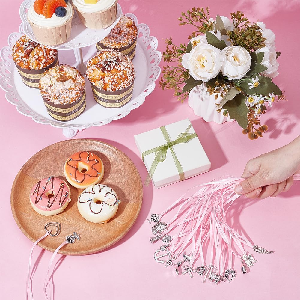 Design raffinato: il set da 20 pezzi contiene una varietà di bellissime forme di ciondoli, tra cui angeli, cuori d'amore, fiocchi, conchiglie, corone, fiori, bottiglie di vino, torri, ecc., con fiocchi rosa, conferiscono alla torta strati e vivacità, attirano immediatamente l'attenzione Contenuto della confezione: riceverete un totale di 20 manigliette per torte con diversi design. La dimensione è di circa 355 ~ 349 mm di lunghezza, ciondolo: 16 ~ 32,8 mm, stili ricchi che soddisfano le vostre diverse esigenze di decorazione, le decorazioni per torte saranno l'argomento di conversazione della festa Materiali di alta qualità: il nastro per torte è realizzato in lega, forte e durevole, non facile da sbiadire e deformare, adatto per un uso a lungo termine, buona lavorazione, la forma carina e la qualità robusta garantiscono un aspetto accattivante, migliora l'estetica della tua torta Facile da usare: il design dei nostri cavatappi a nastro è semplice e facile da usare quando è in uso, basta inserire l'estremità inferiore del cordoncino sotto la torta, e gli ospiti possono tirare la barretta per torte, creare un divertente elemento interattivo per la vostra occasione e aumentare il divertimento di interazione Ampiamente utilizzato: oltre alla decorazione di torte di compleanno, può essere utilizzato anche come decorazione da tavolo da dessert o come decorazione per souvenir per feste, migliora immediatamente la dolce atmosfera della festa, è adatto per feste di compleanno, incontri con amici, feste a tema, per aggiungere un'atmosfera festosa