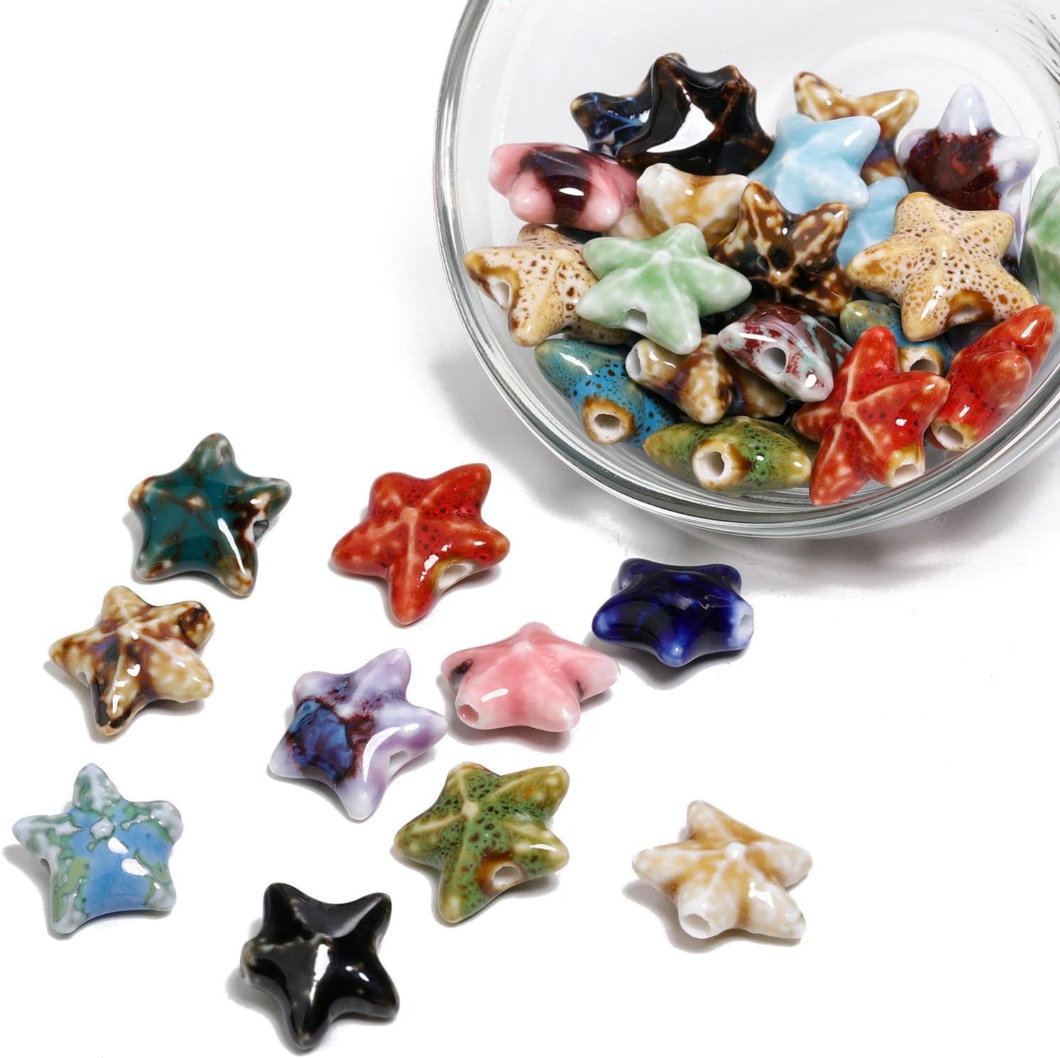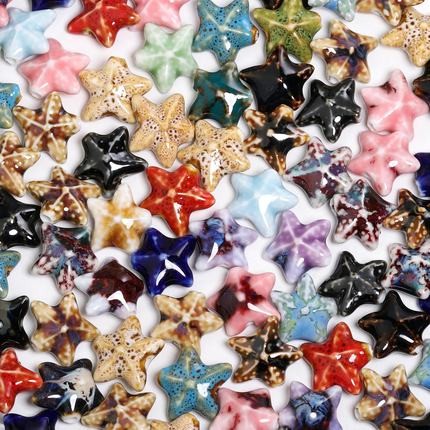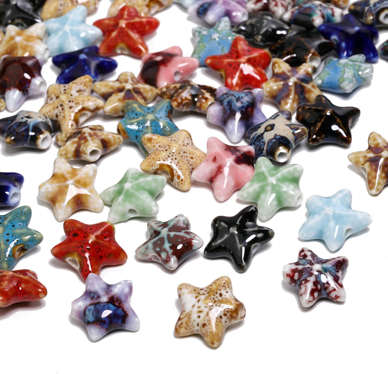 Perline sfuse in ceramica smaltata a forma di stella marina, dimensioni: 16 mm, diametro del foro: circa 2 mm, colori misti, 20 pezzi/confezione Queste perle di porcellana a forma di stella marina fatte a mano sono realizzate in ceramica, hanno un aspetto liscio, non si rompono o sbiadiscono facilmente, sono comode da indossare e possono essere utilizzate a lungo Queste perline sfuse in ceramica a forma di stella marina sono perfette per essere utilizzate con cordini in pelle, corde di canapa, strisce di tessuto intrecciato e altri materiali per perline per arricchire le tue possibilità di design con perline Queste perle di ceramica colorate sono progettate a forma di stella marina, con colori intensi e un aspetto unico, perfette per braccialetti di perline per una vacanza al mare Queste graziose perline artigianali a forma di stella marina in porcellana sono perfette per realizzare braccialetti, collane, orecchini, ciondoli, portachiavi e vari lavori fai da te