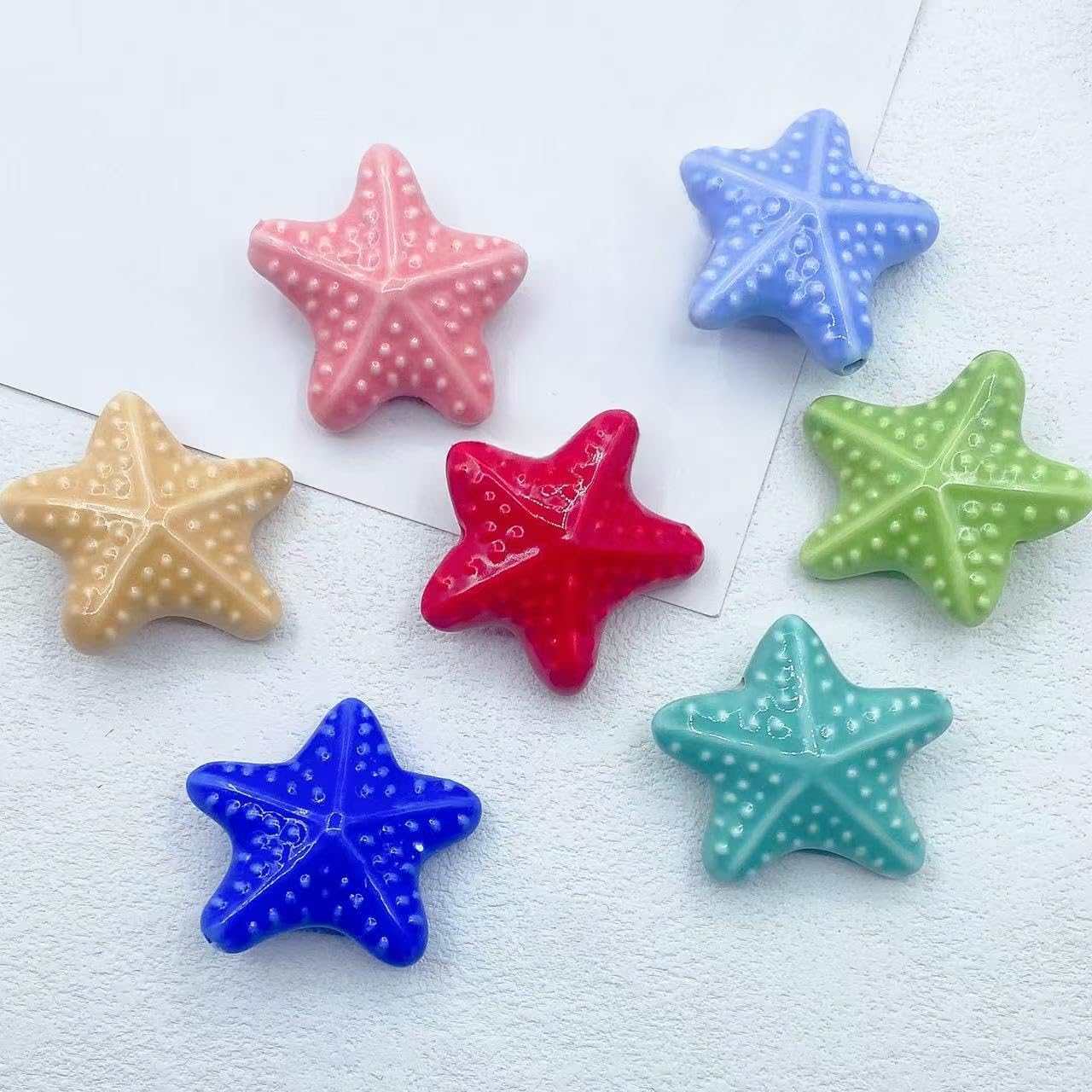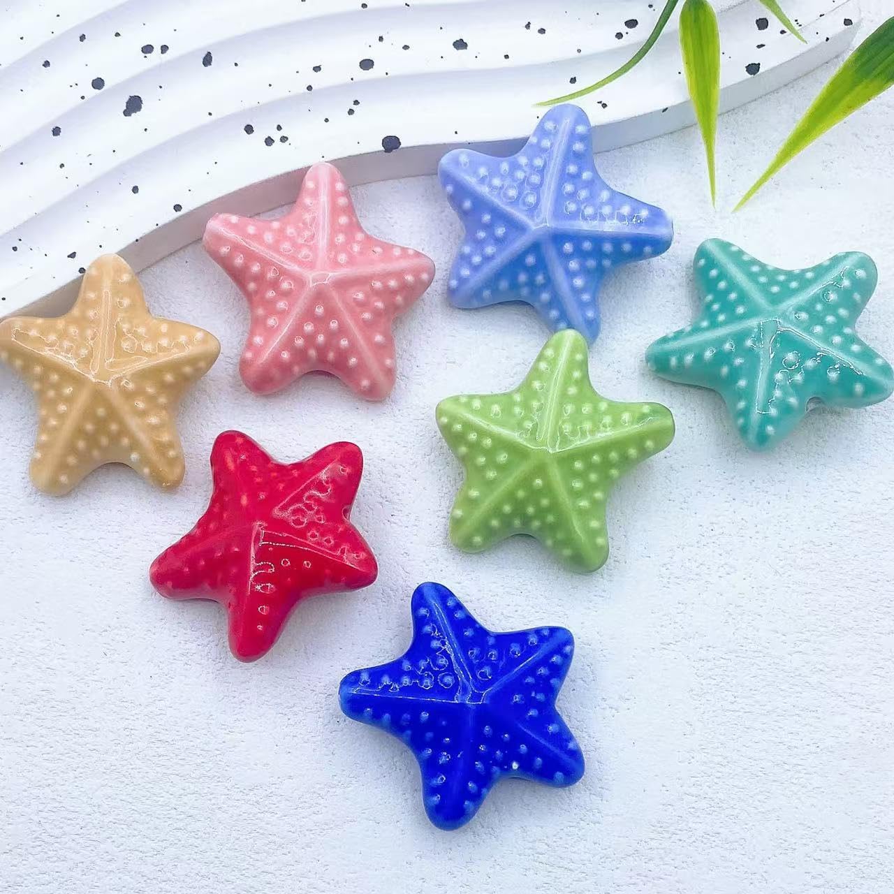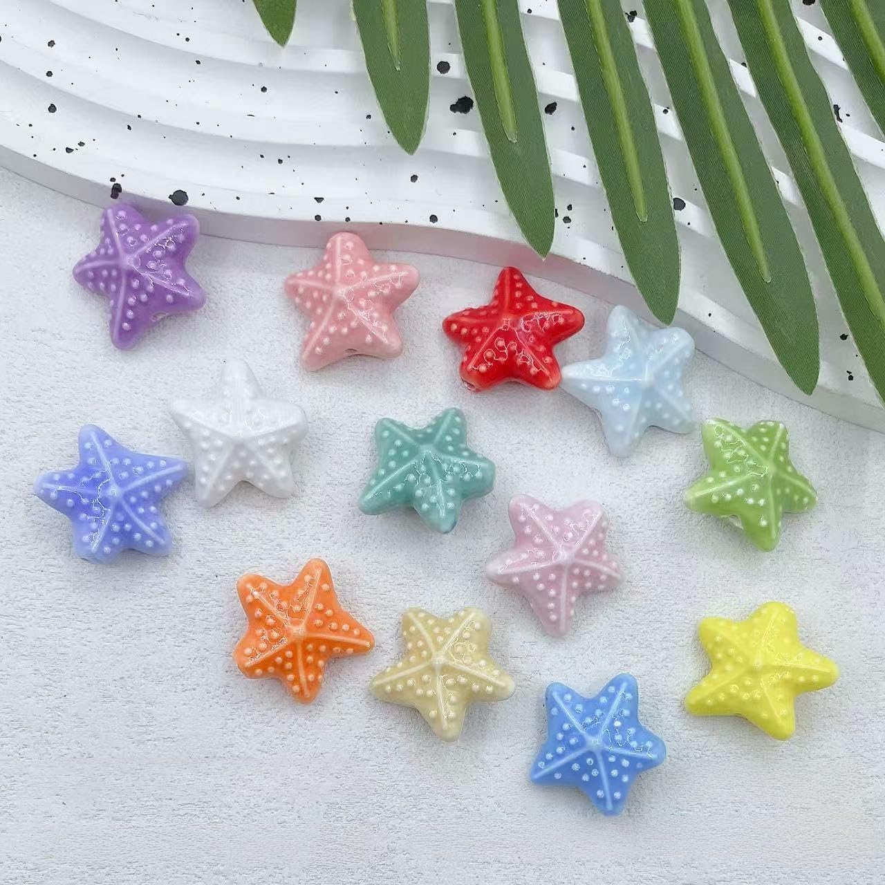 Perline di ceramica smaltate colorate a forma di stella marina, dimensioni: 21 mm, diametro del foro: circa 2 mm, 15 colori, 20 pezzi/confezione Queste perle di porcellana a forma di stella marina fatte a mano sono realizzate in ceramica, con un aspetto liscio, non facili da rompere o sbiadire, comode da indossare e possono essere utilizzate a lungo Queste perline di ceramica a forma di stella marina sono perfette per essere utilizzate con cordini di cuoio, corde di canapa, strisce di tessuto intrecciato e altri materiali per perline per arricchire le tue possibilità di design con perline. Queste perle di ceramica colorate sono progettate a forma di stella marina, con colori intensi e un aspetto unico, perfette per braccialetti di perline per una vacanza al mare Queste graziose perline artigianali a forma di stella marina in porcellana sono perfette per realizzare braccialetti, collane, orecchini, pendenti, portachiavi e vari lavori fai da te