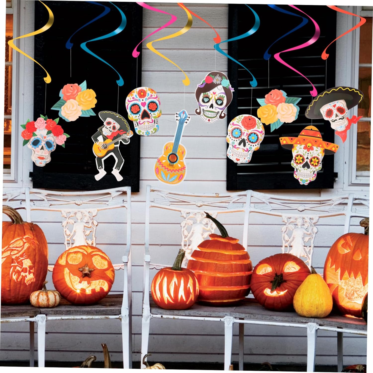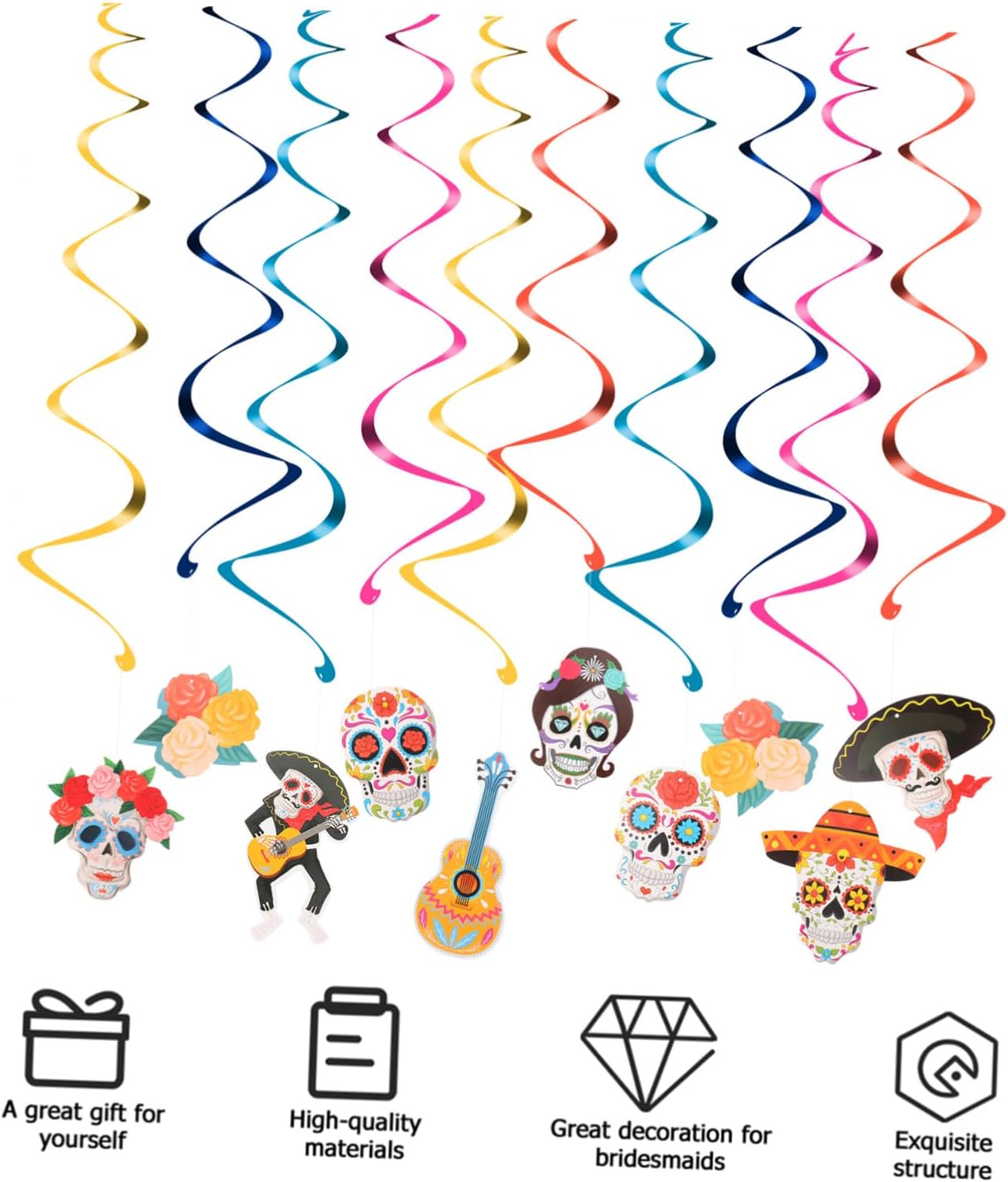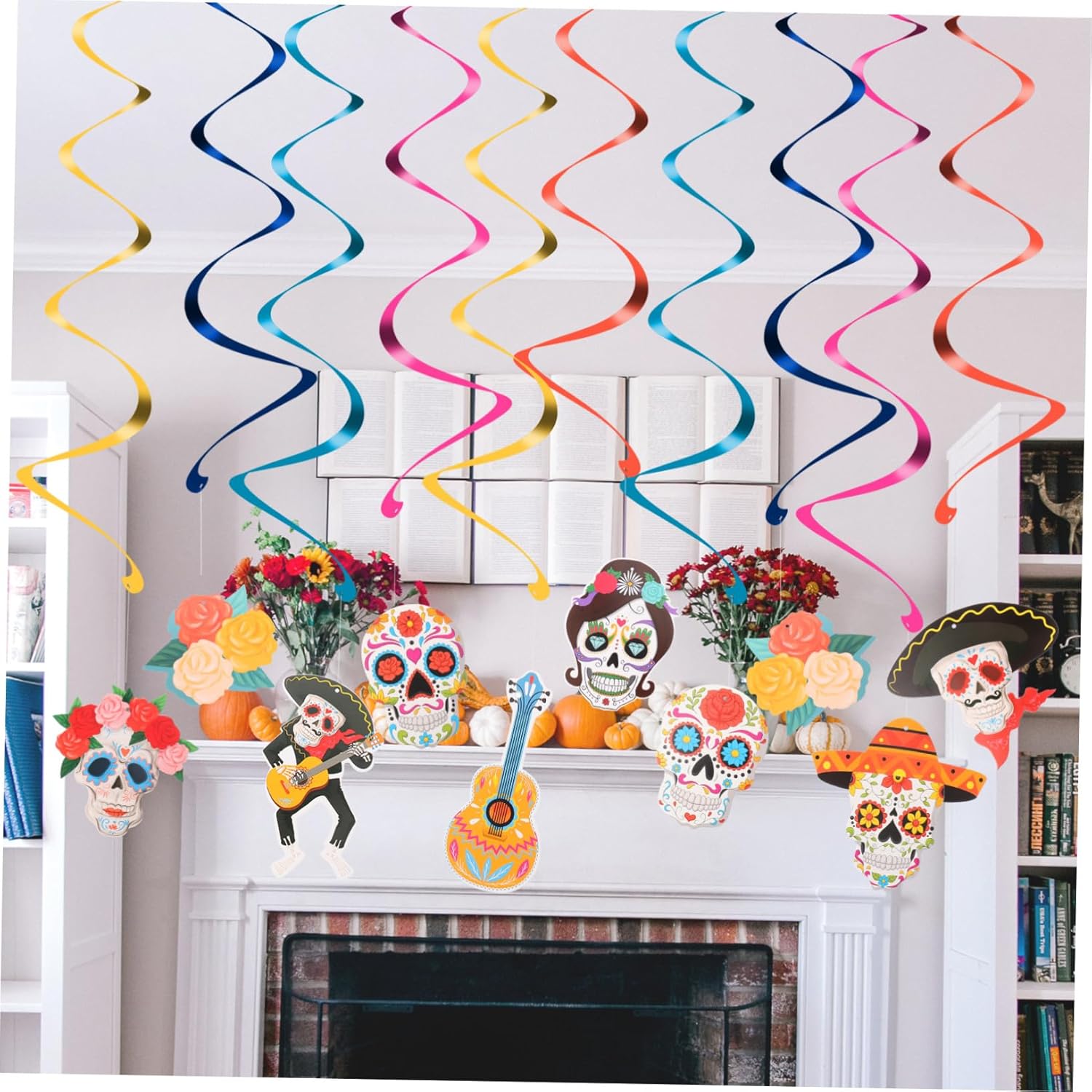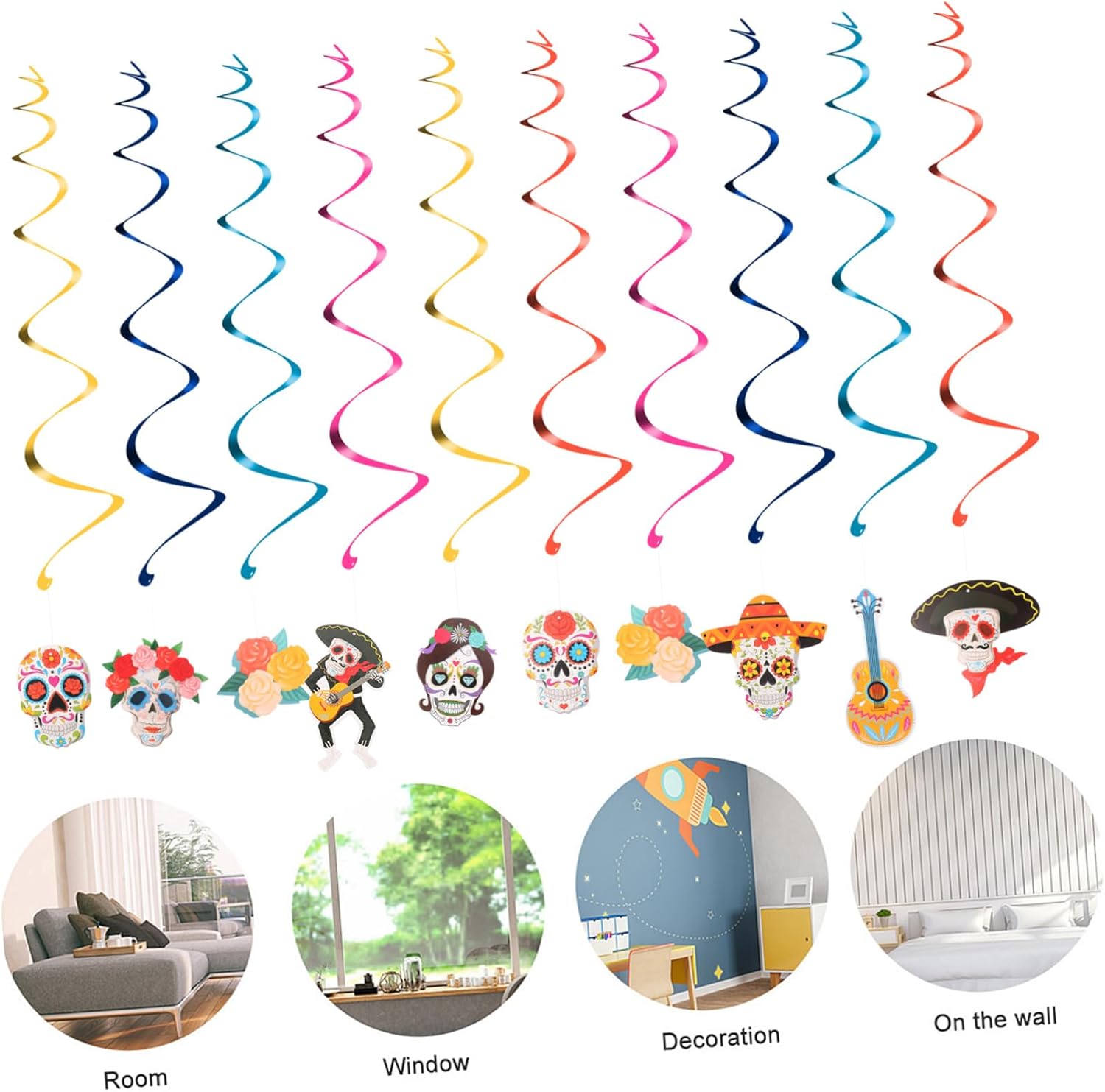 Ciondolo a spirale - rivestimento per torta di compleanno, decorazioni a spirale sospese, articoli per feste Ciondolo del dei morti: design a spirale di colori con taglio preciso e impeccabile, ciondolo per festa messicana A goccia: il design umanizzato lo rende facile e da usare, decorazione da appendere per feste a tema Da appendere: per le feste, in per i giorni della morte o altre celebrazioni, decorazione da appendere per feste a tema Da appendere per il dei morti messicano: il a scheletro morto migliora l'atmosfera della festa, decorazione da appendere per feste a tema
