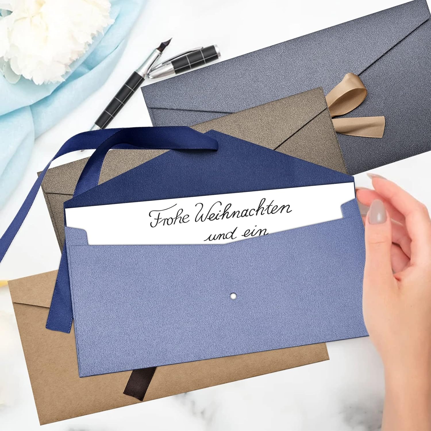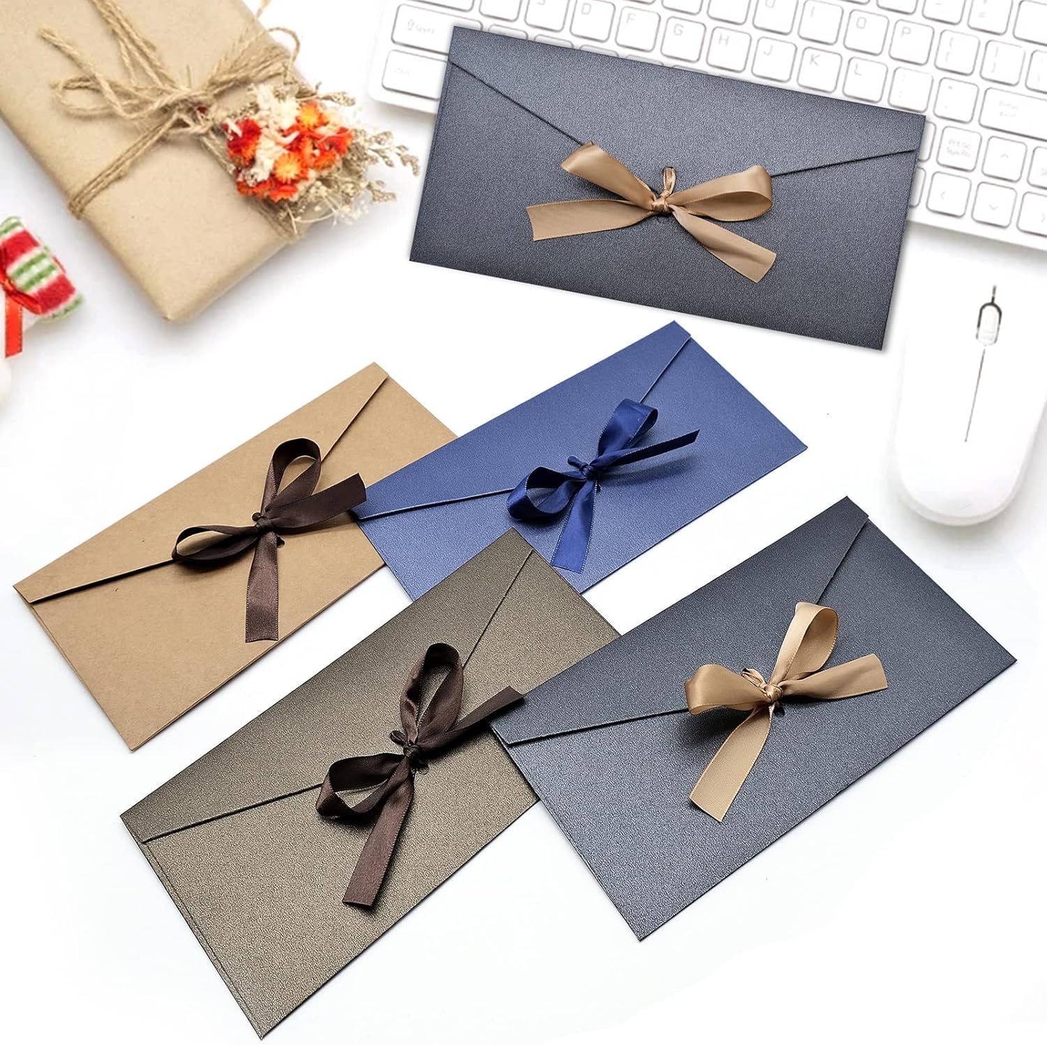 La confezione include: 20 buste boutique sono 4 colori diversi, 5 pezzi per ogni colore, ogni dimensione è di 8,66 x 4,25 pollici, adatte per la maggior parte delle carte da scrittura e biglietti di auguri. Materiale di alta qualità: le buste business sono realizzate in carta perlata, forte e spessa, non facile da rompere o deformare, la superficie è molto liscia e madreperla, l'aspetto è più raffinato. Stile commerciale: le buste per biglietti regalo hanno un colore freddo che conferisce loro un aspetto elegante ed elegante. Sono ideali per inviare buoni regalo e biglietti di auguri a partner di cooperazione e clienti in vari festival. Nastro colorato: ogni busta viene fornita con un nastro, è possibile legare un nodo per chiuderla, non è necessario chiuderla con colla o nastro adesivo, il che è pratico e bello. Ampia applicazione: le buste sono perfette per biglietti di Natale, inviti di compleanno, biglietti di auguri per festival, lettere del Ringraziamento, biglietti per le vacanze, biglietti da visita e regali di Capodanno.