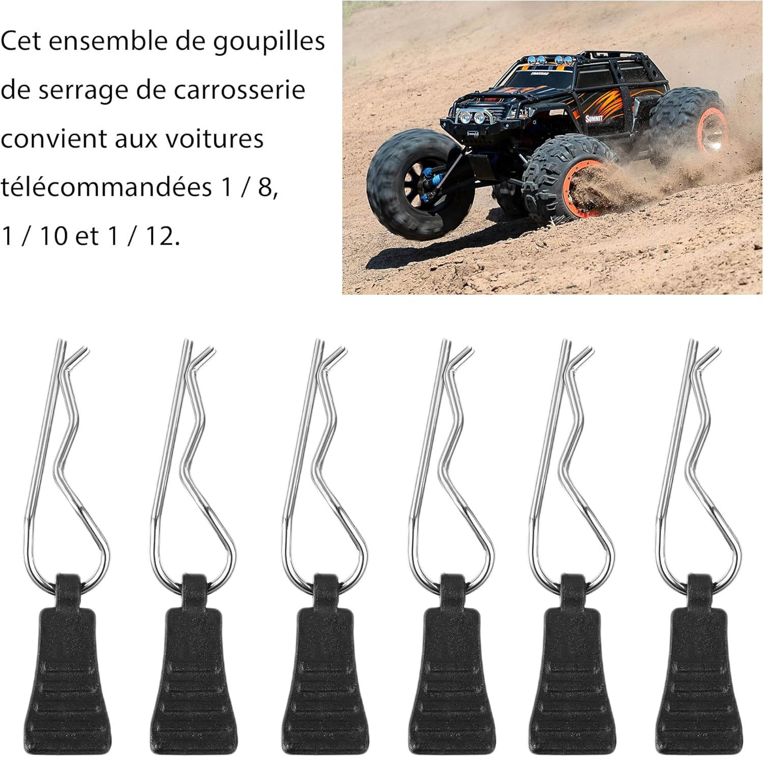 Massima qualità: i nostri perni a clip per auto RC sono realizzati in lega di alluminio di alta qualità e acciaio, che conferiscono loro una lunga durata. Potete essere certi che possono essere utilizzati a lungo senza sacrificare la qualità. AMPIA APPLICAZIONE: i perni RC clip sono dotati di buona compatibilità e sono adatti per 1/10, 1/12 e 1/16 RC Auto Shells. Sono versatili e si adattano a diversi modelli. Facile da usare: i nostri morsetti per carrozzeria RC sono facili da installare, senza operazioni complicate. Sono pratici e utili per mantenere la carrozzeria saldamente in posizione. Accessori ideali: le clip per il corpo RC sono una parte importante o un accessorio per auto telecomandate. Sono perfetti per sostituire le parti mancanti e fissare saldamente la carrozzeria. Quantità sufficiente: la confezione contiene 20 clip di tipo R, che sono sufficienti per la sostituzione e l'uso. Ottieni un ottimo rapporto qualità/prezzo e hai abbastanza clip a portata di mano per soddisfare le tue esigenze.