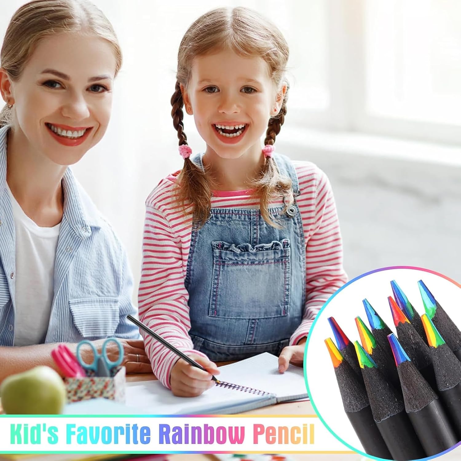 Materiali di Alta Qualità: Matite colorate è realizzato in legno nero naturale, solido e finemente lucidato per una finitura liscia e delicata. Si adatta alle curve della mano ed è comodo da impugnare. Le colori a matita sono disponibili con mina in 7 colori, ciascuno con una durezza moderata, un colore vibrante e duraturo e un'applicazione fluida e uniforme che resiste alla rottura. Confezione: Riceverai 20 matite colori per bambini, ciascuna contenente una miscela di sette colori. Questa è una quantità sufficiente, con colori vivaci e chiari per soddisfare una varietà di esigenze di disegno. Le colori matita hanno una mina più spessa da 0,5 cm di diametro, che le rende resistenti e resistenti alla rottura, unendo praticità ed estetica. Matite Arcobaleno a 7 Colori: Le matite colori sono realizzate con 7 colori diversi, ognuno contenente una singola mina. Sfumature di colore dinamiche appaiono durante il disegno, permettendoti di aggiungere strati di colore sognanti alle tue opere con un solo tratto. Passa facilmente da una tonalità all'altra per creare splendide sfumature ed effetti di ombreggiatura. Le matite arcobaleno aggiungono un tocco di ricchezza ai tuoi disegni. Il Regalo Perfetto: La set matite colorate è un regalo perfetto per bambini, studenti e appassionati d'arte, perfetta per Natale, la Festa dei Bambini, i compleanni e il ritorno a scuola. La matita colorate arcobaleno per bambini permette ai bambini di divertirsi a colorare, sentendo allo stesso tempo il tuo supporto e incoraggiamento per i loro sogni artistici. Versatili: La matita colorata bambini può essere utilizzata per una varietà di usi creativi, da quelli professionali a quelli quotidiani, inclusi lavori manuali per bambini, illustrazioni di libri illustrati, esercizi di disegno a matita, decorazioni di diari, creazione di biglietti d'auguri e progetti fai da te per la casa. La set di matite colorate arcobaleno non è solo uno strumento divertente per sviluppare l'interesse per l'arte, ma anche un compagno creativo portatile e pratico.