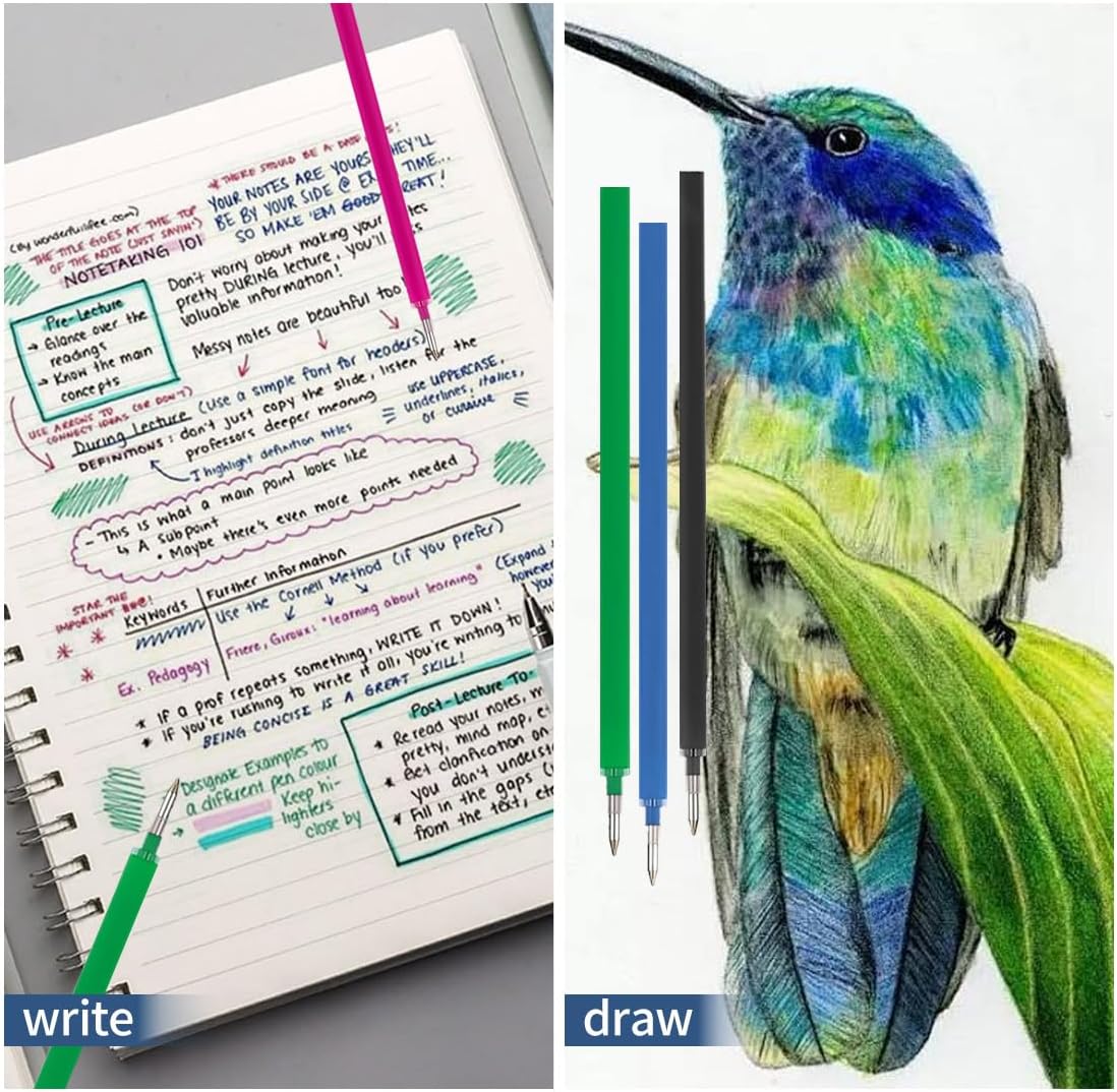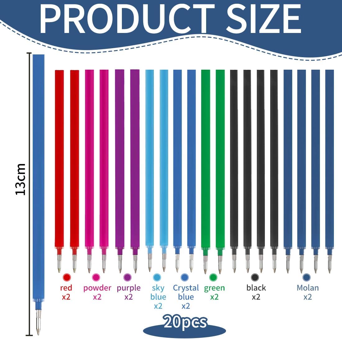 1. ✍【Scrittura fluida e precisa】 Le 20 ricariche per penna cancellabile di HABNI offrono un'esperienza di scrittura fluida e scorrevole. Grazie all'inchiostro termico di alta qualità, ogni parola appare chiara e ben definita, senza sbavature. Ideale per chi cerca un risultato impeccabile. 2. 🌈【Colori vivaci e accattivanti】 Disponibili in 8 splendidi colori (rosa, viola, rosso, cristallo blu, azzurro, verde, blu scuro, nero), queste ricariche offrono una varietà di opzioni per esprimere la tua creatività. Ogni colore rimane vibrante anche dopo giorni di utilizzo, per un look sempre brillante. 3. 📏【Compatibilità e dimensioni】 Le ricariche sono perfettamente compatibili con le penne cancellabili Legami e presentano una punta di 0,7 mm, che consente di scrivere con estrema precisione. Ogni ricarica misura 13 cm, dimensione ideale per una presa comoda e un utilizzo prolungato senza sacrificare la qualità. 4. ✨【Facile da cancellare】 Grazie alla tecnologia termica, l'inchiostro può essere facilmente cancellato con il calore, permettendo di correggere qualsiasi errore senza lasciare tracce. Perfetto per chi ha bisogno di correggere o rielaborare continuamente i propri scritti. 5. 🎁【Regalo ideale per bambini】 Queste ricariche sono perfette come regalo di compleanno o per l'inizio della scuola. Con la loro scrittura liscia e facile da correggere, saranno sicuramente apprezzate dai più giovani, stimolando la loro creatività e migliorando l'esperienza scolastica.