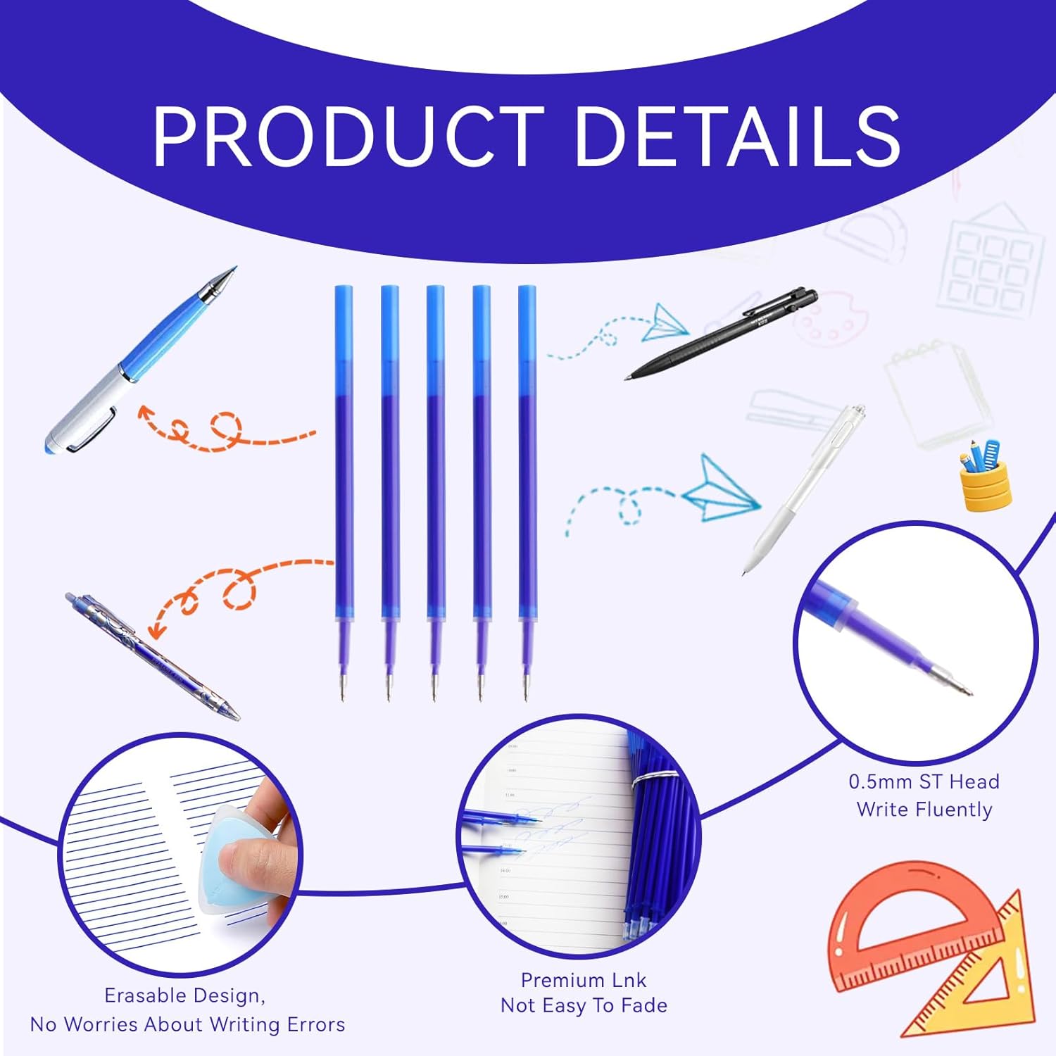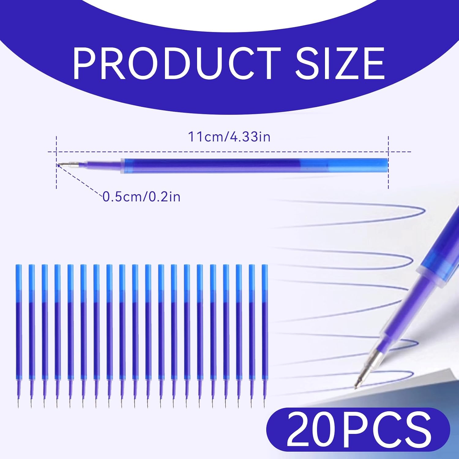 Ricariche Penne Cancellabili di Alta Qualità: Il set include 20 ricariche penna cancellabile di colore blu, con un pennino da 0,5mm, che offre una scrittura precisa e fluida. La lunghezza delle ricariche è di 13 cm, compatibile con una vasta gamma di penne cancellabili, per un'esperienza di scrittura senza interruzioni Scrittura Fluida e Cancellabile: Grazie all'inchiostro termico di alta qualità, le penne cancellabili permettono una scrittura che scorre perfettamente, senza sbavature. Inoltre, potrai facilmente correggere eventuali errori con una semplice cancellazione, mantenendo il tuo lavoro sempre ordinato e preciso Economico e Sostenibile: Non c'è bisogno di acquistare una nuova penna ogni volta. Basta sostituire la ricarica per avere una penna cancellabile come nuova. Questo ti permette di risparmiare denaro e ridurre gli sprechi di plastica, contribuendo a un ambiente più sostenibile Perfetta per la Scuola e l'Ufficio: Queste ricariche sono ideali per chi utilizza penne cancellabili, in particolare per studenti delle scuole elementari, insegnanti, o professionisti. La possibilità di correggere facilmente gli errori rende queste penne perfette per prendere appunti, fare esercizi o scrivere documenti in modo preciso Versatilità e Regalo Perfetto: Le ricariche penna cancellabile sono un regalo utile e pratico per studenti, insegnanti, colleghi e amici. Ideale per compleanni, Natale o qualsiasi altra occasione speciale. La compatibilità con molte penne rende questo set versatile e indispensabile per chiunque scriva frequentemente