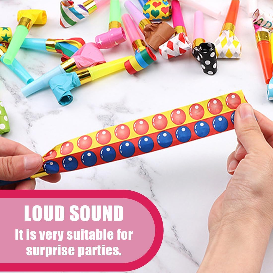🎉【MATERIALE ECO-FRIENDLY】 Questo fischietto per feste è realizzato in materiale ecologico di plastica e carta, non tossico e non pericoloso, resistente all'usura e riutilizzabile. 🎉【Design raffinato】questi fischietti per feste sono progettati in diversi colori e motivi, tra cui pois, cuori, diamanti e pentagrammi per soddisfare le diverse preferenze, e i colori vivaci possono rendere la festa più vivace e colorata. 🎉【REGALO IDEALE】Questi fischietti per feste sono un ottimo regalo per bambini e adulti, che portano risate e divertimento. 🎉【Suono forte】 il fischietto per feste emette un suono forte ed è ideale per feste a sorpresa. Ideale per compleanni, Natale, Halloween e altro ancora, per aggiungere colore e allegria alla festa. 🎉 【Caratteristiche】 Il soffiaggio del rotolo di carta per fischietto si espande immediatamente e si ripristina automaticamente quando non soffia, la coda è tesa liberamente e l'aspetto colorato attirerà facilmente l'attenzione dei bambini.