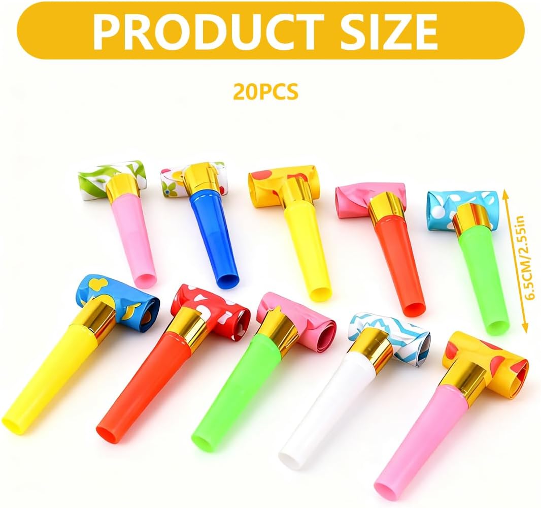 Selezione casuale: Il set include 20 trombette da festa in colori e design assortiti. Le tonalità vivaci e variegate creano un'atmosfera allegra e festosa, ideale per compleanni di bambini, carnevale o altre celebrazioni Divertimento per bambini: Soffiando nelle trombette, l'estremità arrotolata si estende e si ritrae automaticamente. I colori vivaci e il design divertente catturano l'attenzione dei bambini, garantendo intrattenimento in ogni festa o compleanno Uso versatile: Perfette per molteplici occasioni come compleanni, banchetti, carnevale, feste a tema, Natale o Pasqua. Questi accessori portano colore e divertimento a ogni celebrazione, creando un'atmosfera vivace e festosa Materiali sicuri: Le trombette da festa sono realizzate in plastica e carta di alta qualità con apertura liscia. I materiali sono atossici e sicuri per i bambini, ideali come giocattoli o accessori per feste di compleanno e altri eventi Soddisfazione garantita: Se hai domande sulle nostre trombette da festa, siamo a tua disposizione. Ci impegniamo a risolvere ogni richiesta rapidamente e in modo soddisfacente per rendere la tua celebrazione un successo