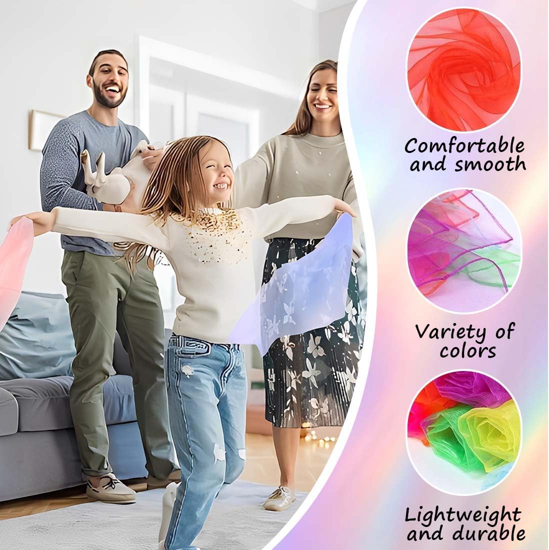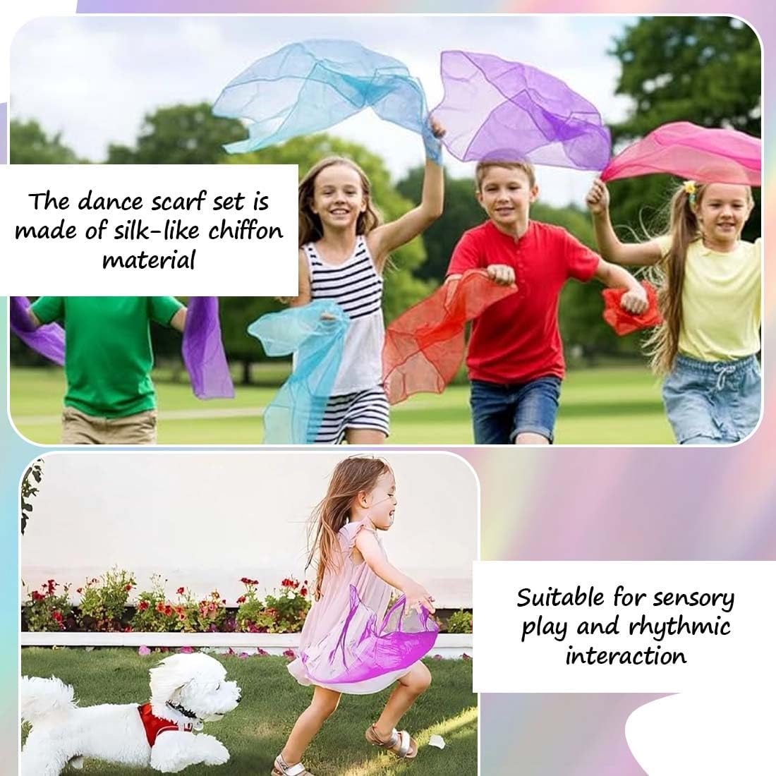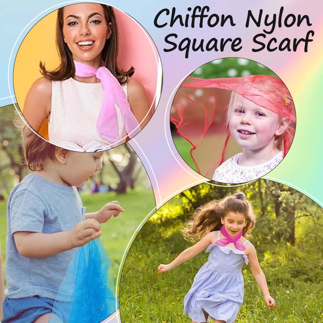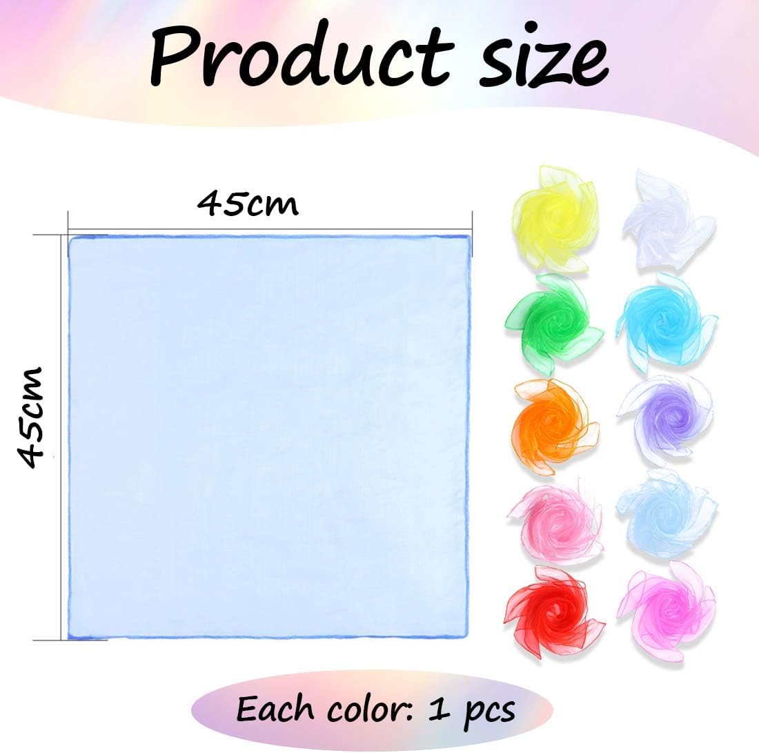 Disponibili in una varietà di colori: la confezione include 20 sciarpe da giocoliere, di circa 45 x 45 cm, in 10 colori vivaci; scegli il colore che si abbina al tuo outfit. Educativo e divertente: i colori vivaci catturano rapidamente l'interesse dei bambini e li aiutano a sviluppare la capacità di discriminazione dei colori fin dalla tenera età. L'uso delle sciarpe da danza aumenta l'interazione con il bambino, migliorando costantemente la sua motivazione e destrezza durante il gioco e il tempo libero. Materiale di alta qualità: le sciarpe da giocoliere sono realizzate in tessuto di nylon delicato sulla pelle con cuciture sottili e bordi delicati. Sono morbide, leggere, traspiranti, comode e lisce al tatto. Sono facili da riporre e non sbiadiscono né causano irritazioni dopo il lavaggio. Istruzioni per il lavaggio: questa sciarpa da ginnastica è molto leggera. Per prolungarne la durata, si consiglia il lavaggio a mano in acqua fredda e l'asciugatura all'aria. Evitare la candeggina; lavare in lavatrice e asciugare in asciugatrice per evitare danni o restringimenti. Versatile: le sciarpe da danza per bambini sono adatte per spettacoli teatrali, balli di piazza, spettacoli di magia e gruppi di danza prescolare. La sciarpa di chiffon può essere indossata anche come accessorio alla moda, avvolta intorno al collo o annodata intorno al polso.