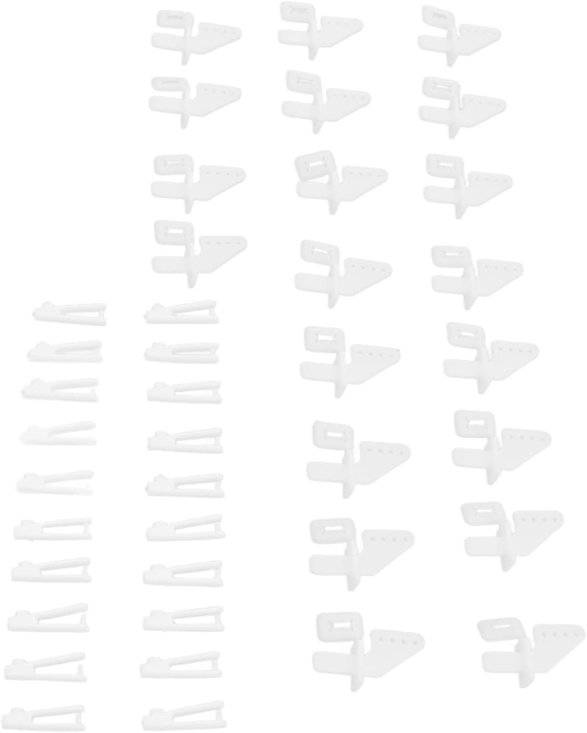 Moi applicabili: ottimi accessori per aggiornare il moo di controllo remoto, il kit di corni di controllo e cardini sono adatti per aerei RC, aerei elettrici, aerei ala fissa in schiuma. Forte applicabilità: angolo di timone a 4 fori di tipo a spina con un unico design a foro piccolo, che può essere passato direttamente attraverso l'asta di tiro in acciaio da 1-1,2 mm o l'asta di tiro in acciaio più spessa dopo l'auto -allevamento, che ha una forte applicabilità. Collegamento e regolabile: l'angolo del timone è collegabile e può essere regolato comodamente e rapidamente, il che è molto conveniente da usare. Durevole e riutilizzabile: l'uso di materiale plastico di alta qualità, le corna di controllo e il kit Clevis hanno una forte durata, può essere riutilizzato, per garantire che non vi siano problemi con l'uso a lungo termine. Per le aste di tiro: le corna di controllo e il kit Clevis sono dotate di centri da 1 mm, 20 perni e 20 viti, che è appositamente progettata per le aste di tiro e flessibili da utilizzare.