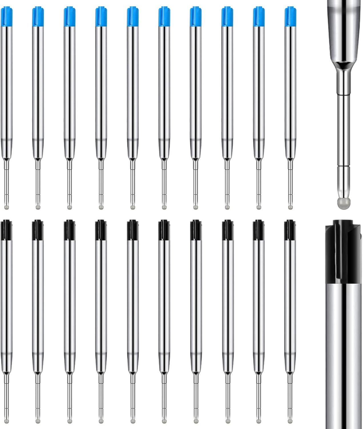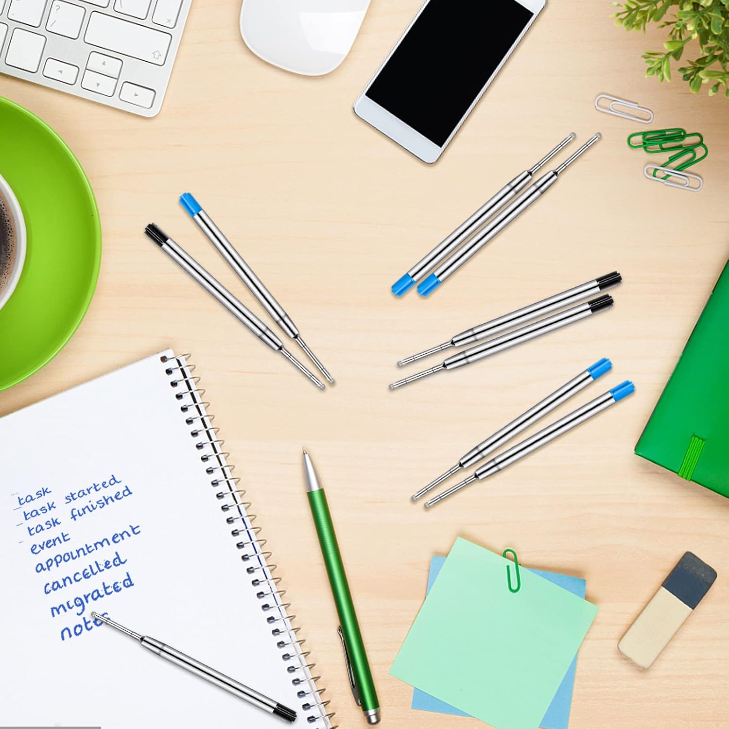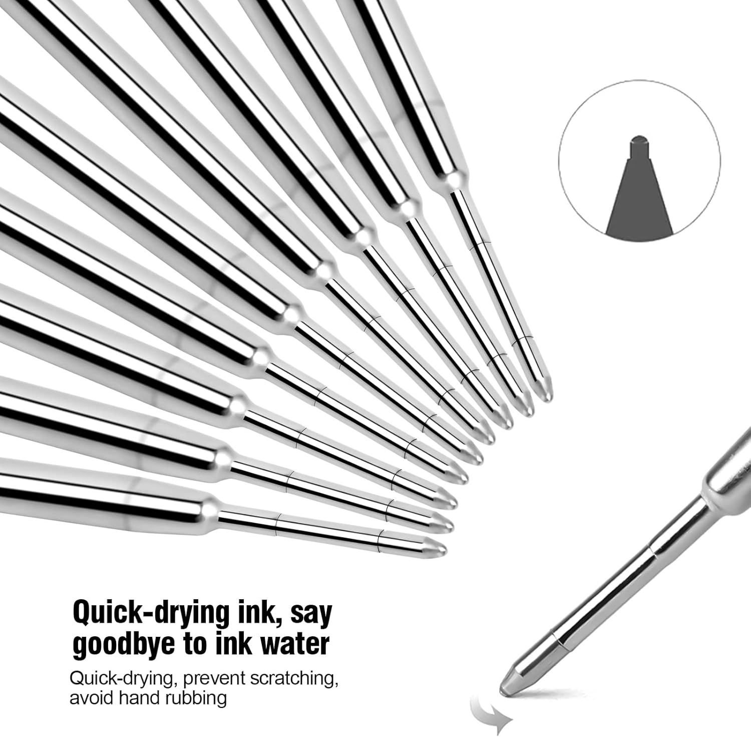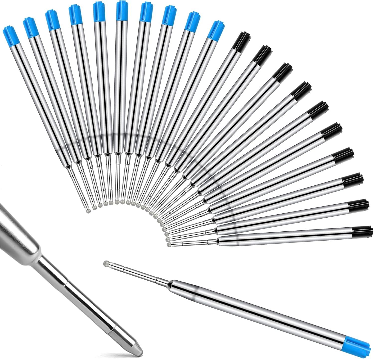 【Il pacchetto include】 Riceverai un set di 20 ricariche in metallo (10 inchiostro nero + 10 inchiostro blu), due colori abbinati, sufficienti per l'uso quotidiano. 【Dimensioni】9,9 cm (3,9 pollici) di lunghezza, 1,0 mm sulla punta della ricarica. 【Scrittura fluida】 Corpo della penna in metallo, pennino a proiettile, memoria dell'inchiostro di grande capacità, uscita uniforme dell'inchiostro, per un'esperienza di scrittura perfetta e fluida. 【Inchiostro ad asciugatura rapida】Utilizziamo inchiostro ad asciugatura rapida di alta qualità che non sbiadisce, non si rovescia e non macchia, il che aiuta anche a mantenere pulite le mani e i polsini. 【Ampiamente applicabile】 Adatto per la maggior parte delle penne a sfera che utilizzano la stessa ricarica e può essere utilizzato come ricarica di riserva, il che aiuta a prolungare la vita della tua penna d'amore.