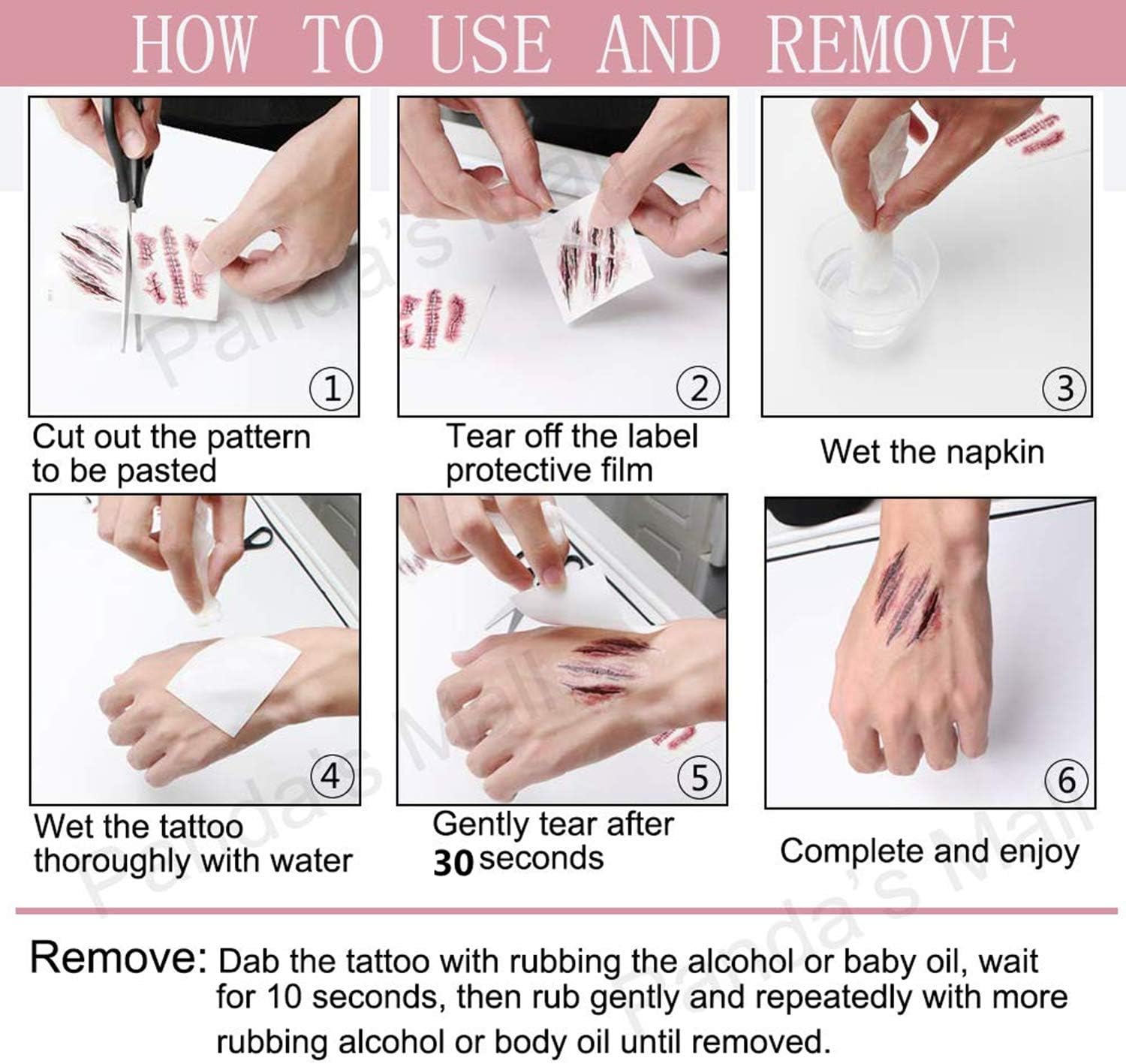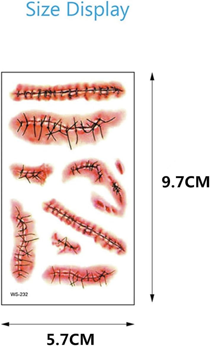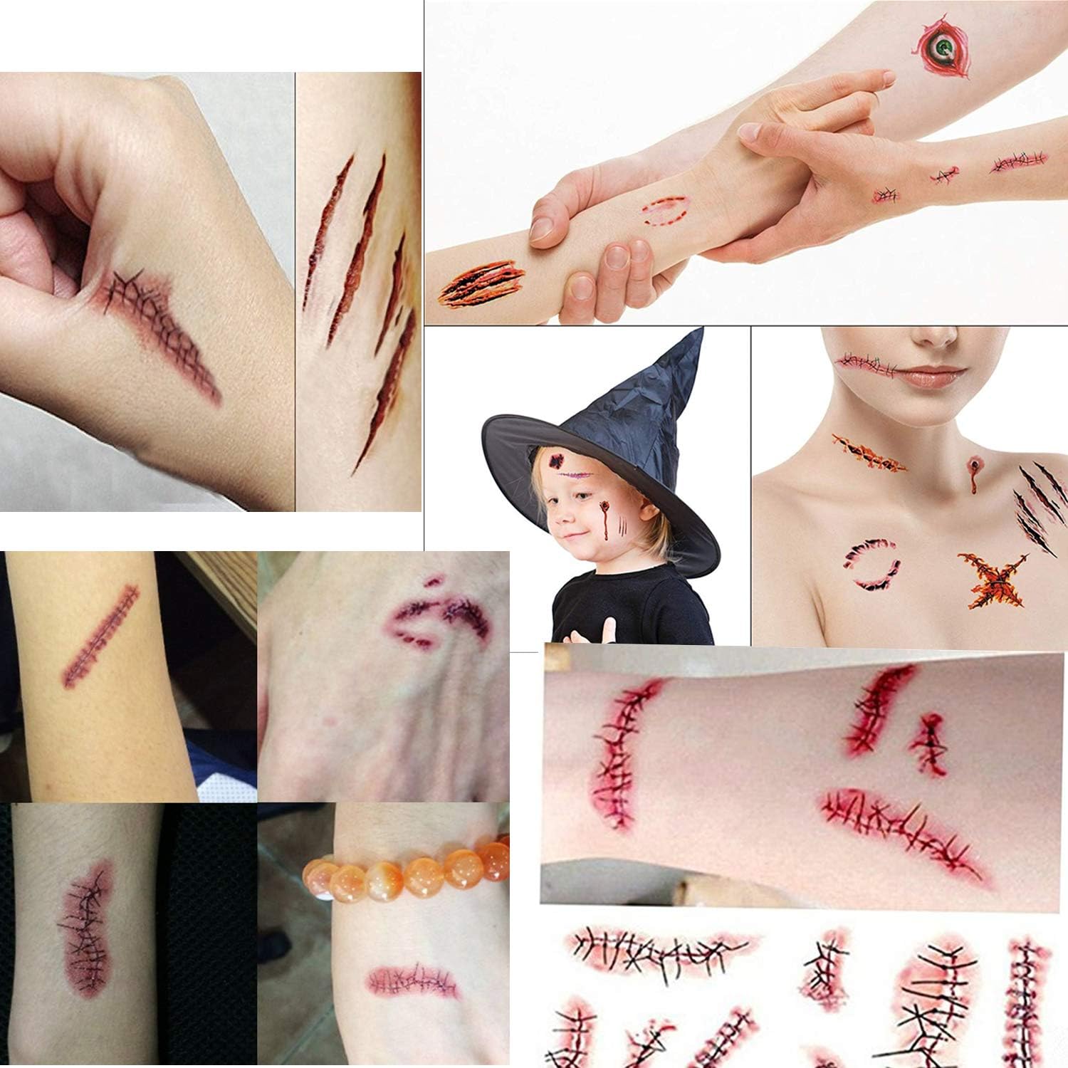 Varie scelte: un set di 30 fogli di adesivi di Halloween, ogni foglio ha diversi design che possono soddisfare la tua richiesta di abbigliamento. La quantità sufficiente di tatuaggio ti consente di mascherarti in modo diverso. Molto realistico: le ferite cicatrizzate sembrano molto reali e naturali. È una buona scelta per vestirti meglio e renderti il fulcro della festa di Halloween. Impermeabili e durevoli: i tatuaggi sulle cicatrici del corpo sono impermeabili e resistenti al sudore. I tatuaggi sulle cicatrici di Halloween possono durare dai 3 ai 5 giorni. Sicurezza: atossico e conforme agli standard di sicurezza europei, puoi usarlo in tutta tranquillità. Facile da applicare e rimuovere: È facile da applicare seguendo le istruzioni, assicurati che la tua pelle sia veramente pulita. Risparmia molto tempo con il trucco di Halloween. I disegni del tatuaggio saranno facilmente rimossi con alcool o olio per bambini.