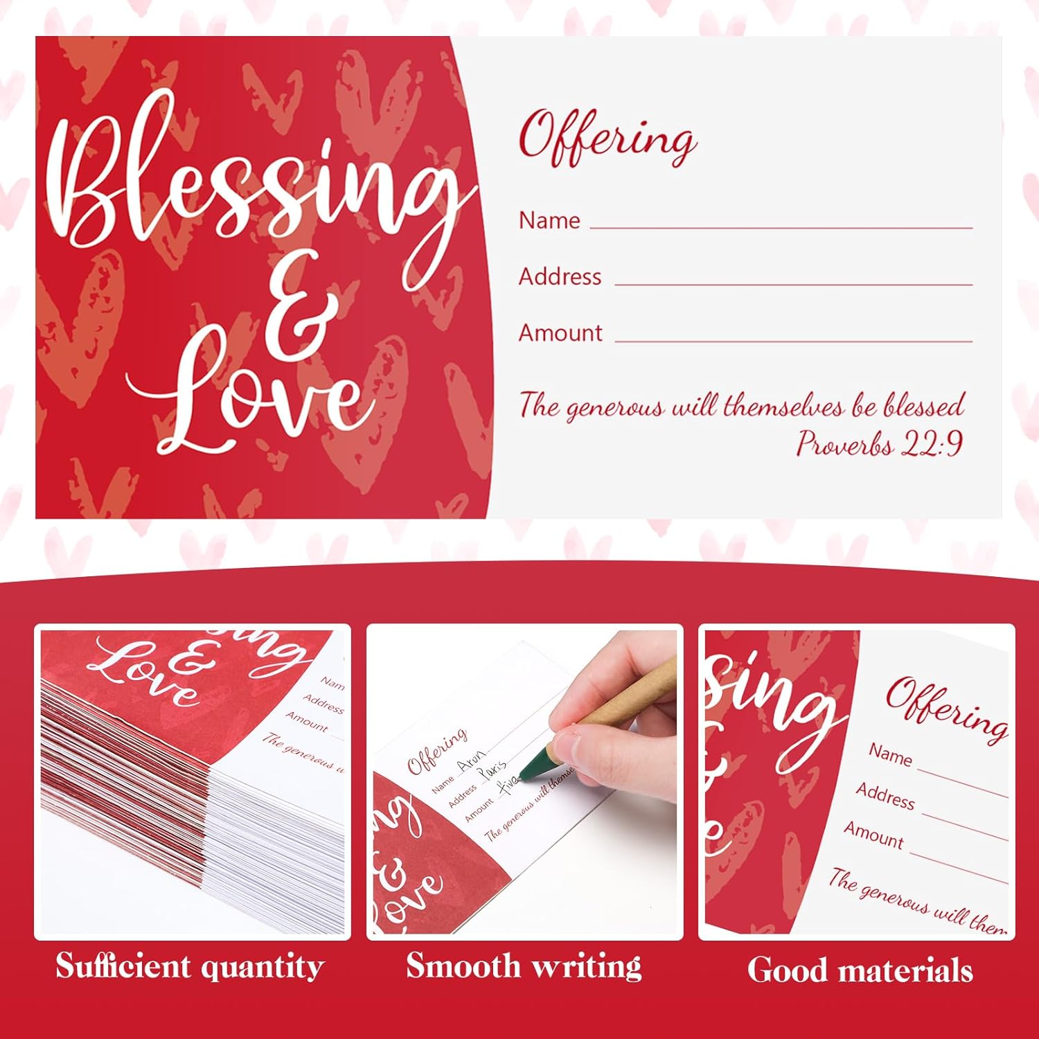 Buste in abbondanza: con la nostra grande offerta di imballaggi, ottieni 200 buste cristiane in un acquisto, questo ti risparmia la fatica di frequenti preparazioni, progettate utilizzando carta rossa e bianca di qualità, queste buste sono durature quanto i tuoi impegni spirituali, queste buste non solo coprono le tue esigenze di offerta, ma ti consentono anche di condividere amore, fede e impegno in riunioni come servizi religiosi Materiale di qualità artigianale: le nostre buste per donazioni cristiane sono realizzate in carta solida ed eccellente, che conferisce loro una sensazione robusta pur rimanendo leggere e facili da maneggiare, difficili da rompere, deformare o sbiadire, la combinazione di colori di rosso e bianco aggiunge eleganza, purezza e spiritualità alle tue offerte, questo è il tuo contributo tangibile, reso bello, semplice e di impatto Design personalizzabile: le nostre buste per chiesa presentano spazi vuoti e dedicati per riempire le informazioni personali e l'importo della donazione, questo garantisce che la tua offerta sia accuratamente attribuita a te, promuovendo la trasparenza e la responsabilità nella gestione delle donazioni della chiesa Elementi visivi ispiratori: decorativi e significativi, le nostre buste per la decima per gli sport della chiesa elementi attraenti adatti per l'uso quotidiano, come versi biblici ispiratori e motivi a cuore, il dettaglio è progettato con cura per incoraggiare il tuo viaggio spirituale e connetterti con i valori di amore e fede della Chiesa Spazio ideale per i tuoi Alms: le nostre buste per benedizioni e chiese d'amore, di circa 16 x 7,9 cm, sono progettate per adattarsi senza sforzo alla maggior parte delle valute; questo rende il processo di donazione più fluido, senza la necessità di piegare o accartocciare le note