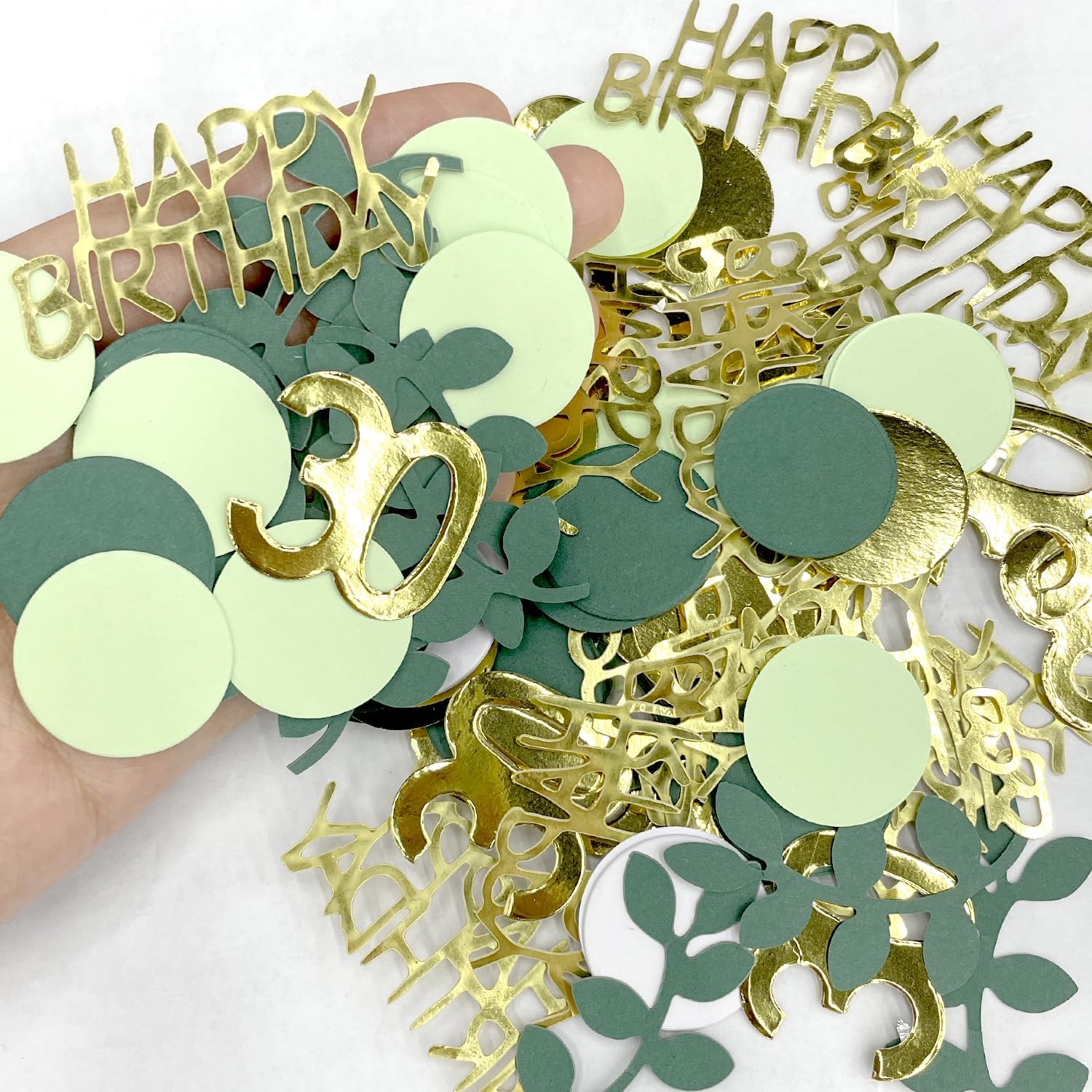 [La confezione include] Ricevi 200 coriandoli decorativi per il 30° compleanno in 4 colori (verde salvia, oro, bianco, verde scuro), con foglie di eucalipto verde e disegni dorati di buon compleanno per soddisfare tutte le tue esigenze di decorazione. [Aggiungi divertimento] Se hai intenzione di decorare una festa per il trentesimo compleanno, le decorazioni per la tavola con coriandoli sono un'ottima aggiunta. Per ancora più divertimento e sorprese, tu e i tuoi amici potete lanciare o spargere coriandoli nell'aria. Cattura questa esperienza memorabile con la tua fotocamera e condividila con i tuoi amici. [Materiale Premium] Realizzati con carta kraft di alta qualità, i coriandoli sono durevoli e resistenti alla rottura o al distacco. Questi materiali affidabili garantiscono un utilizzo senza problemi, permettendoti di goderti la festa del tuo trentesimo compleanno in tutta sicurezza. [Design elaborato] I nostri coriandoli da tavola sono disponibili in tre forme e quattro colori eleganti (acqua, verde, oro, bianco), scelti per completare diversi stili di decorazione e aggiungere brillantezza all'arredamento della tua festa. [Decorazione multifunzionale] I coriandoli brillano meravigliosamente sotto la luce, ideali per riempire palloncini di elio, scatole regalo o bottiglie trasparenti. Sii creativo e usali per creare decorazioni uniche, aggiungendo un fascino vivace all'atmosfera della tua festa.