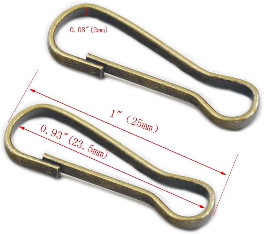 Lunghezza: 2,5 cm 25 mm Materiale: metallo Contenuto della confezione: 200 pezzi Può essere usato su Snap clip, gancio a molla, portafoglio, Lanyard, contenuto, Zipper Pull, ID Card, portachiavi, portachiavi, anelli e così via Colore: nichel, oro, bronzo, Gun nero