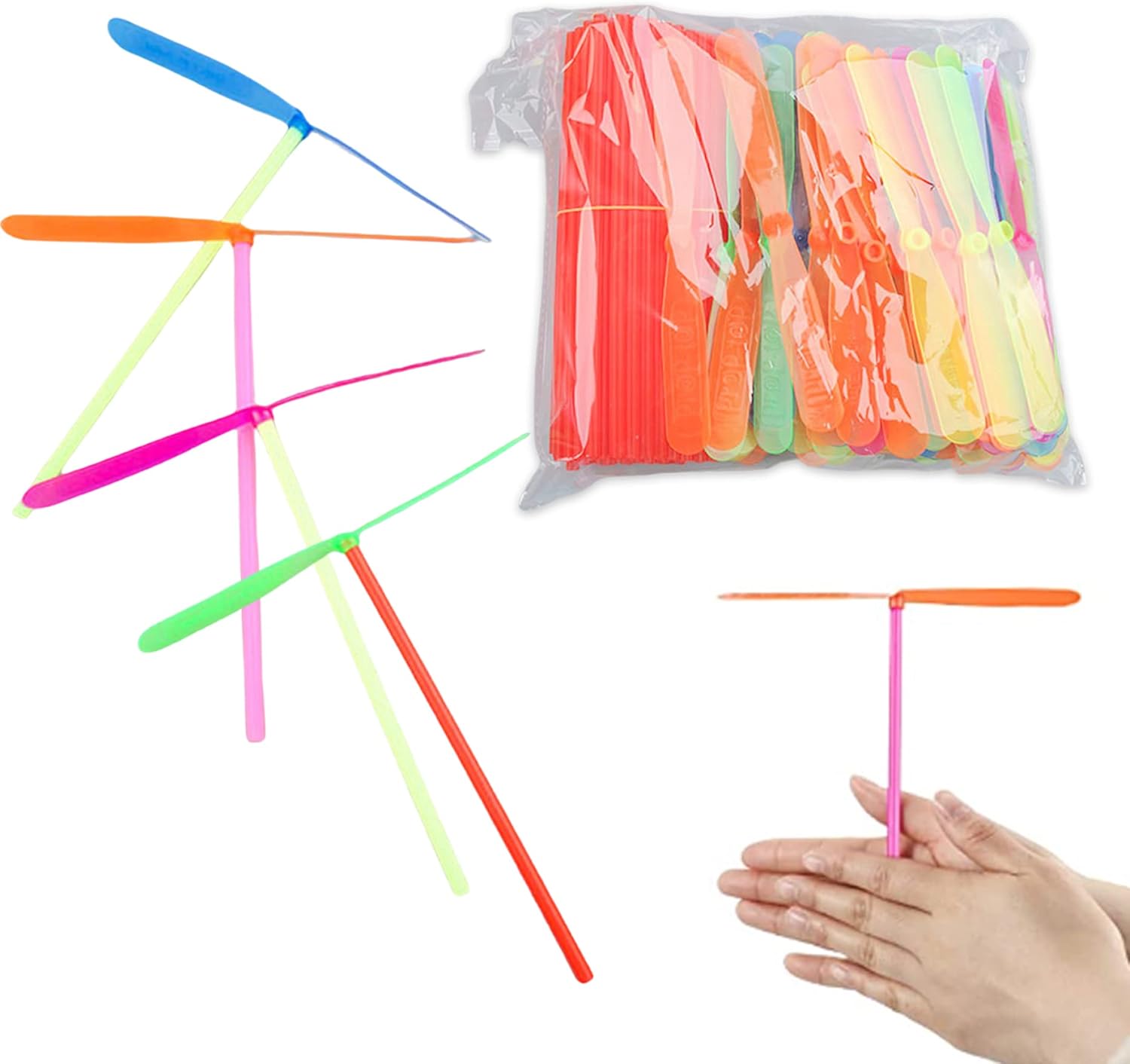 Facile da installare: prima assemblare l'elica e l'asta insieme, quindi metti l'asta nel palmo della mano, strofinalo e indietro, quando l'asta lascia la mano, volerà, ti divertirai molto a giocare.Il giocattolo spinner volante Abbastanza quantità: otterrai 200 pezzi giocattoli per elicotteri a mano, è sufficiente giocare. Materiale: il filatore di elicotteri a mano è realizzato in plastica, è leggero, ecologico Divertiti: sperimentare il brivido del volo..Il giocattolo Dragonfly volante porterà a te e ai tuoi figli un momento divertente senza fine. Ampie applicazioni: il giocattolo per elicotteri a mano è leggero e portatile, quindi puoi portarlo nella maggior parte dei luoghi, è adatto a giocare in feste, attività familiari, attività scolastiche, cortili, stanze, parchi e altri luoghi