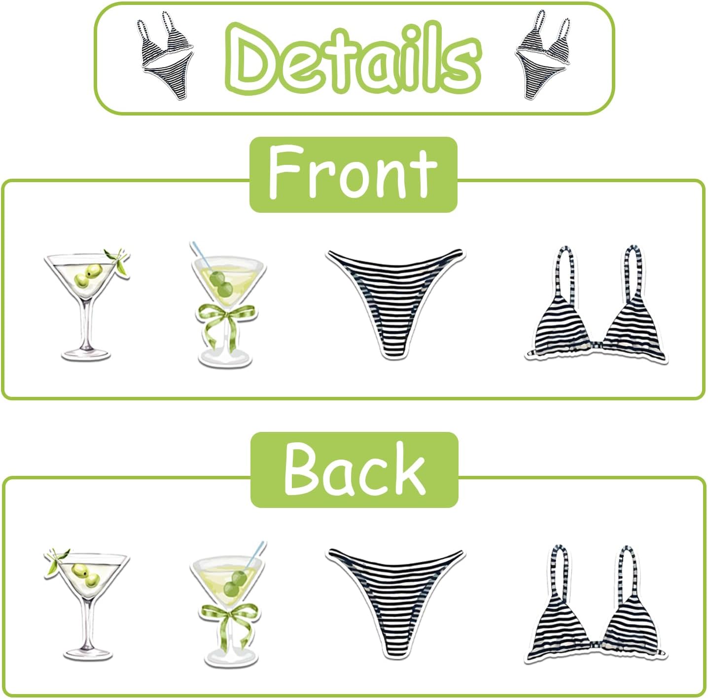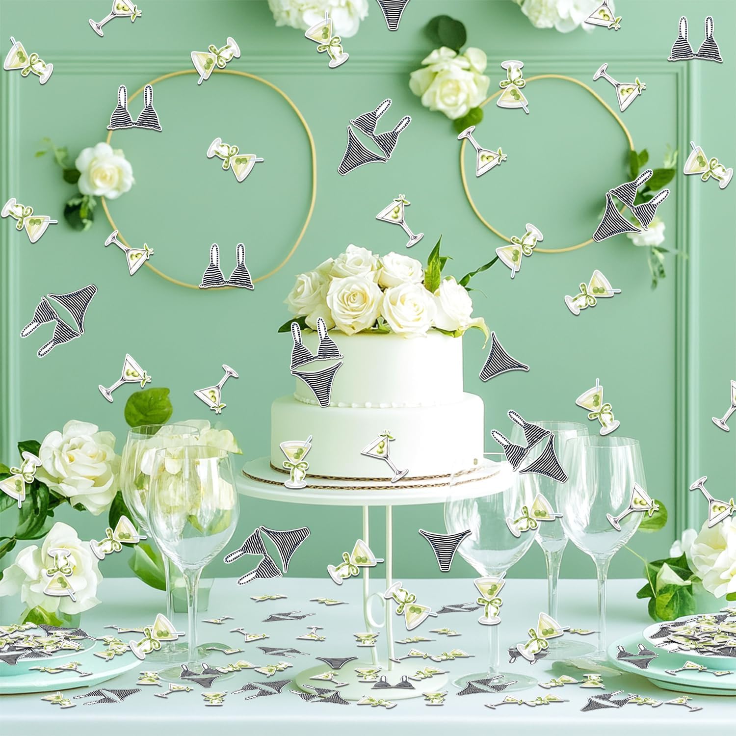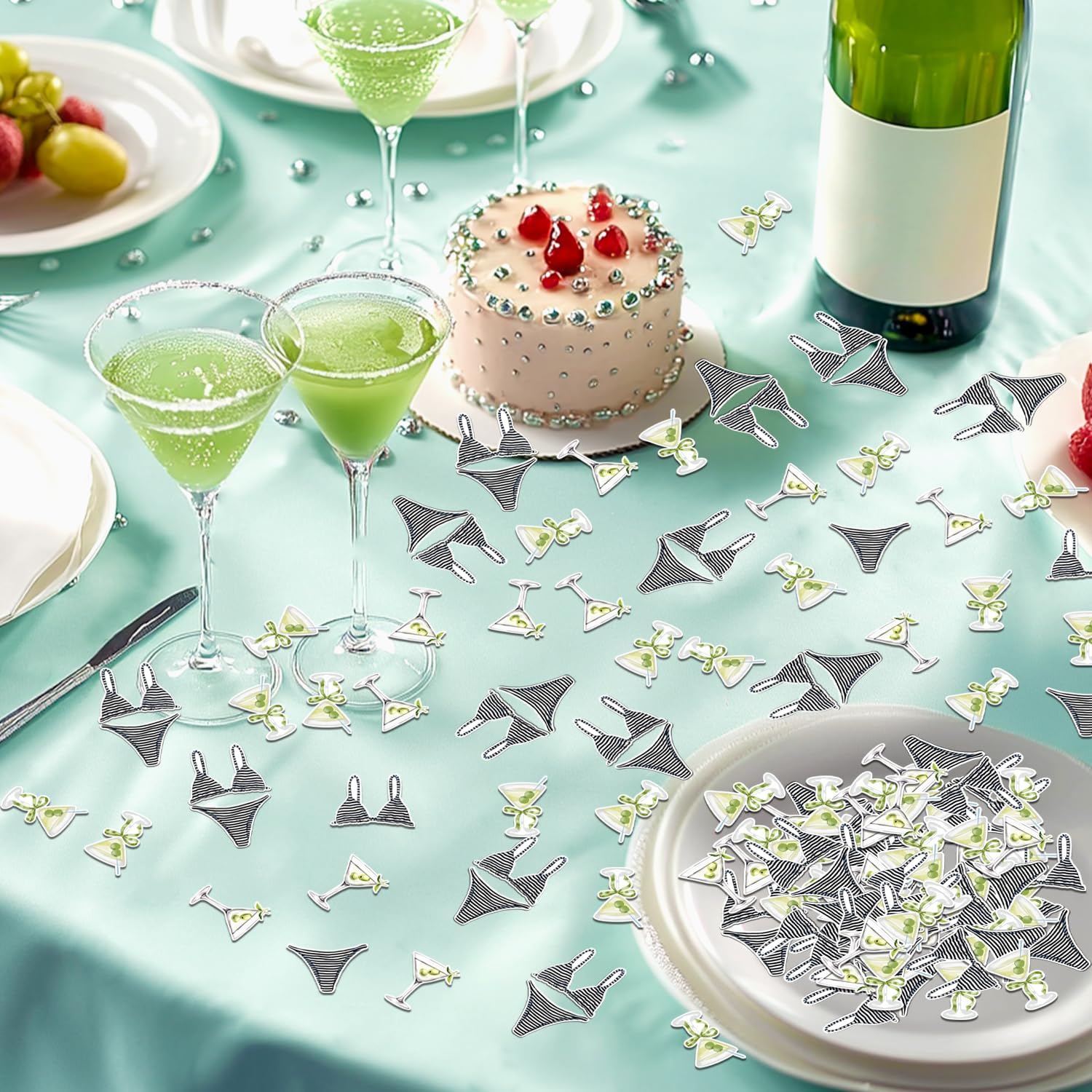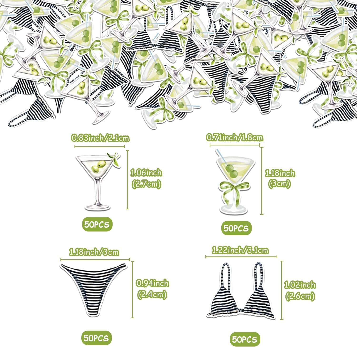 Bikini Coriandoli e Martini: dona un'atmosfera da festa in spiaggia al tuo addio al nubilato con i nostri 200 modelli di bikini e coriandoli Martini. Questo set di coriandoli è perfetto per creare un'atmosfera divertente e costiera, ideale per un addio al nubilato a tema spiaggia. Migliora le bomboniere: i coriandoli possono essere utilizzati per migliorare le bomboniere, aggiungendo un tocco personale che riflette il tema della spiaggia della celebrazione. Gli ospiti apprezzeranno l'arredamento accurato che richiama l'atmosfera costiera dell'evento. UNA MISURA PERFETTA PER OGNI AMANTE DELLA SPIAGGIA: Che tu stia pianificando una vacanza in spiaggia o una festa sulla costa, i nostri bikini e martini con coriandoli sono perfetti per ogni futura sposa amante dell'oceano. Aggiunge un tocco di divertimento balneare alla festa, rendendola un evento unico ed emozionante. DOPPIO LATO: goditi il nostro bikini stampato fronte-retro di alta qualità e i coriandoli Martini. Con 200 pezzi, ogni pezzo presenta lo stesso divertimento da spiaggia su entrambi i lati, consentendo una decorazione semplice che aggiunge un tocco di stile costiero al tuo evento. Esperienza costiera memorabile: trasporta i tuoi ospiti in un paradiso costiero con i nostri coriandoli. Usalo per decorare il tavolo da dessert, accentuare l'area del bar o anche spargerlo sulla pista da ballo per creare un'esperienza di festa in spiaggia memorabile e coinvolgente.